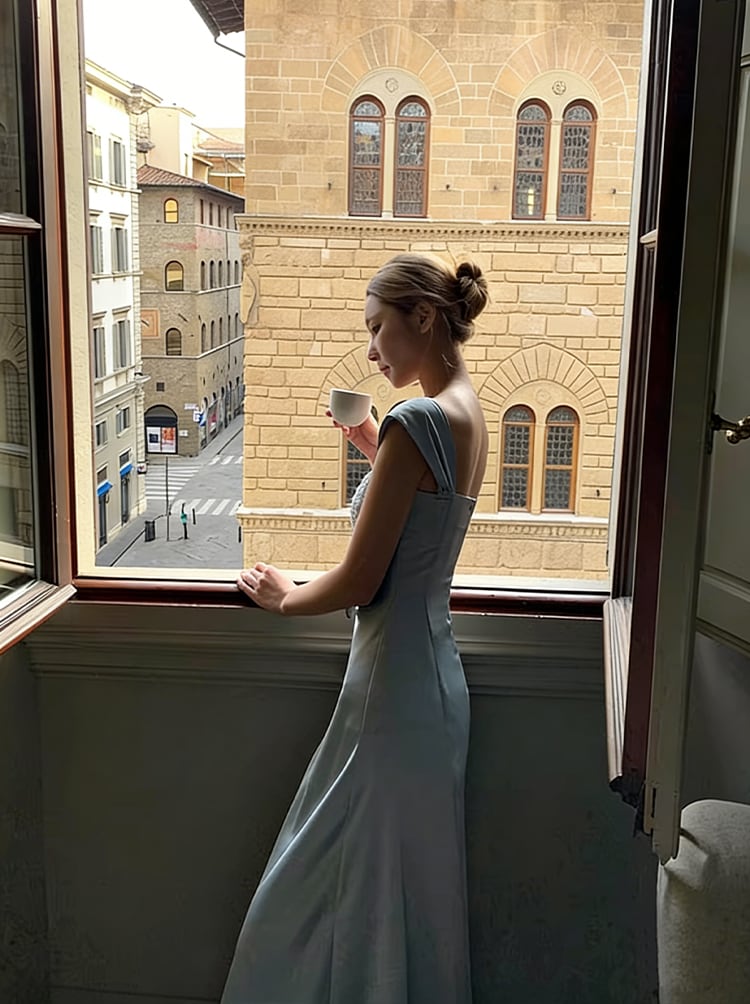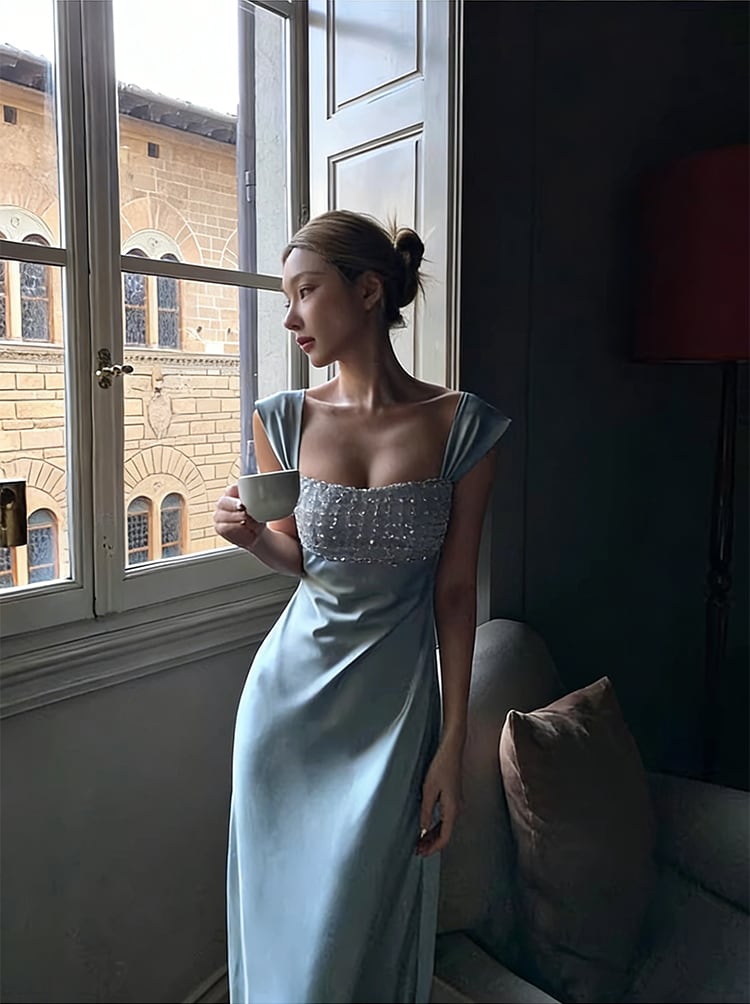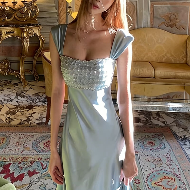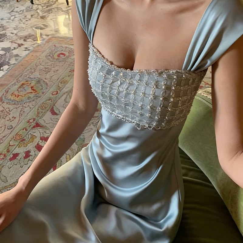 【dress】ラインストーン付きロングキャミワンピース Q8391