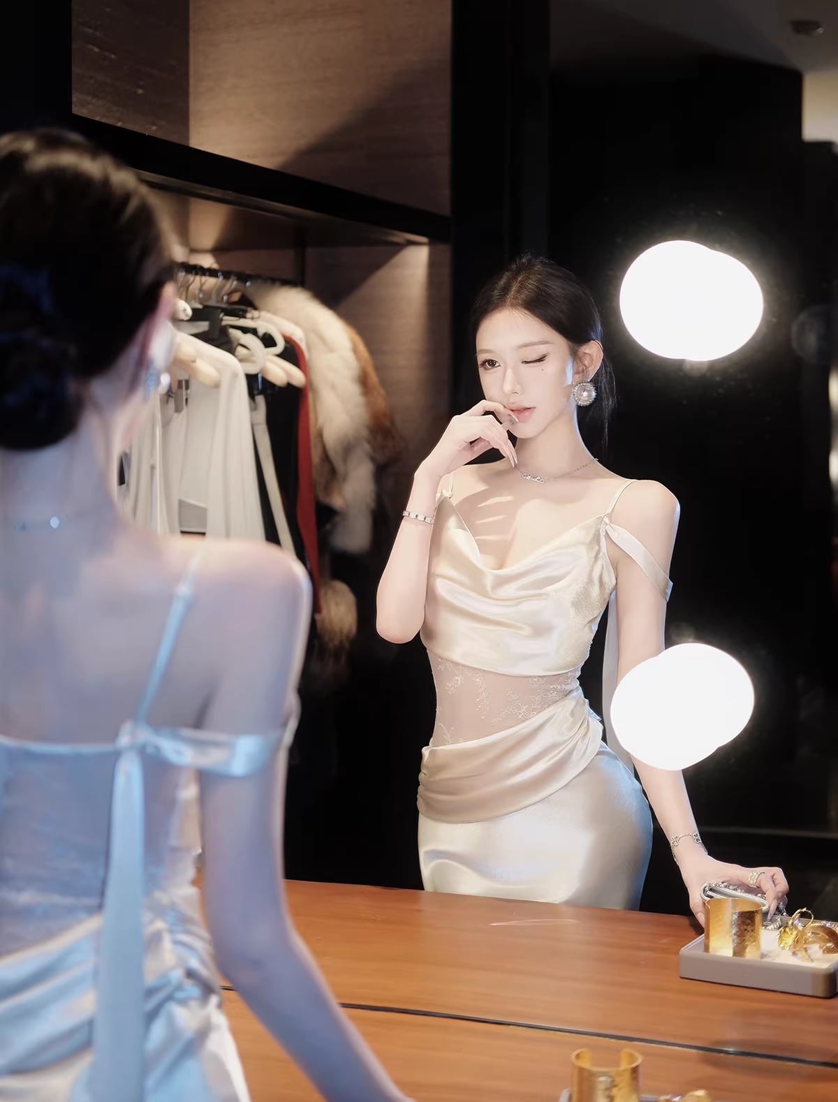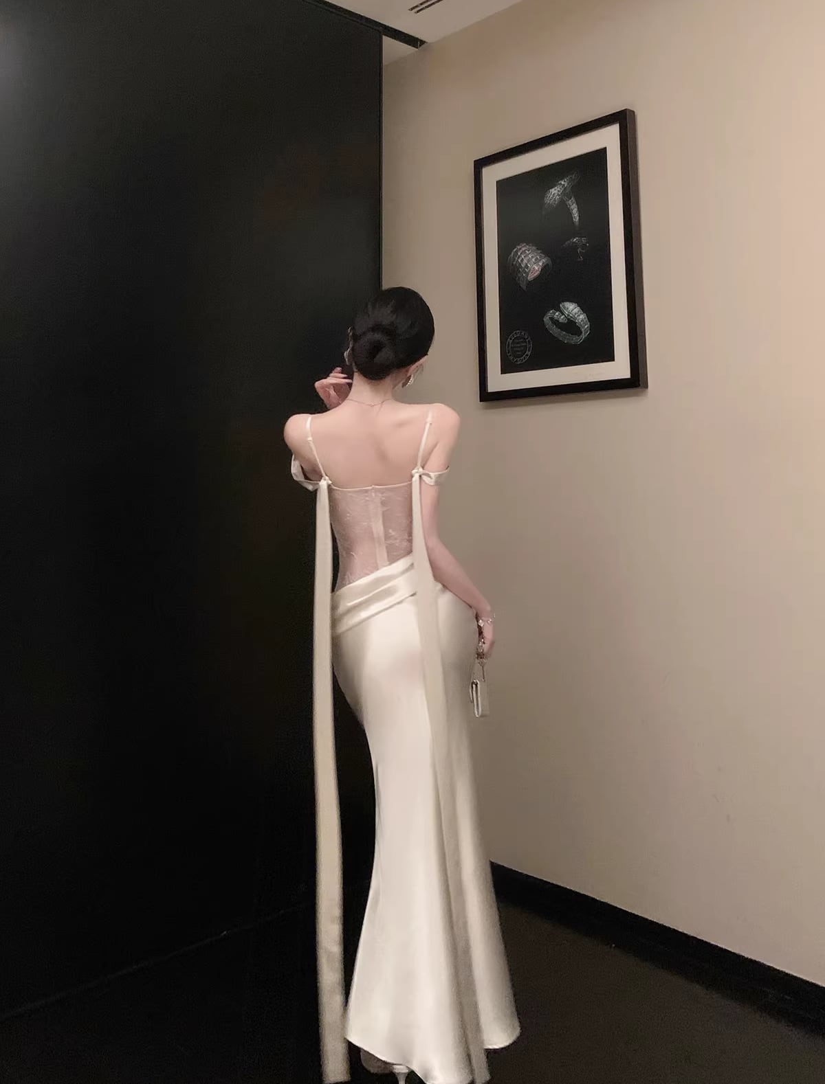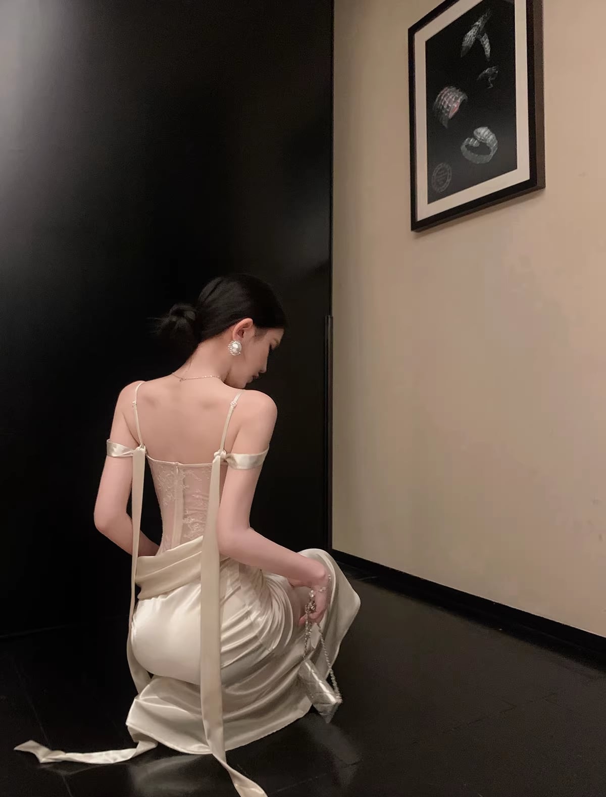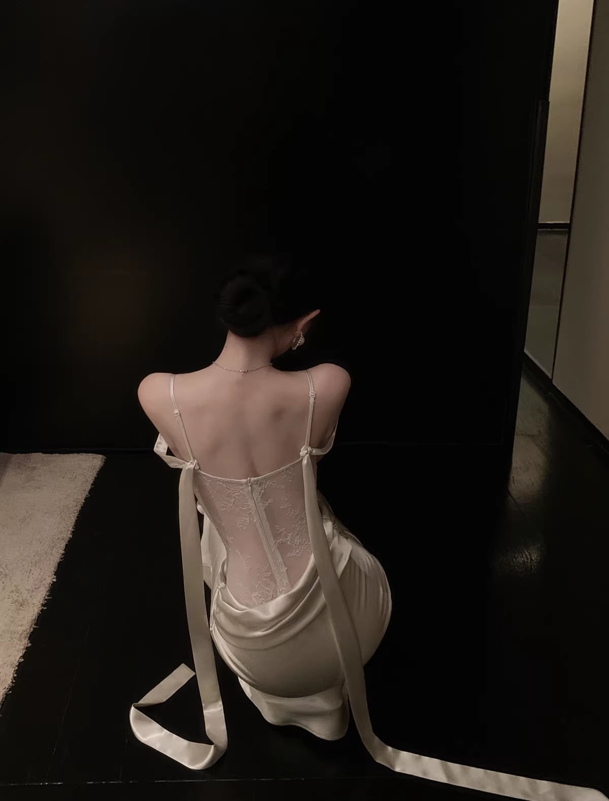 【dress】レースドッキングドレープドネックキャミワンピース Q8395