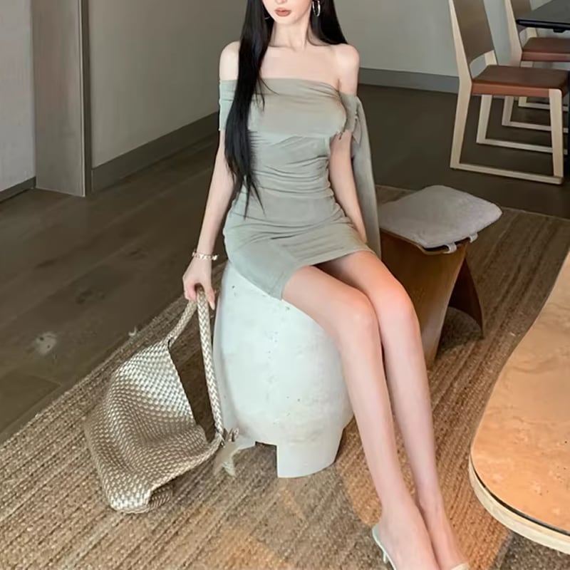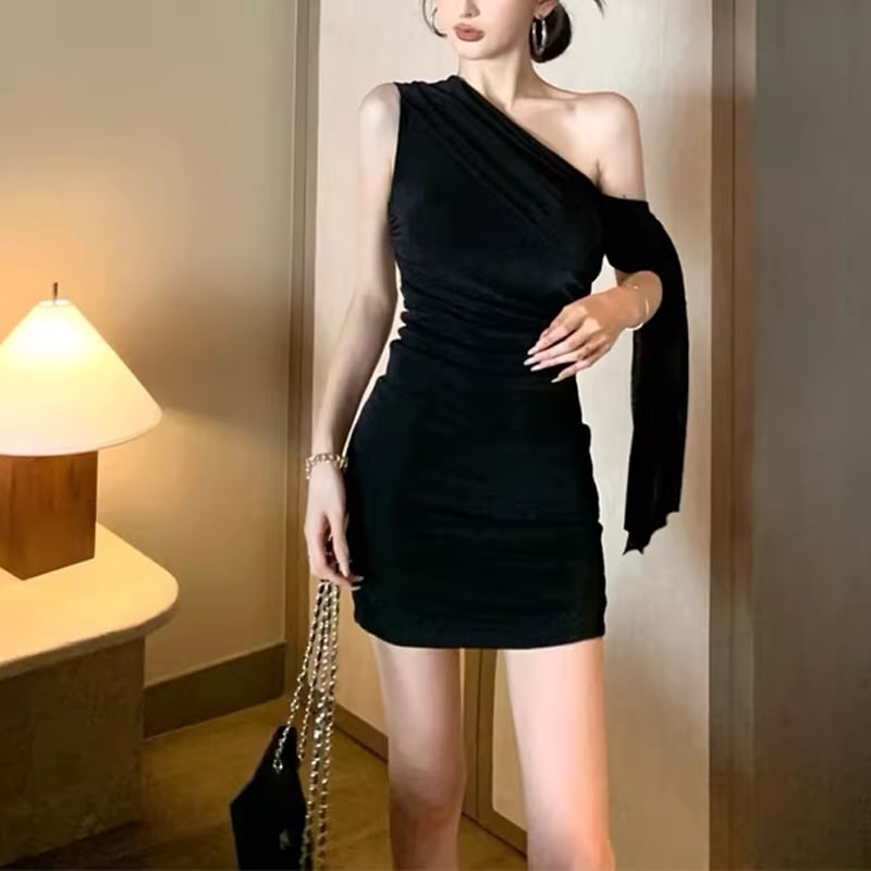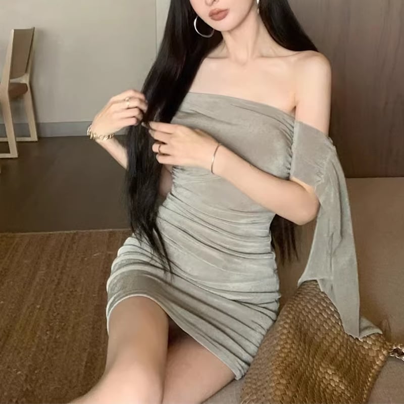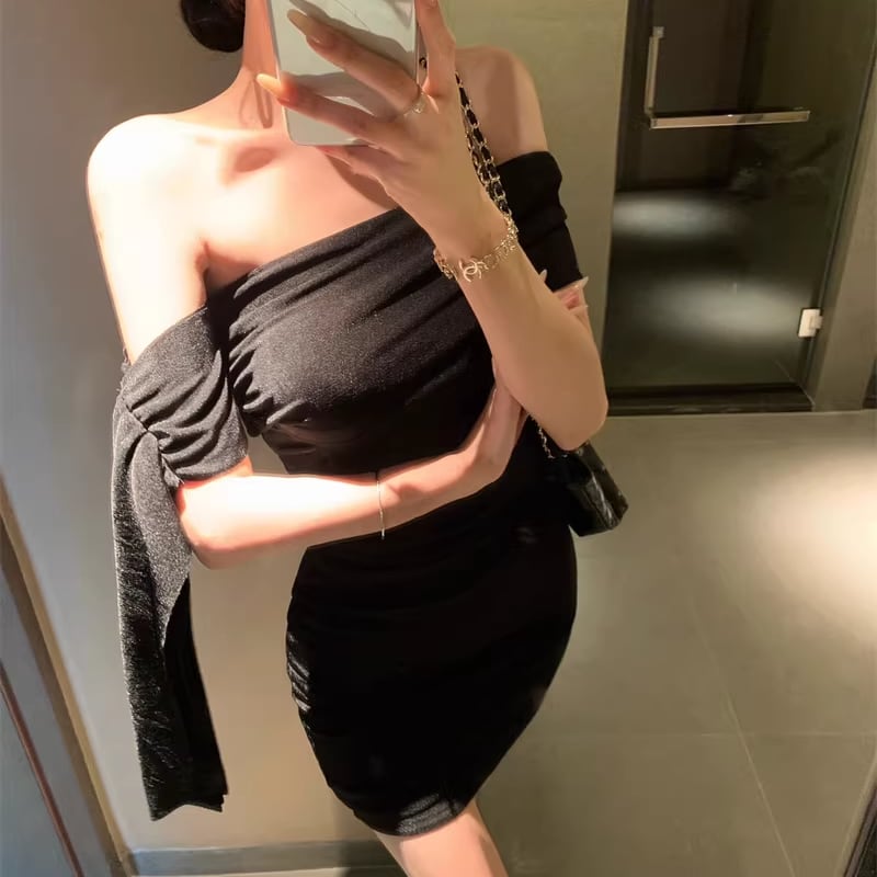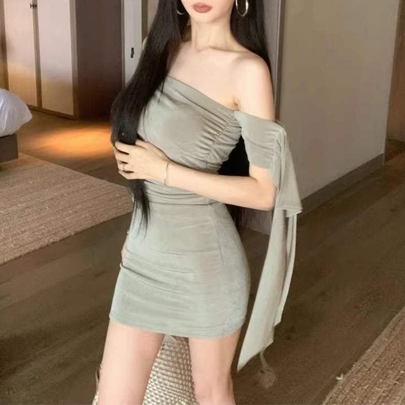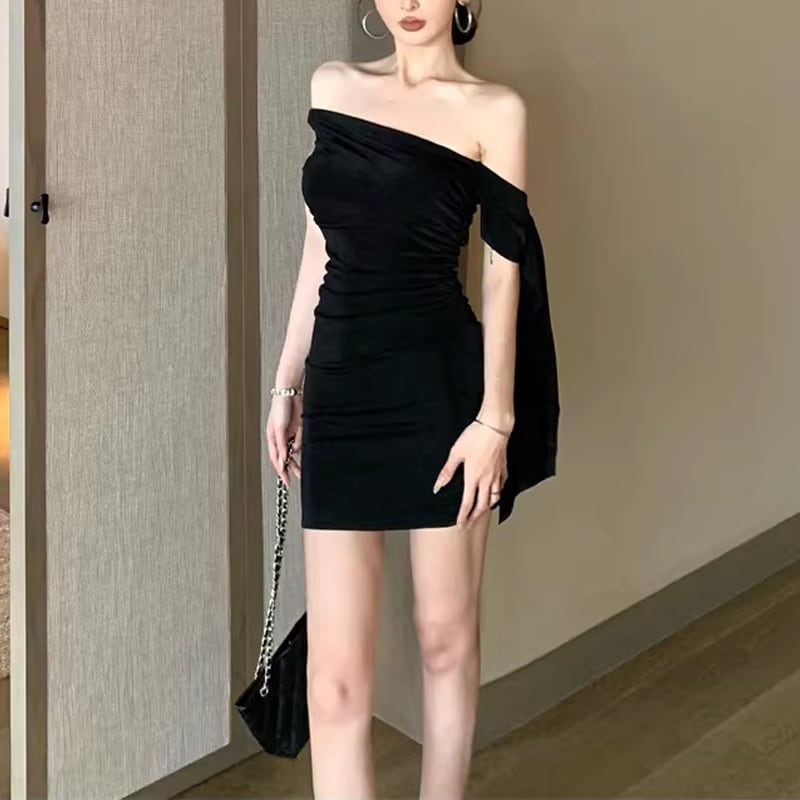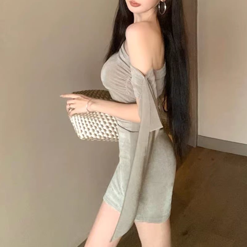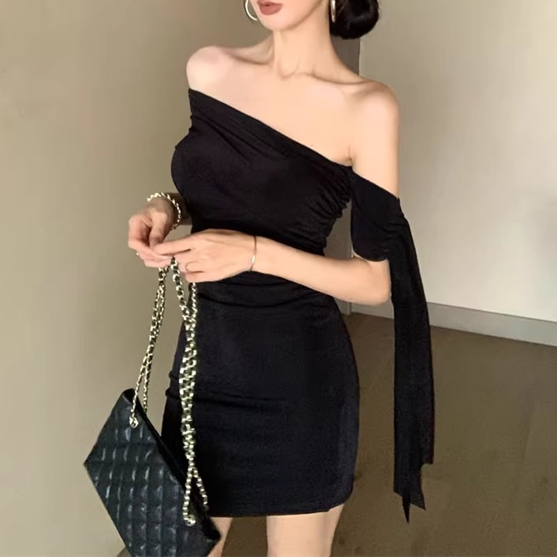 【dress】オフショルダーミニタイトワンピース Q8397