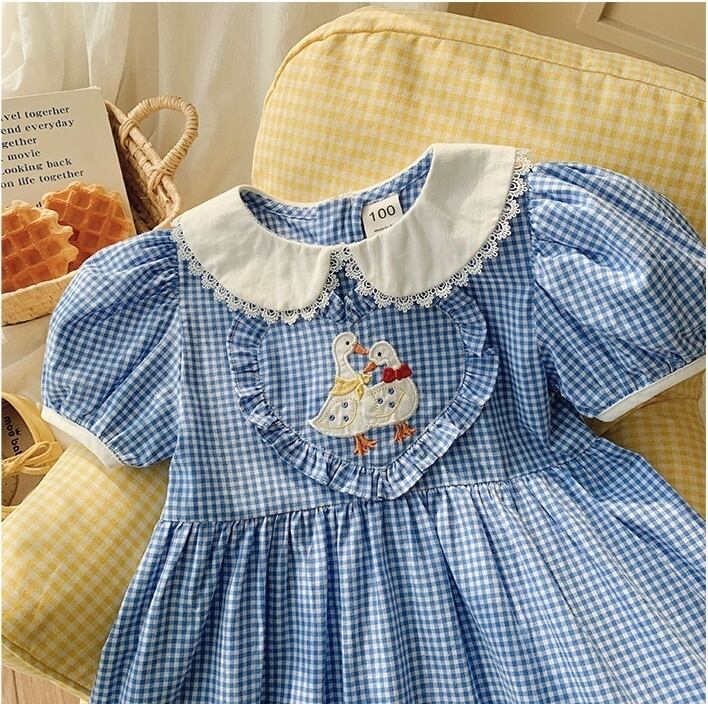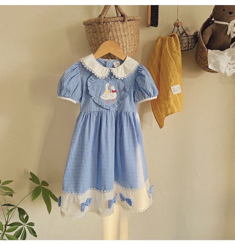 【kids】ブルー・ギンガムチェックレースワンピース K0549
