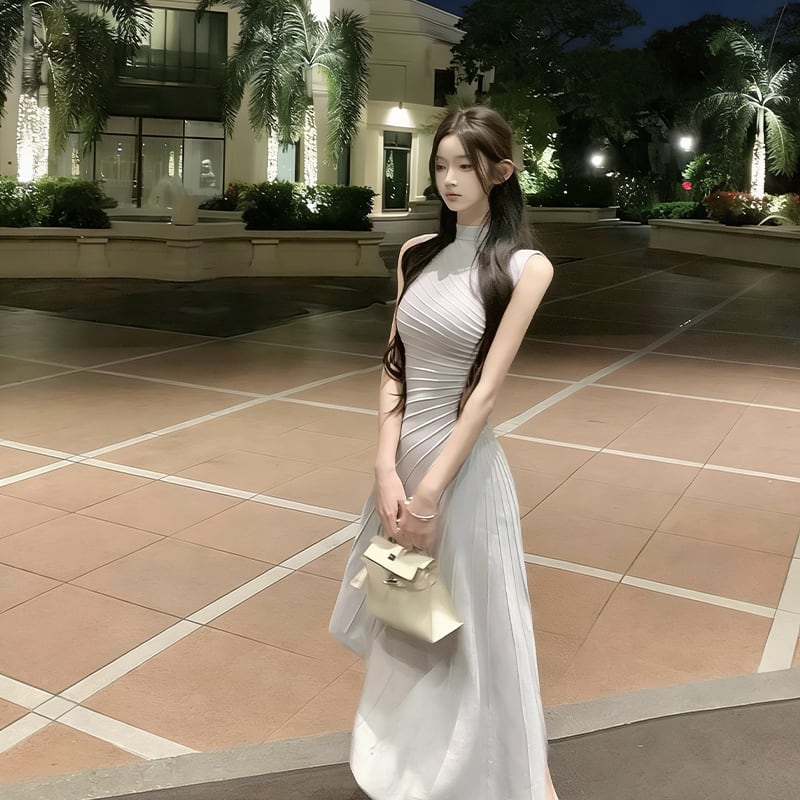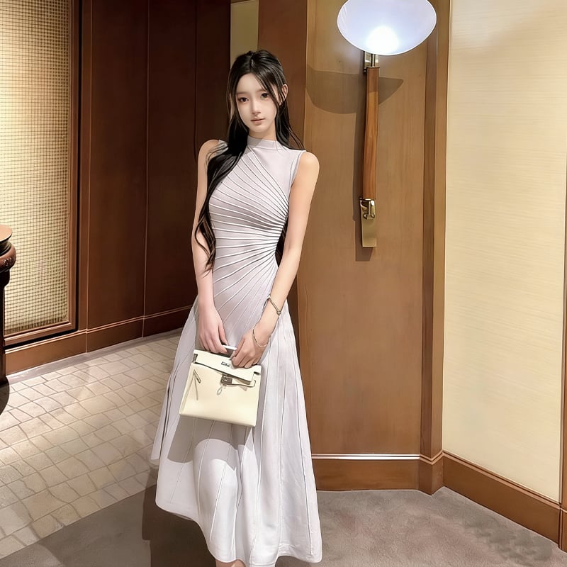 【dress】ノースリーブハイネックニットワンピース Q8404