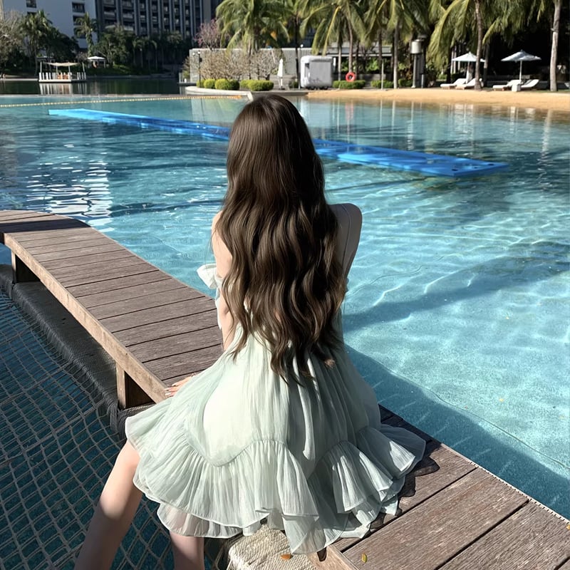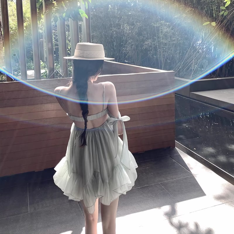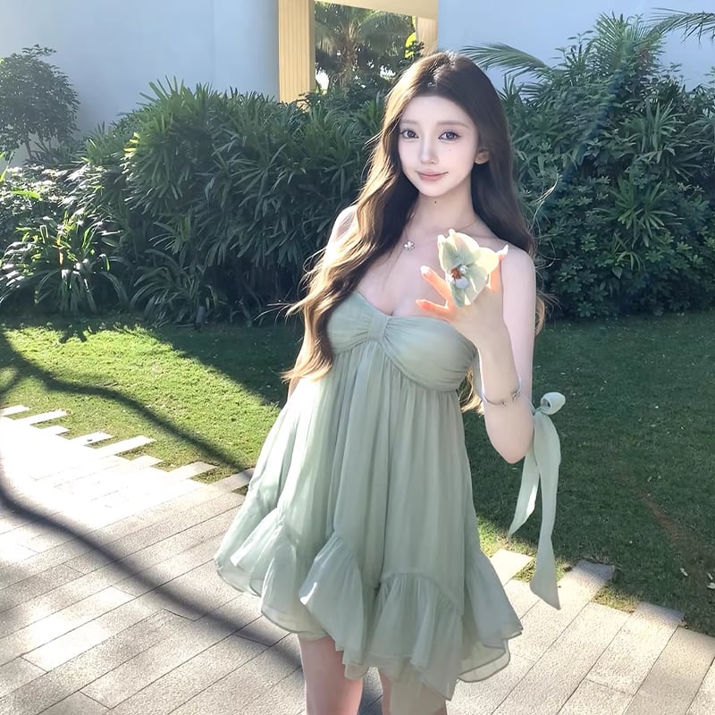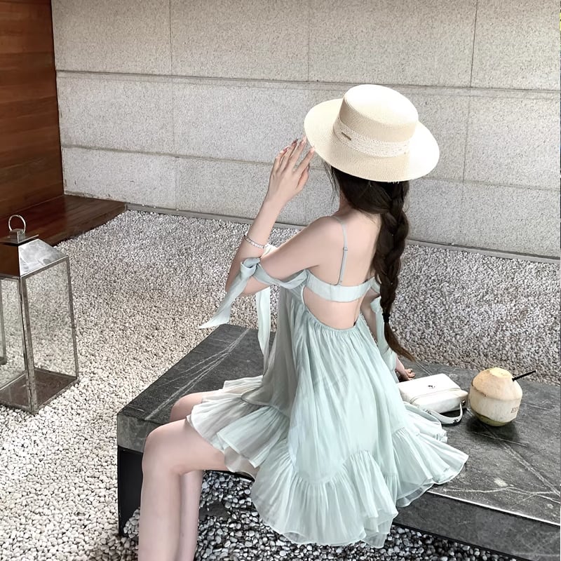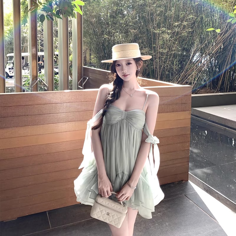 【dress】リボン付きシアーチュールミニキャミワンピース Q8405