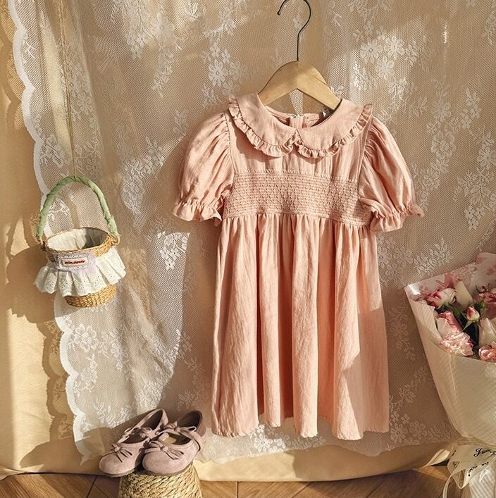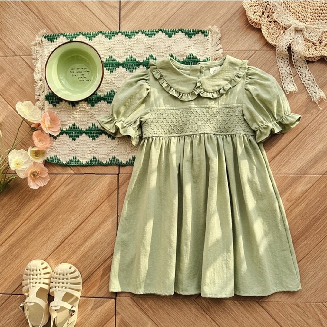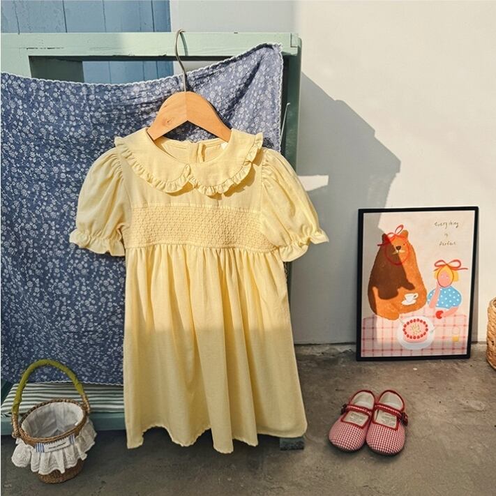 【kids】丸襟パフスリーブワンピース K0553