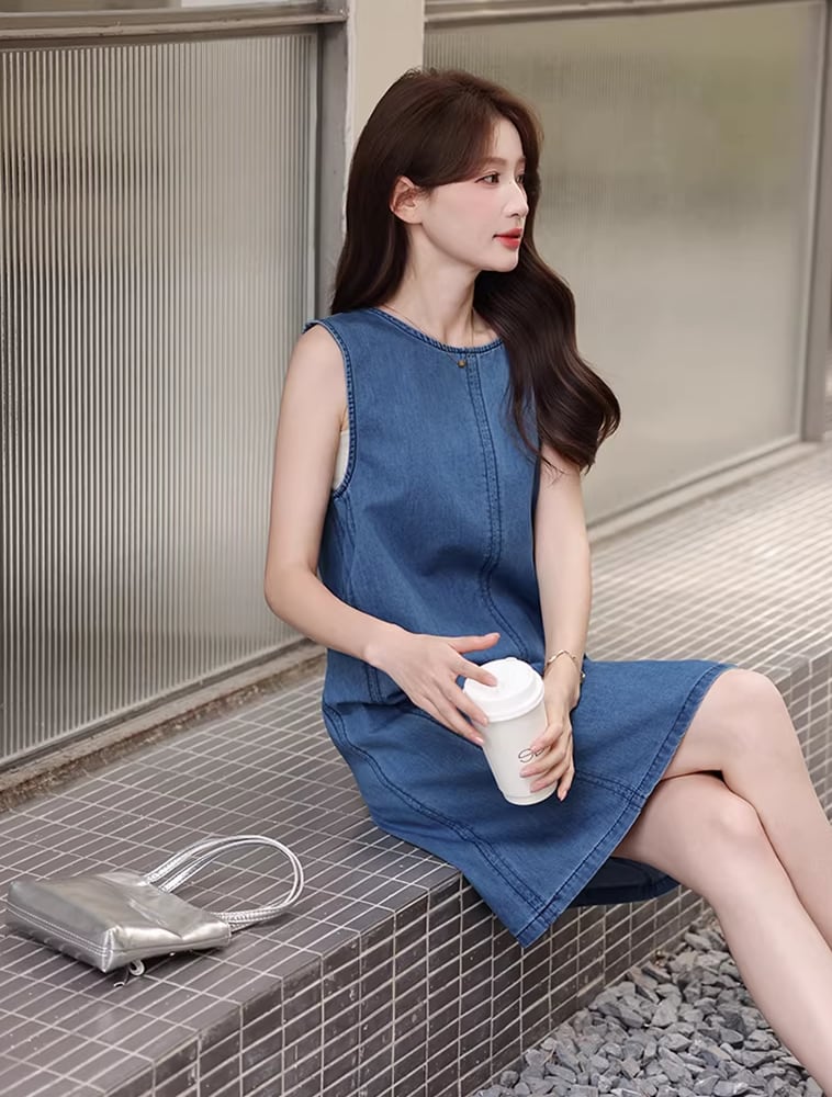 【dress】バックオーポンノースリーブデニムワンピース Q8421