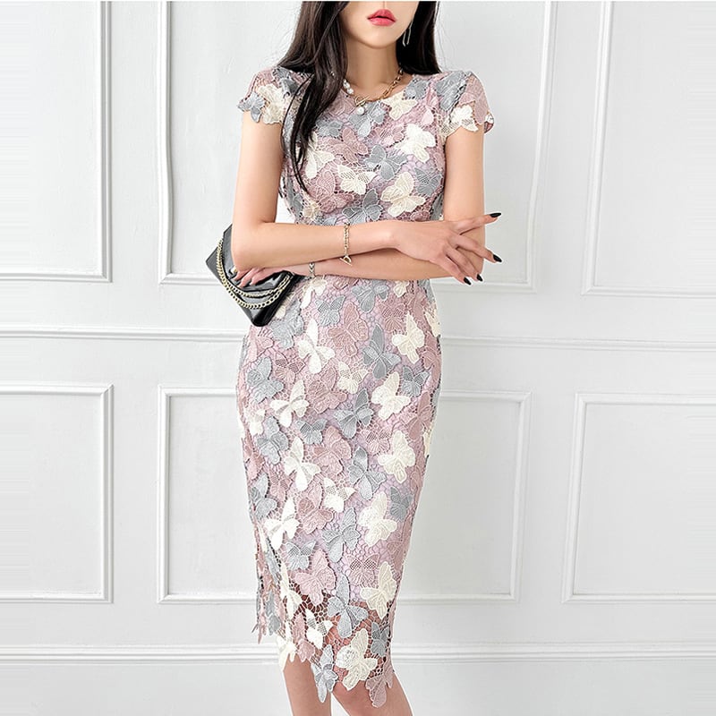 【dress】ノースリーブレース蝶柄ワンピース Q8426