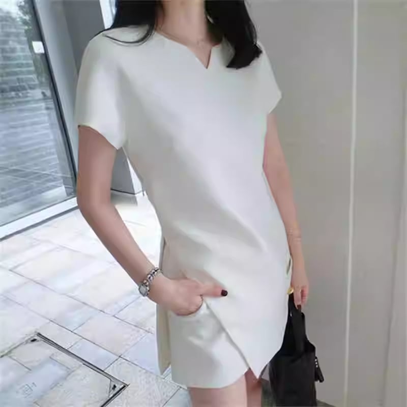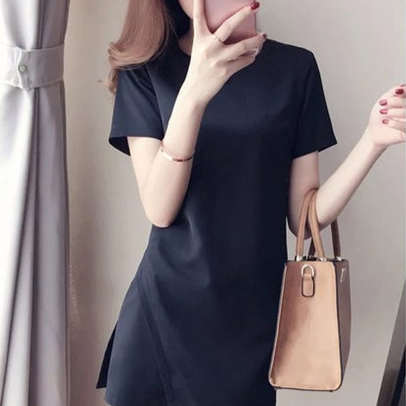 【set】スリットロングトップス×ショートパンツセット Q8428