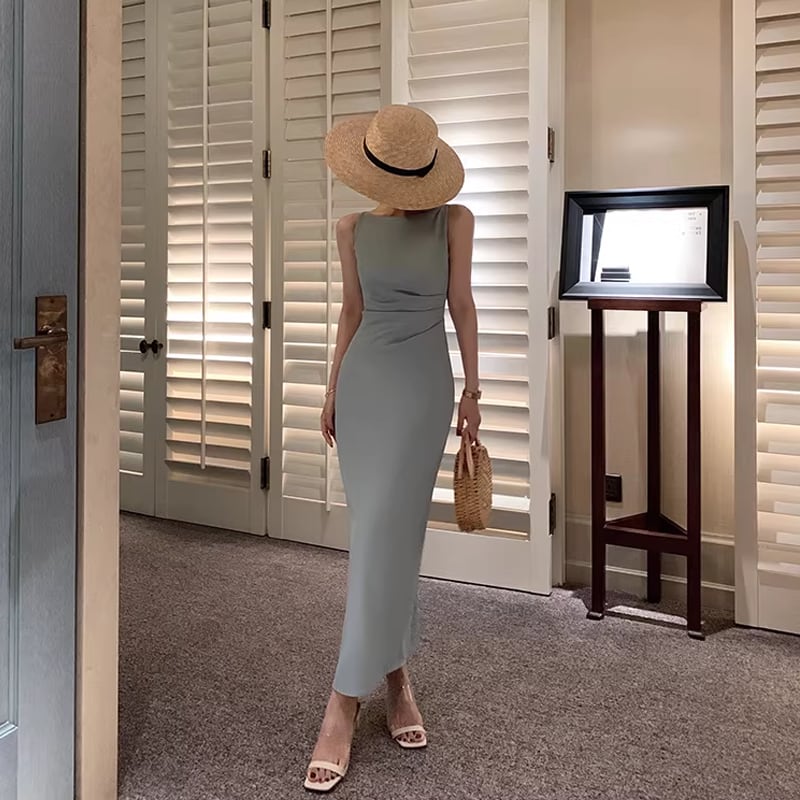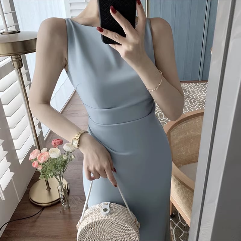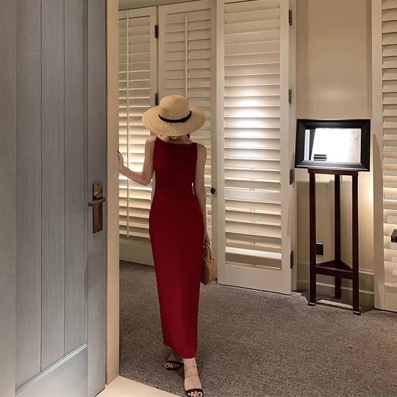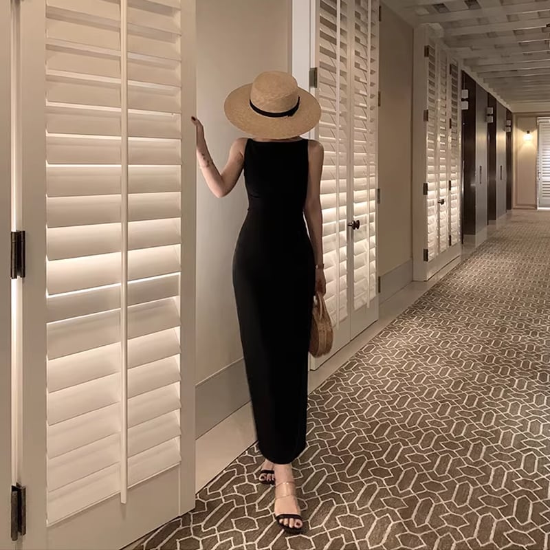 【dress】ノースリーブロングワンピース Q8434