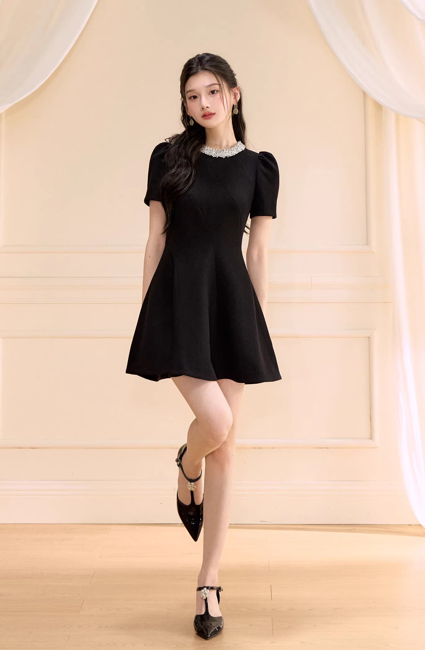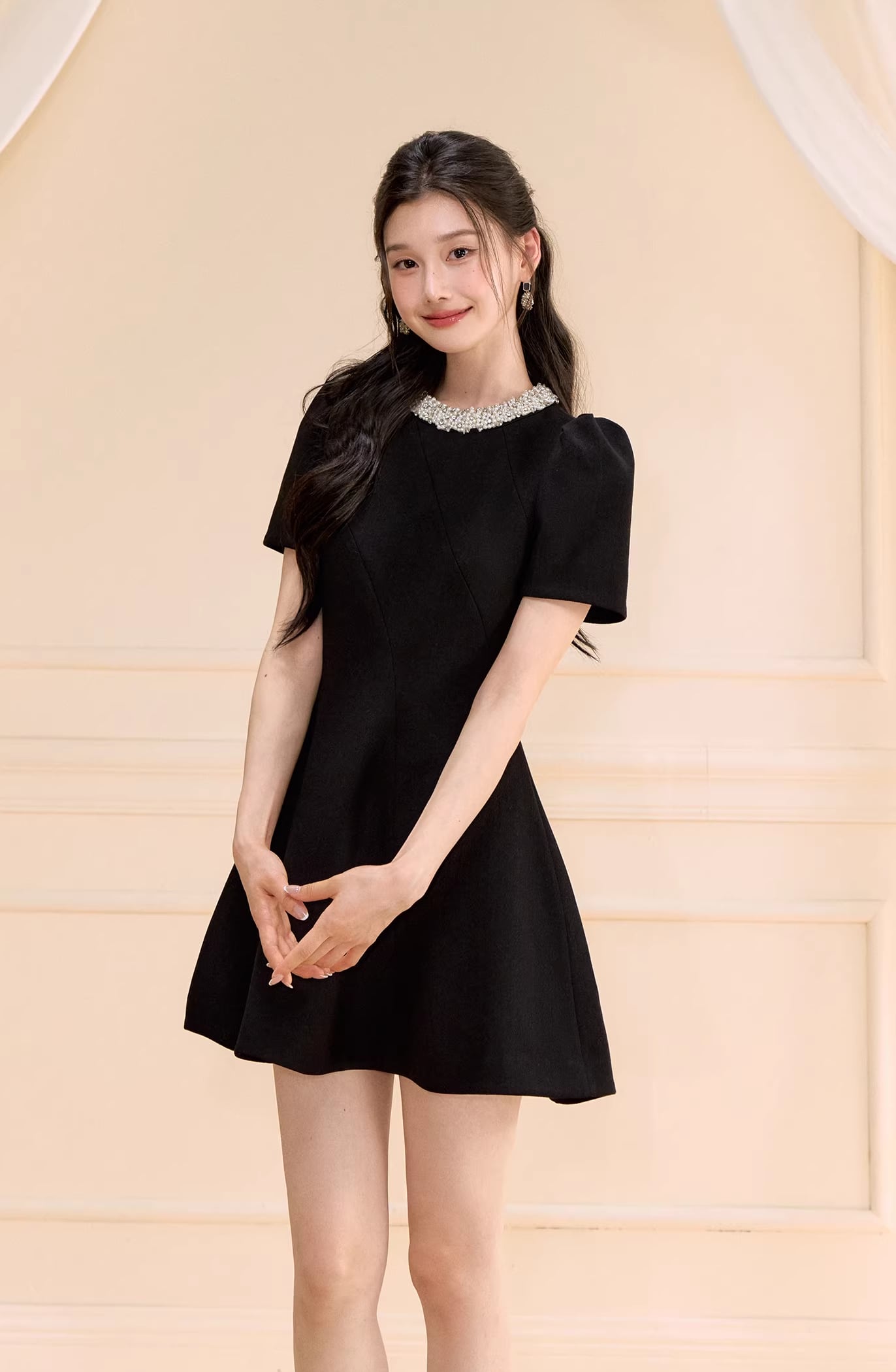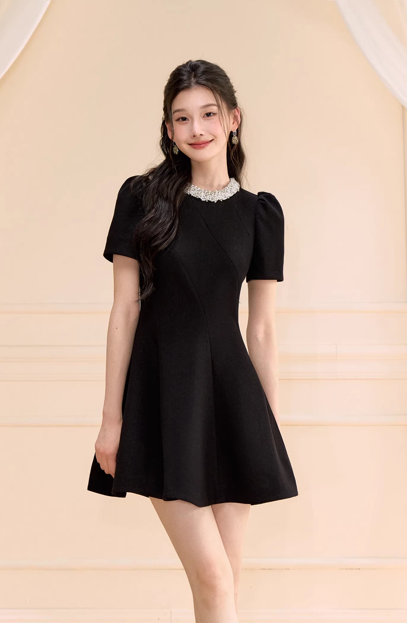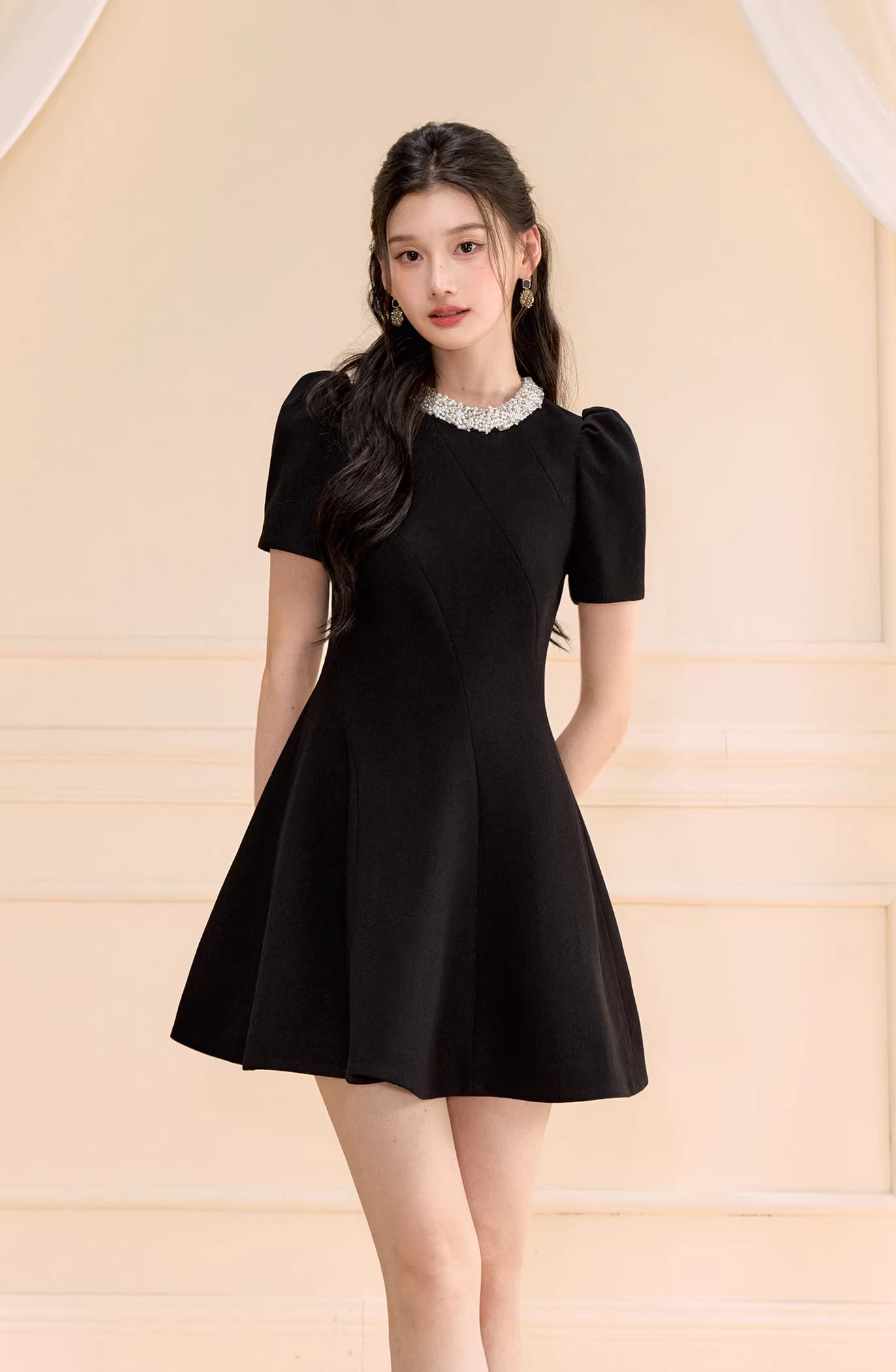 【dress】ビーズ付きAラインフレアワンピース Q8463