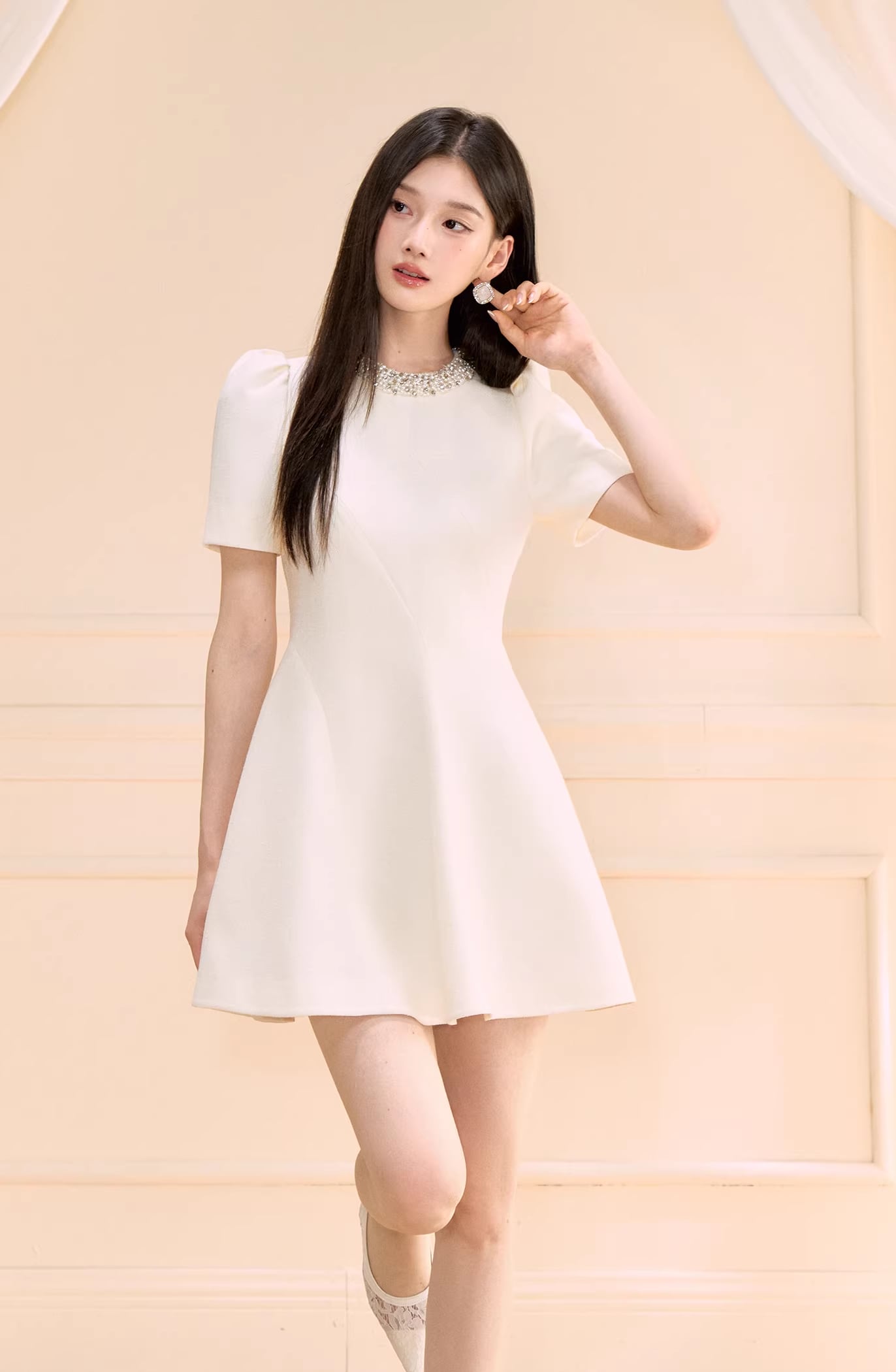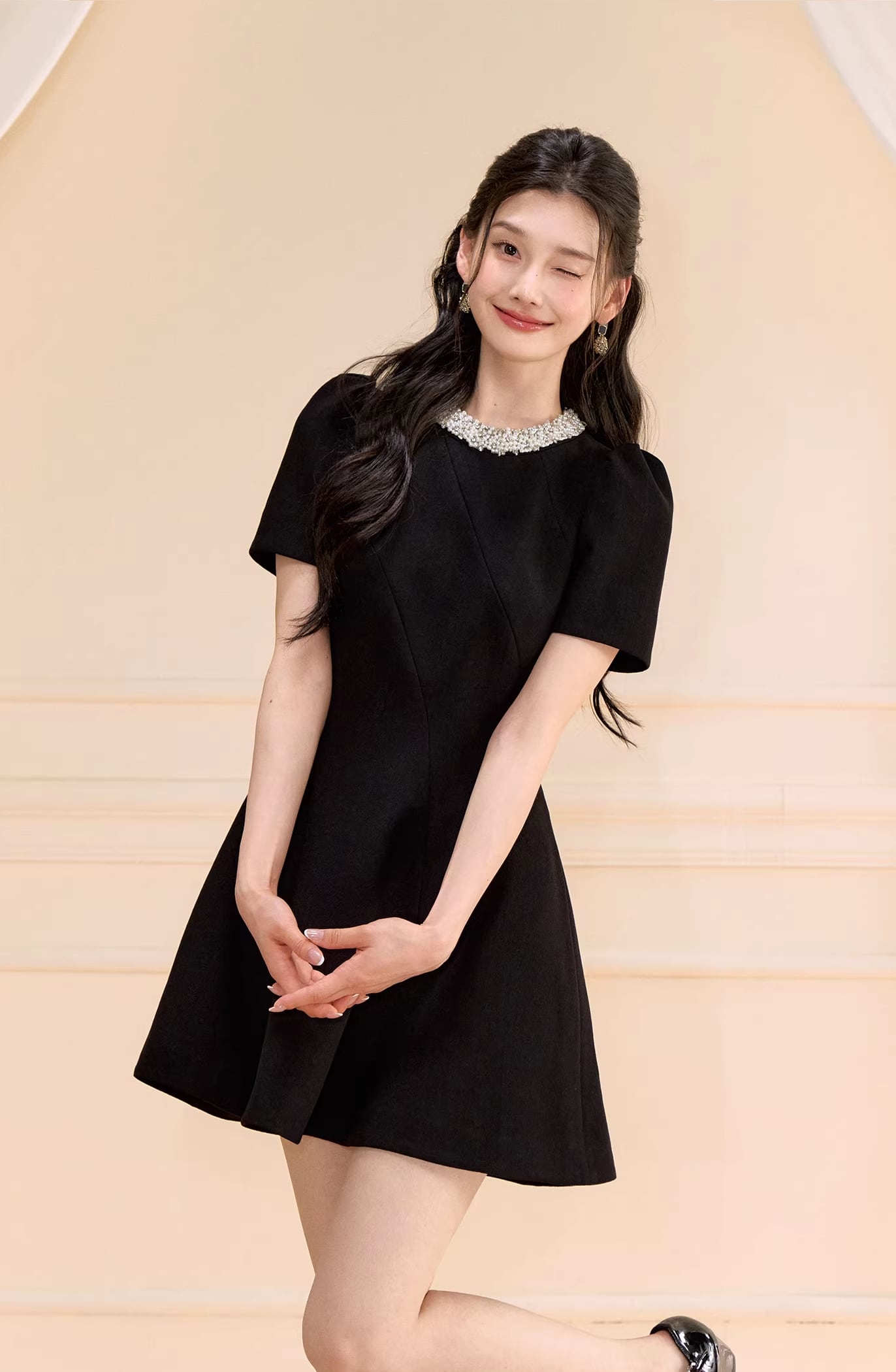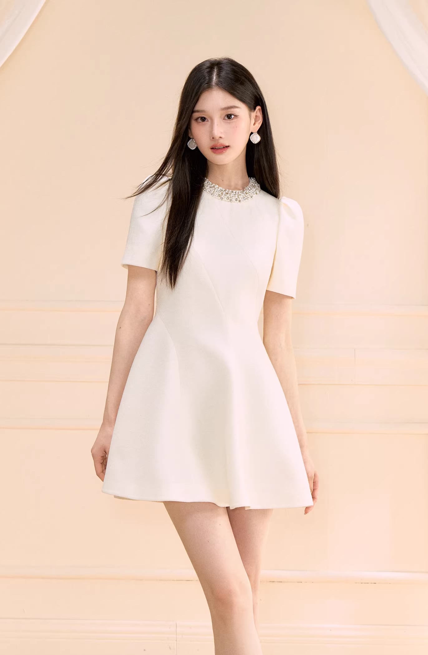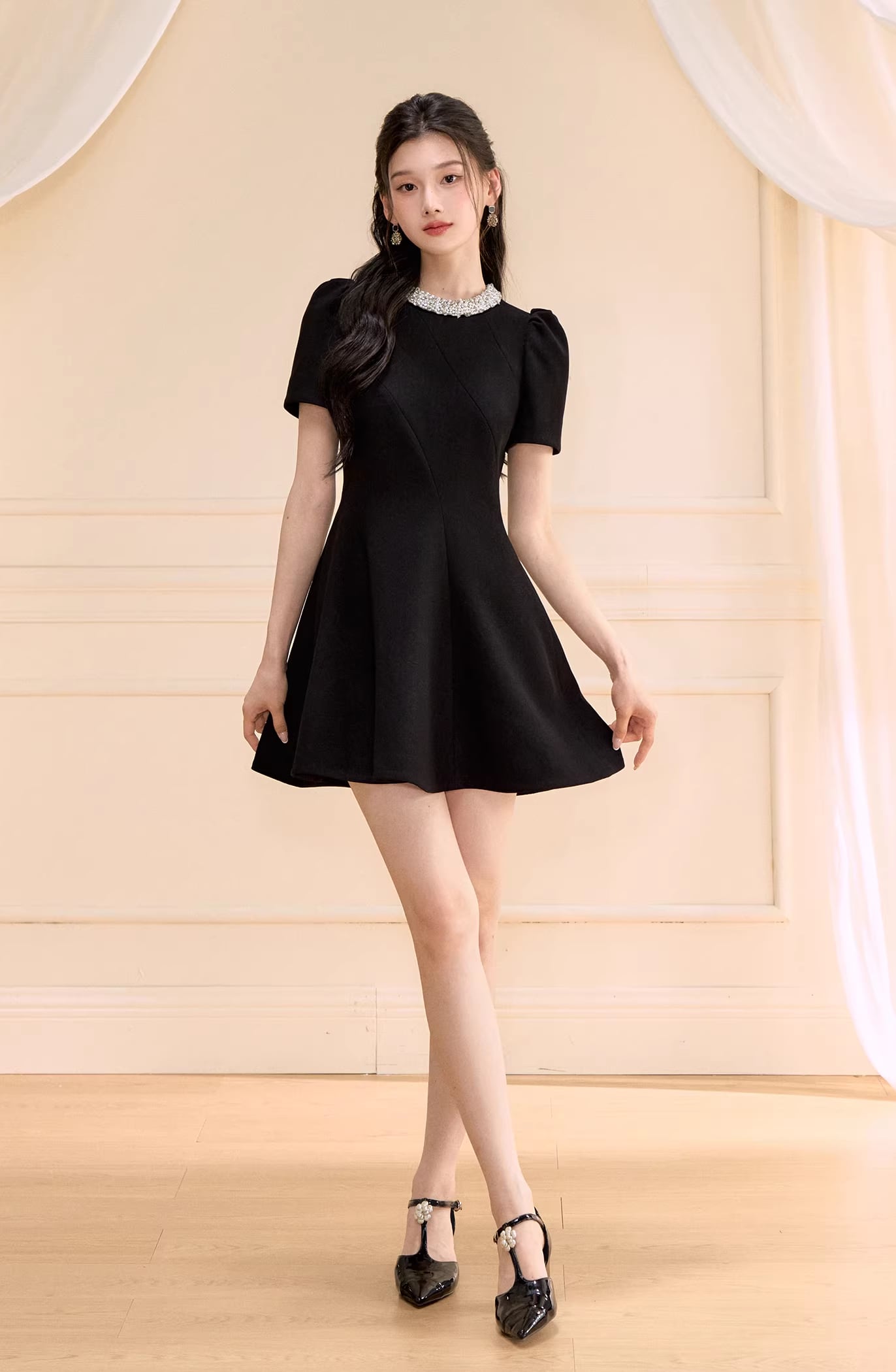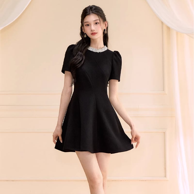 【dress】ビーズ付きAラインフレアワンピース Q8463