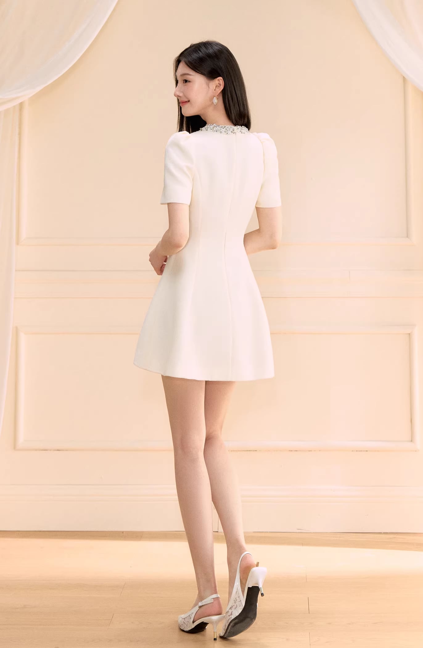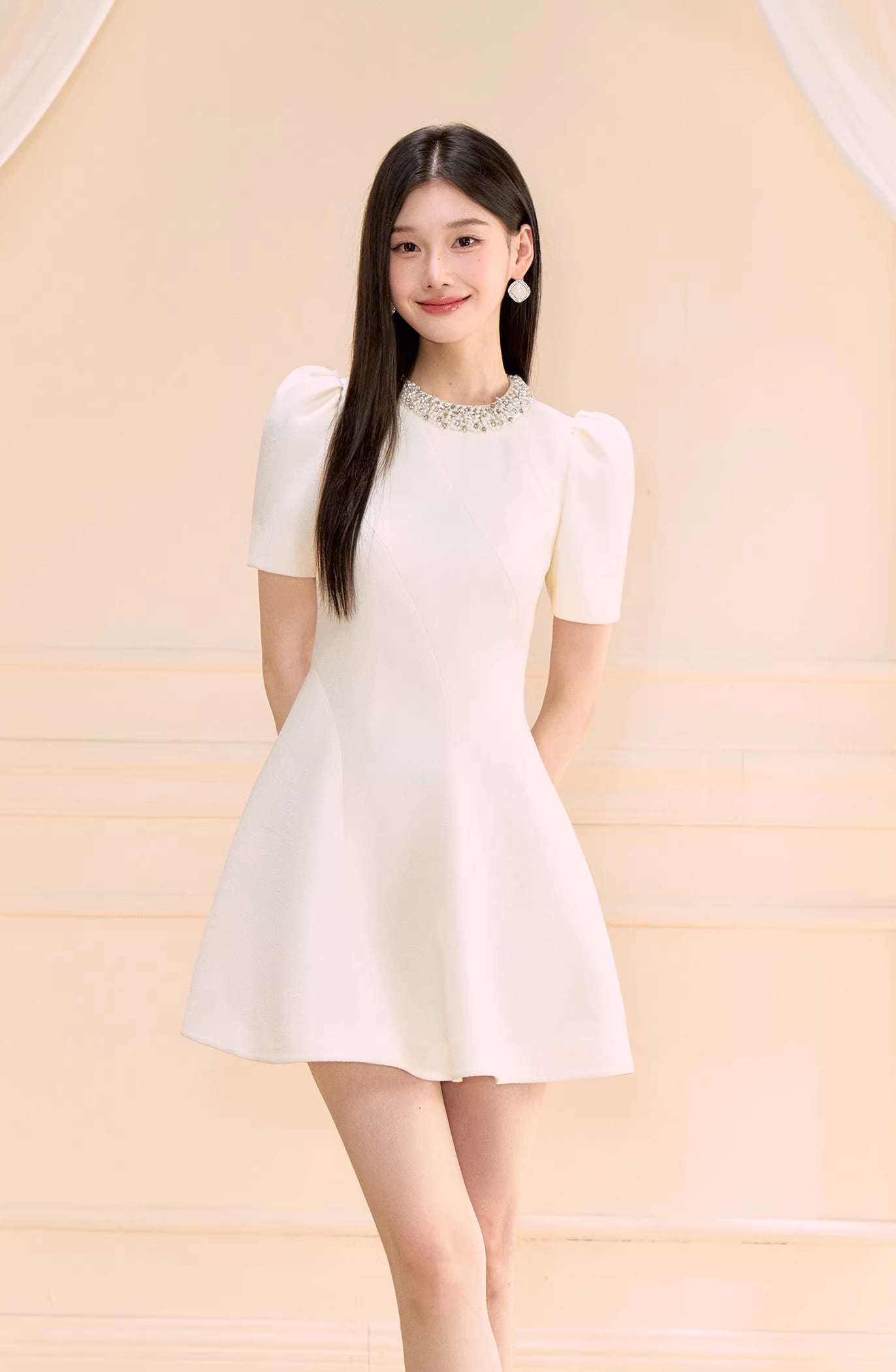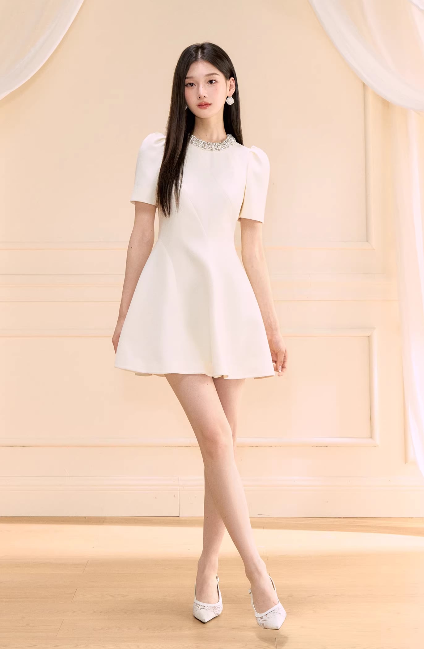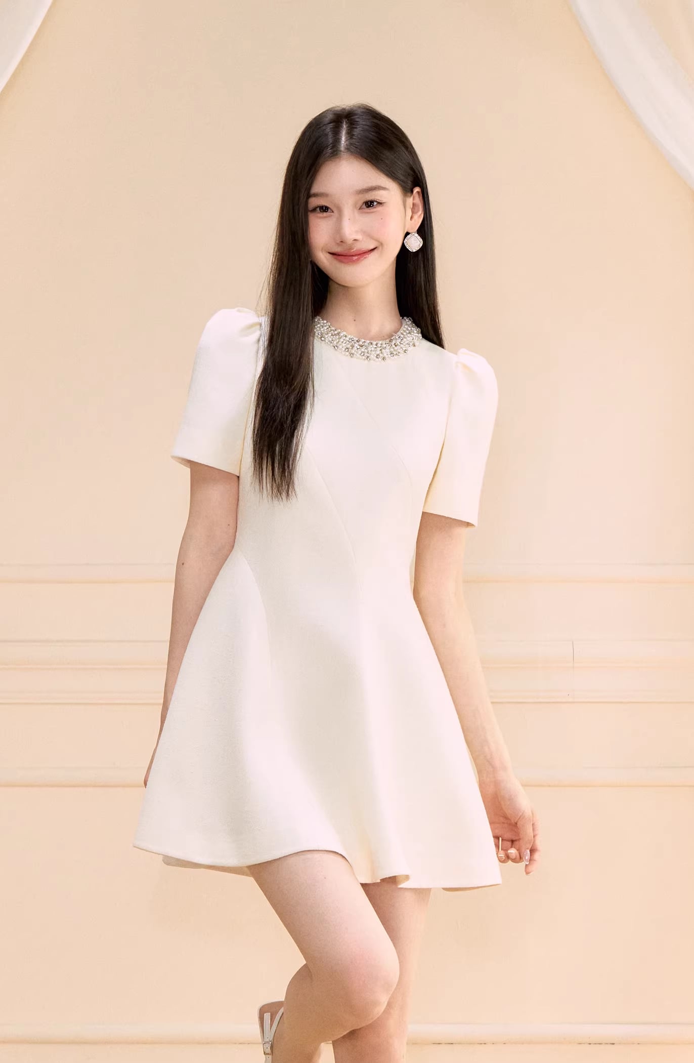 【dress】ビーズ付きAラインフレアワンピース Q8463