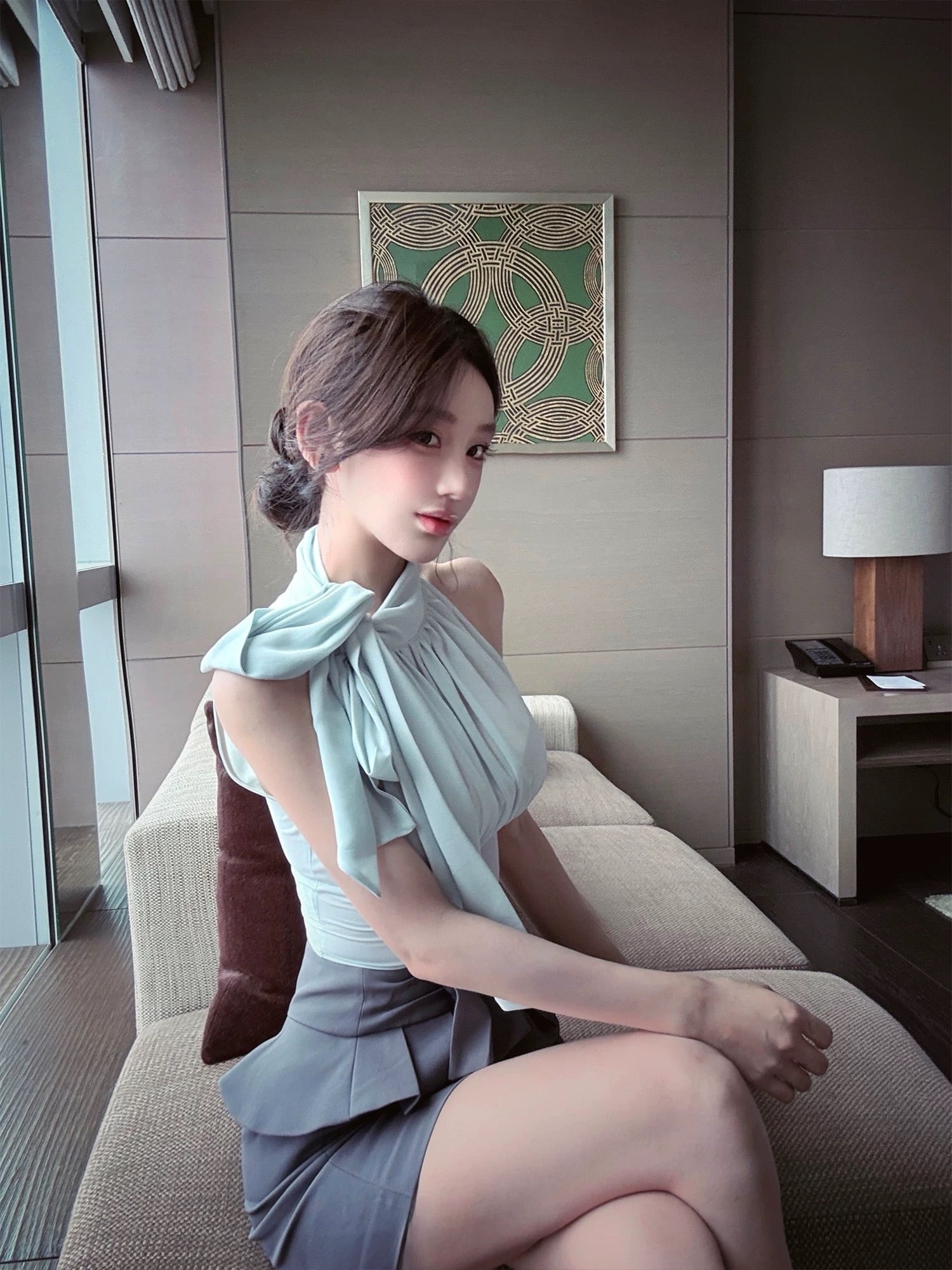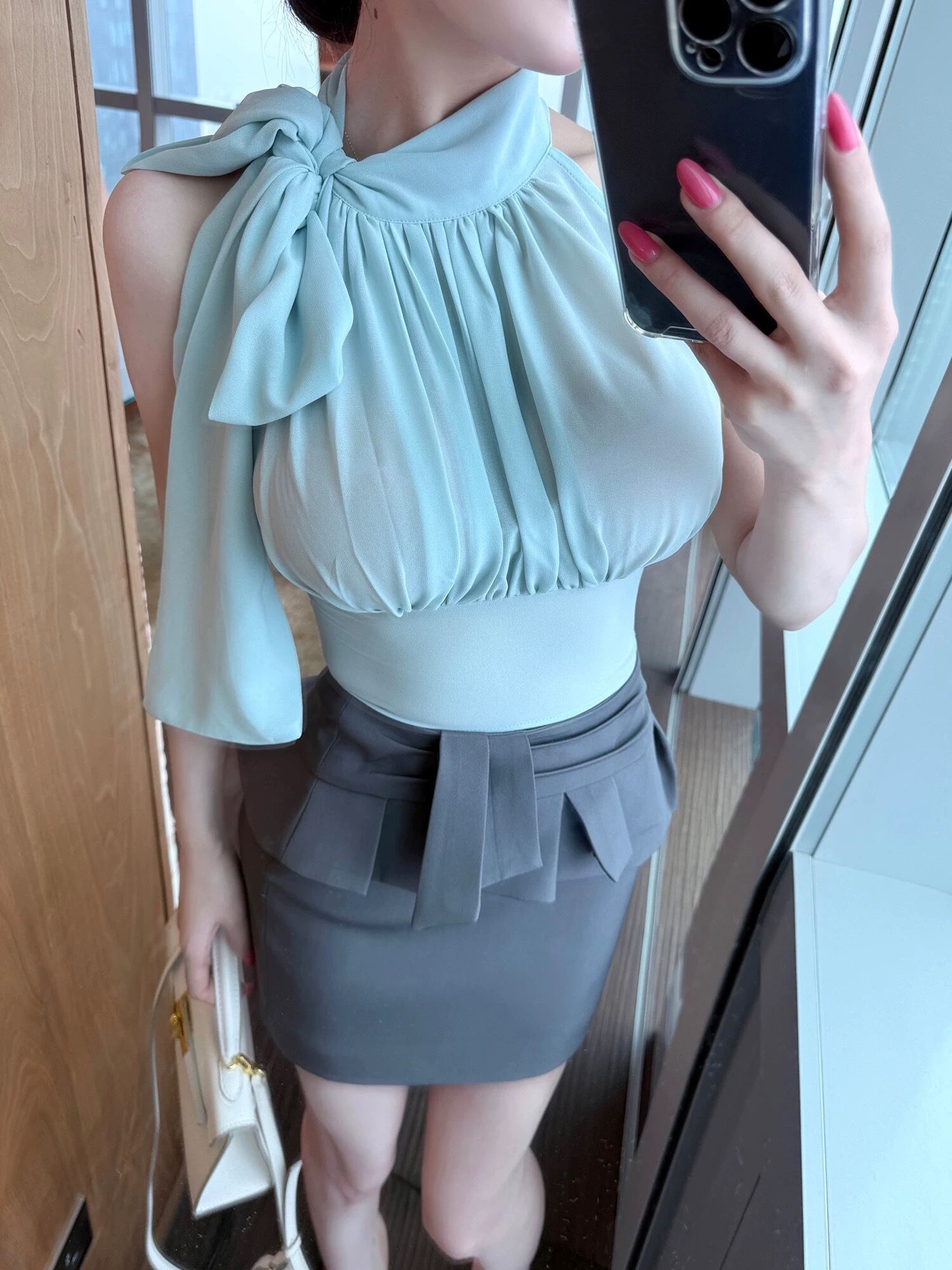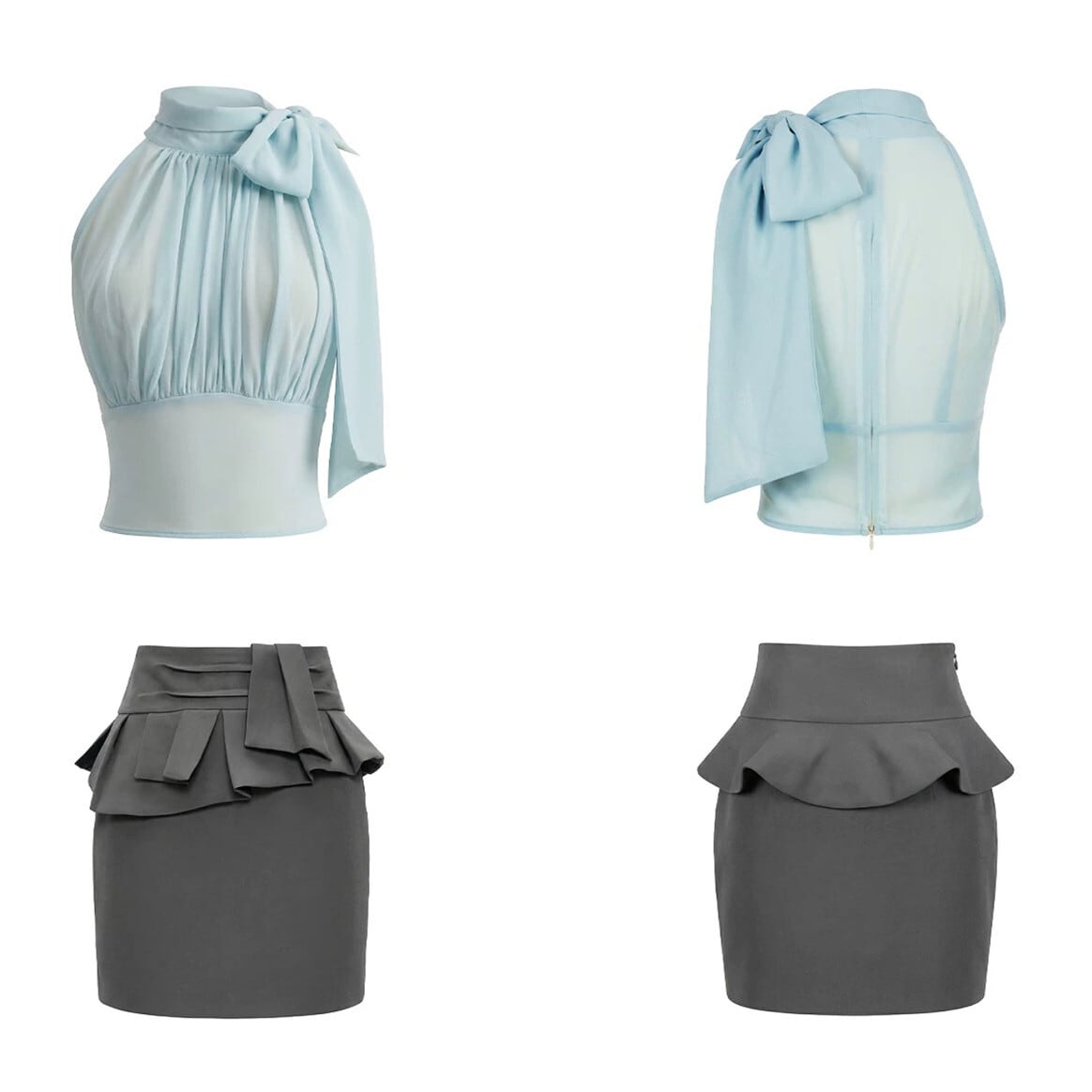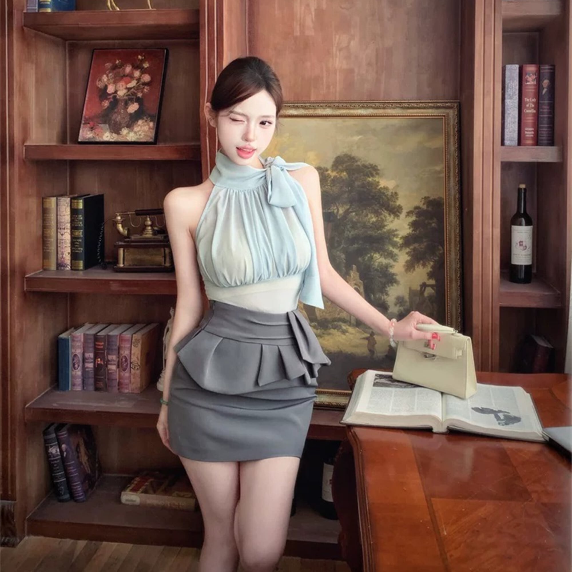 【set】リボンノースリーブトップス×フリルミニスカートセット N3570