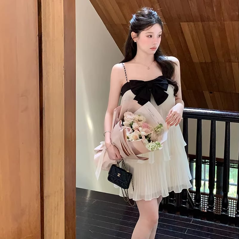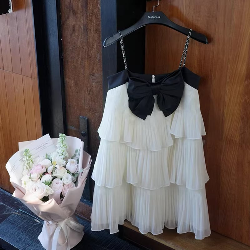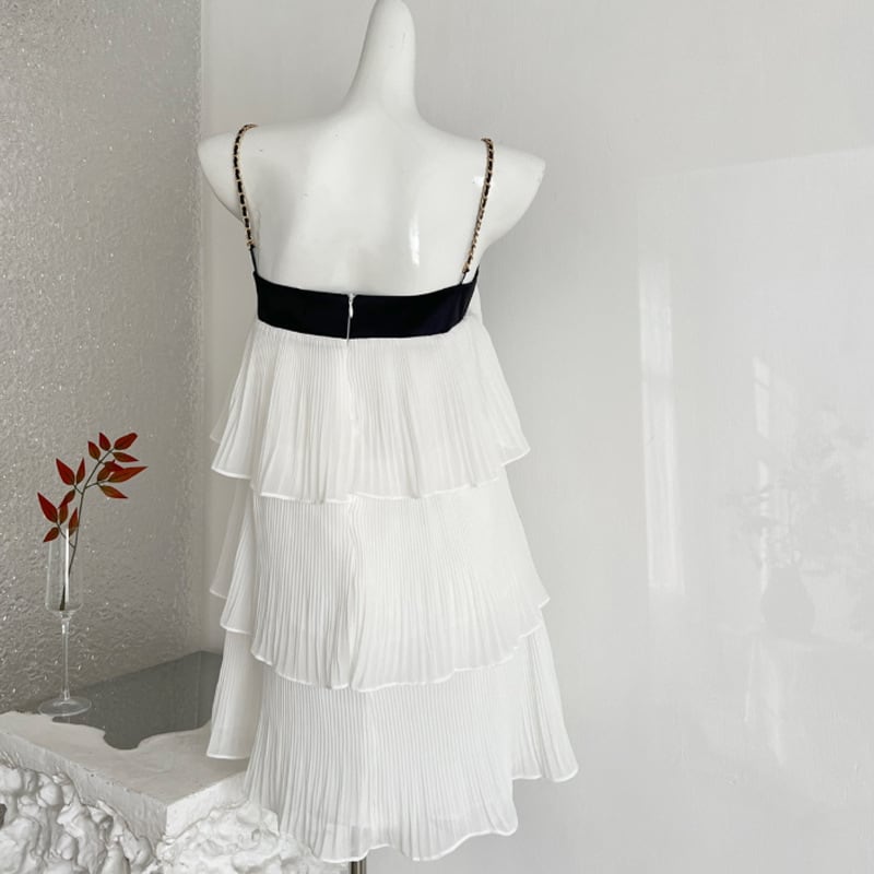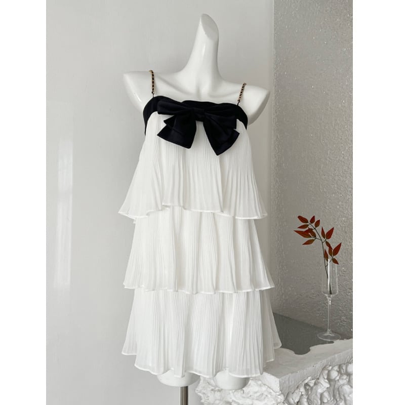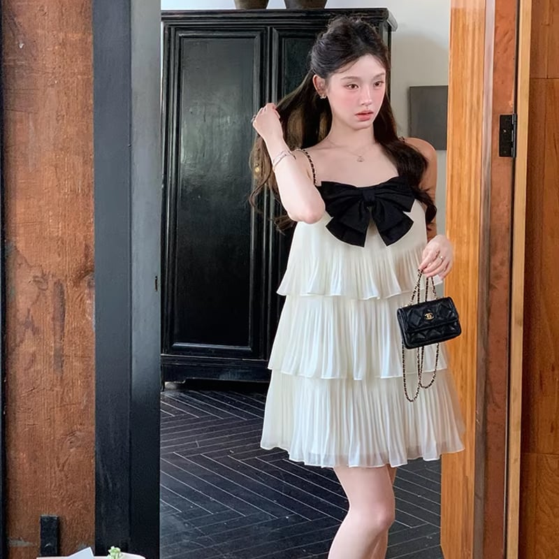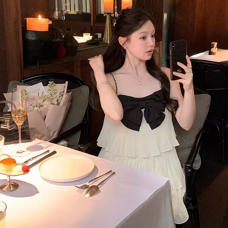 【dress】リボン付きティアードキャミワンピース Q8464