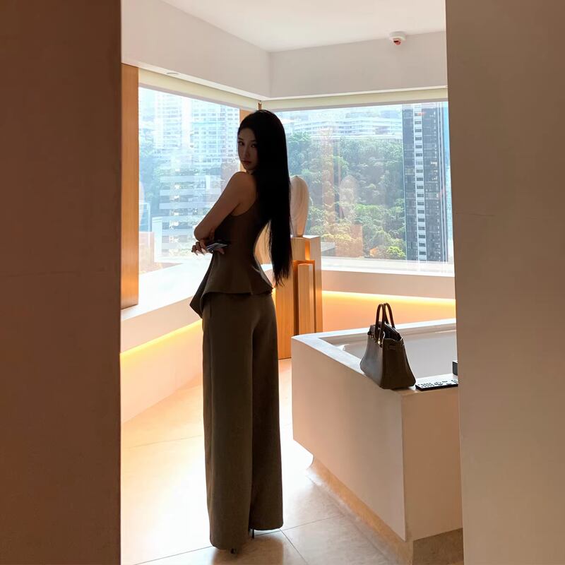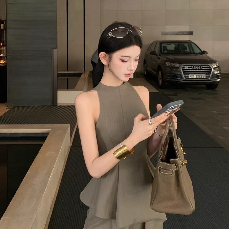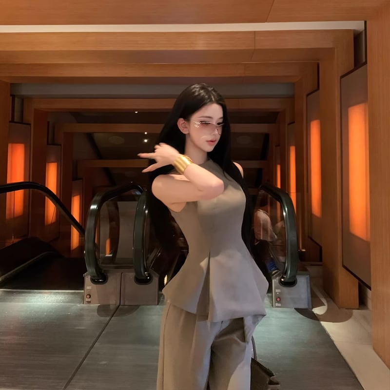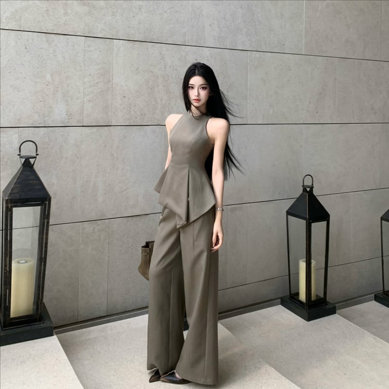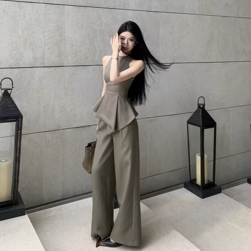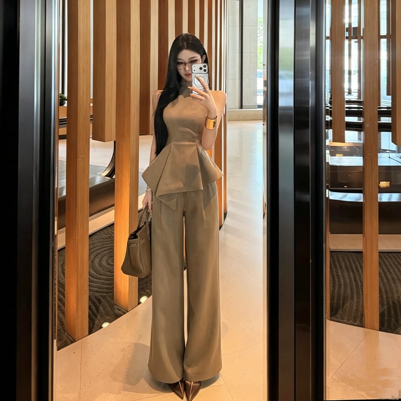 【set】ノースリーブフレアトップス×ワイドパンツセット Q8467