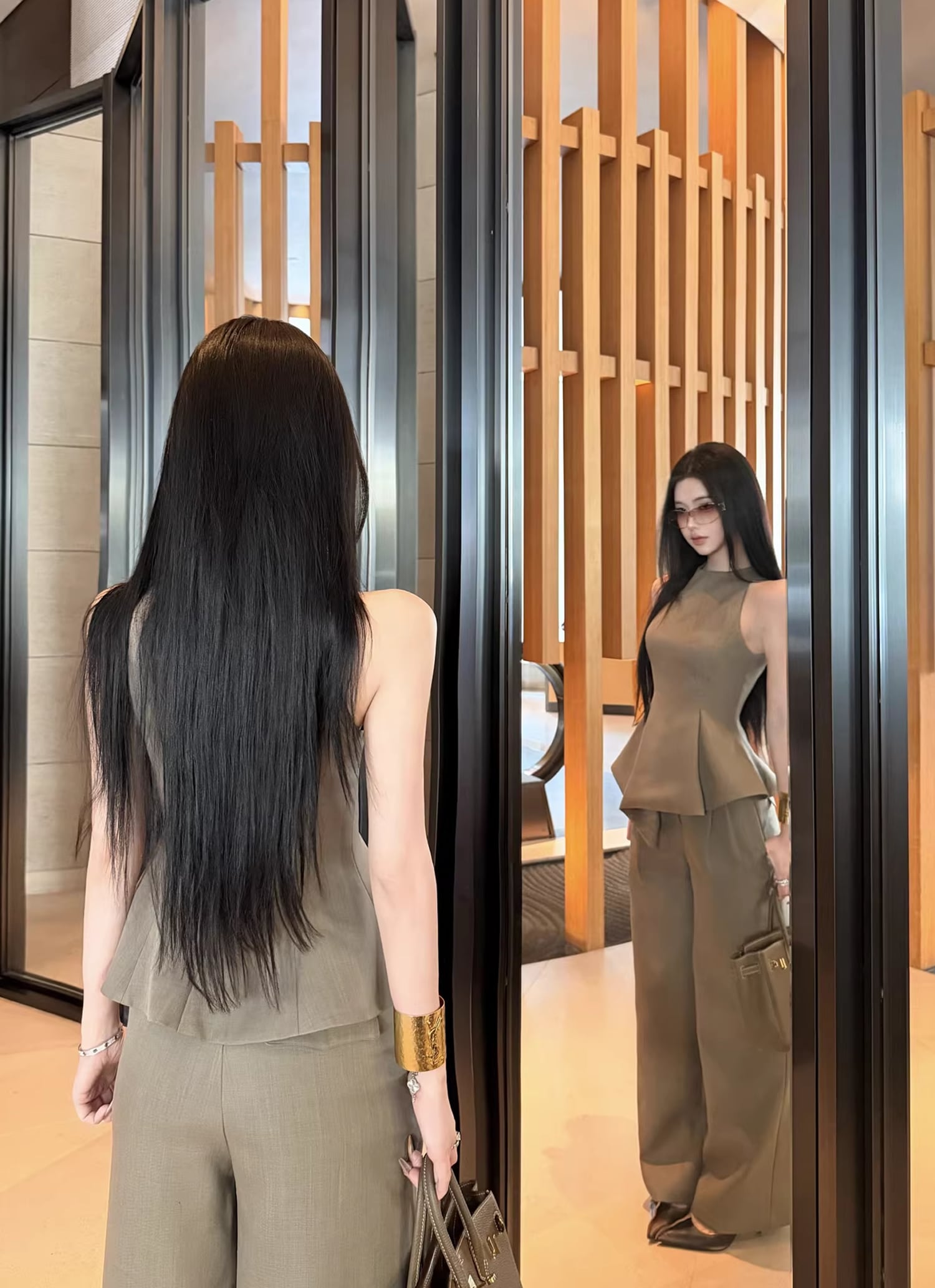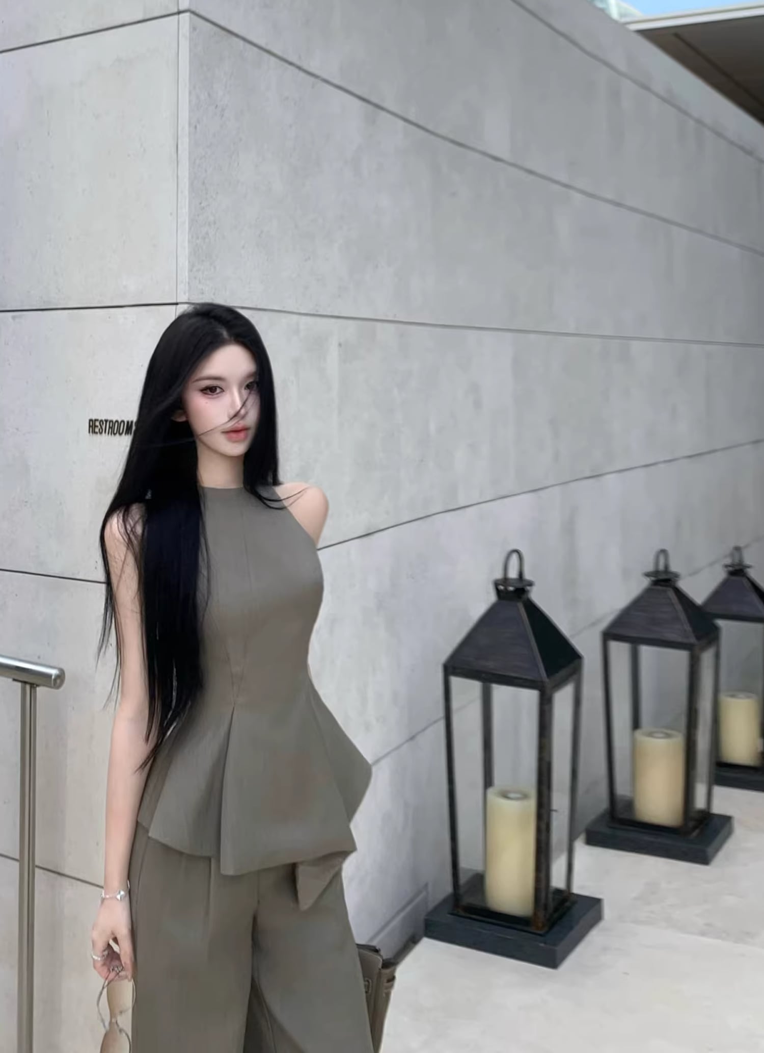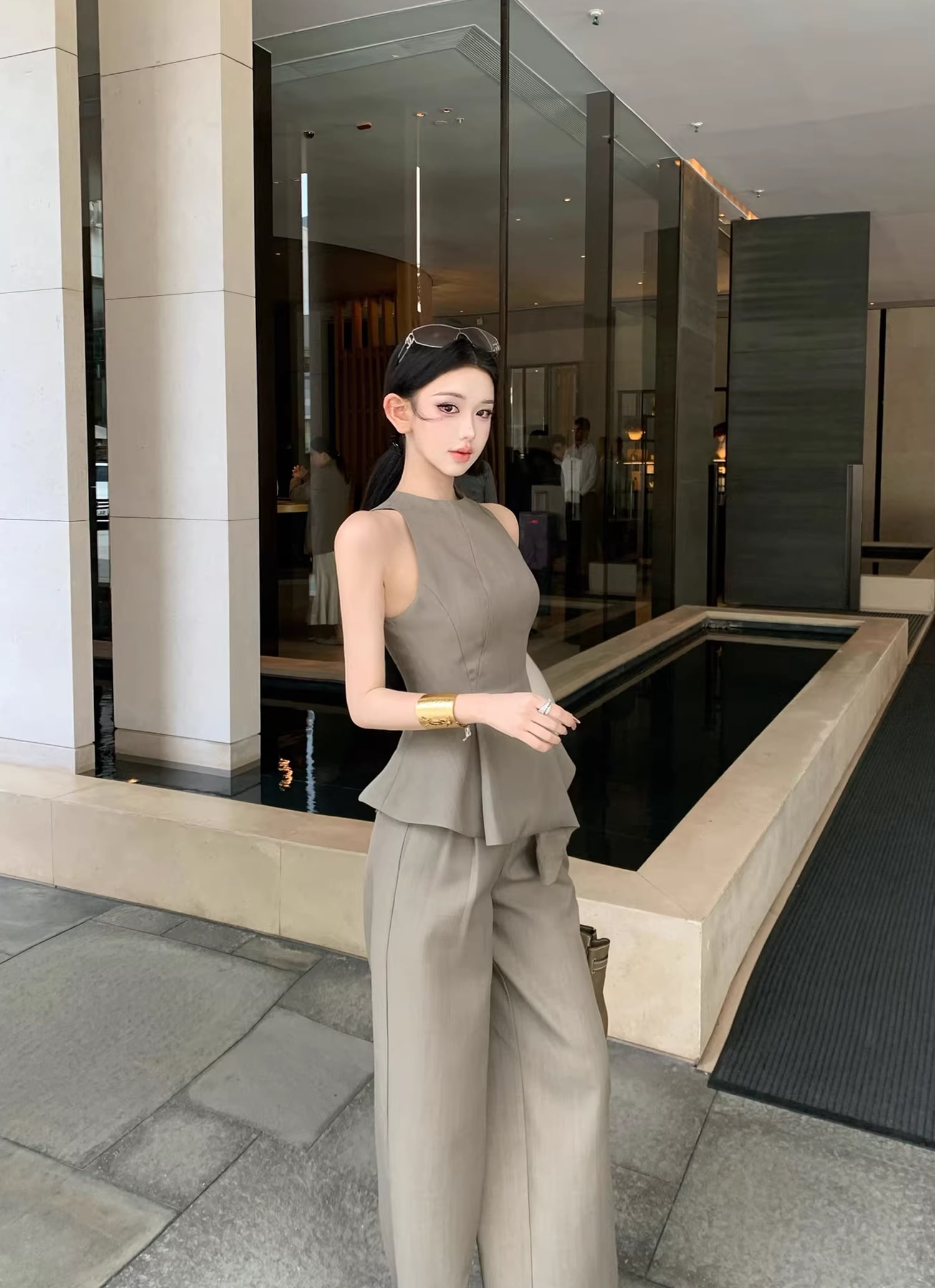 【set】ノースリーブフレアトップス×ワイドパンツセット Q8467