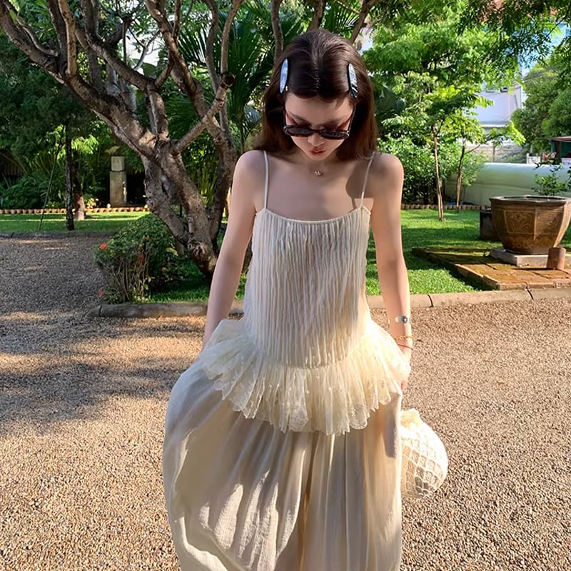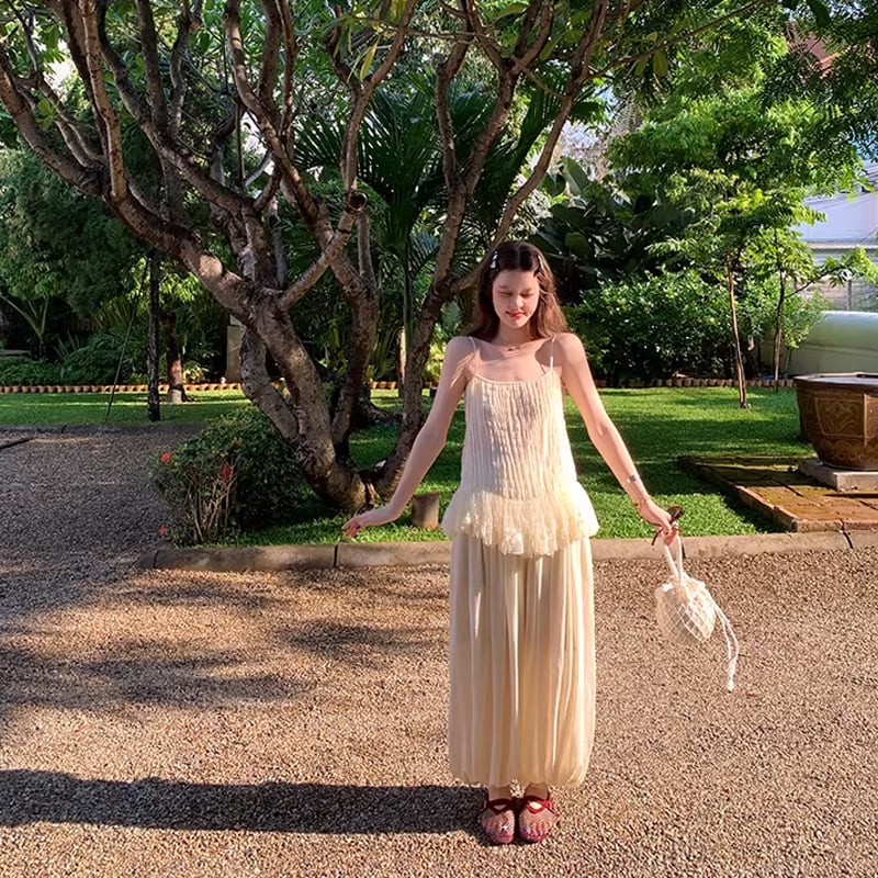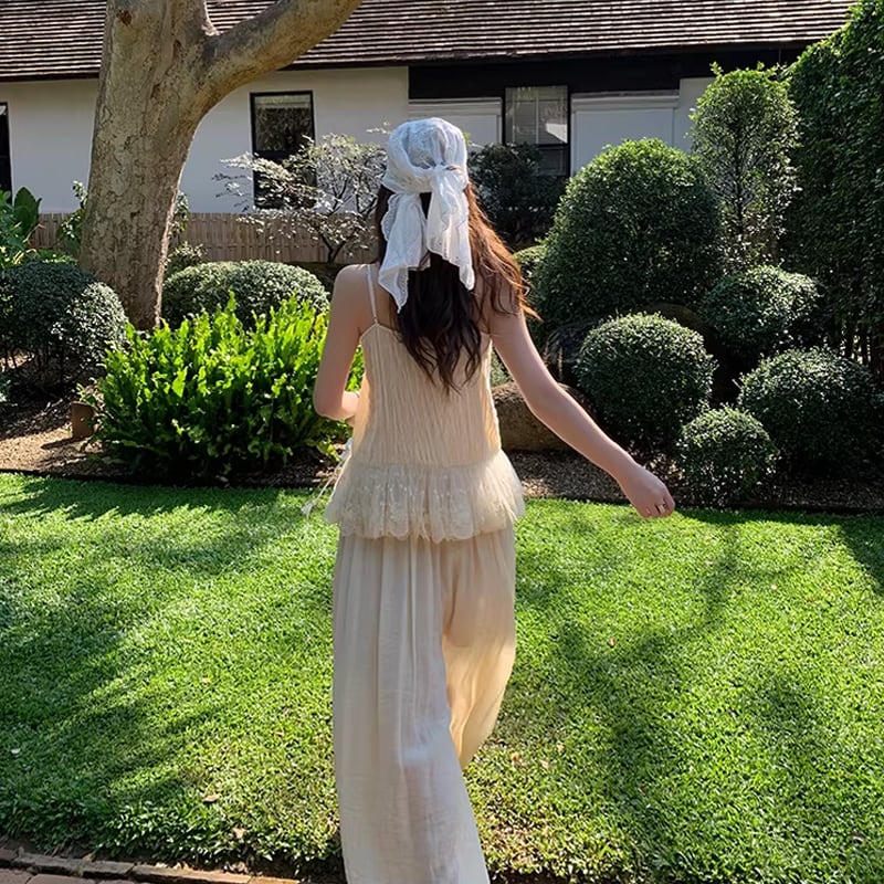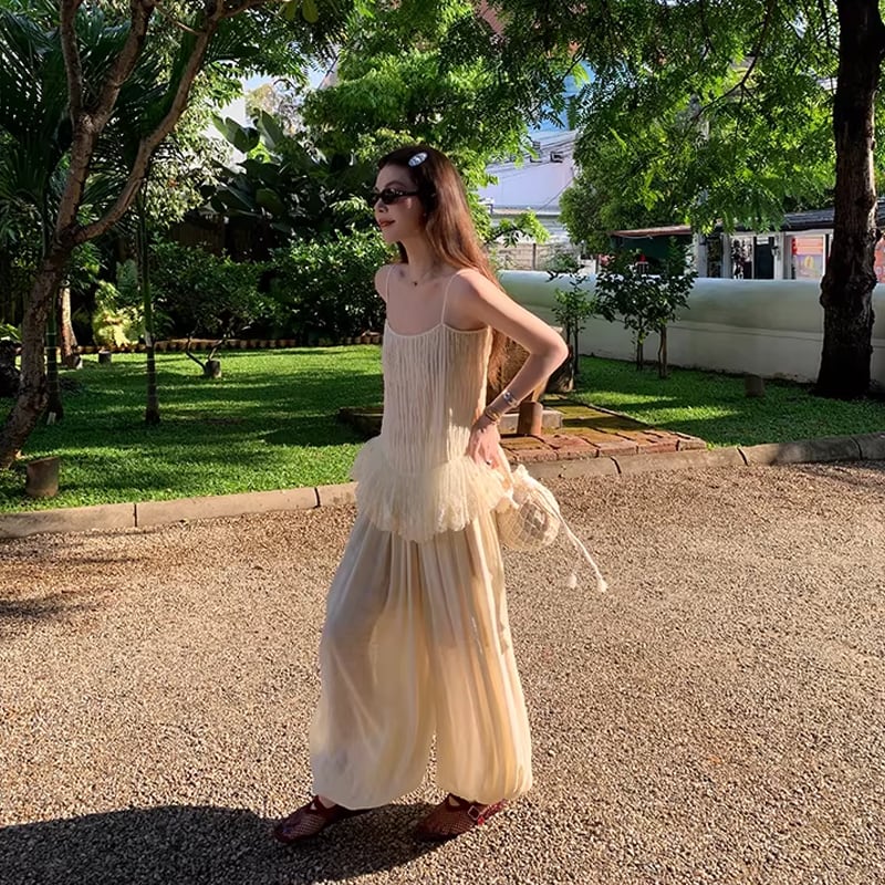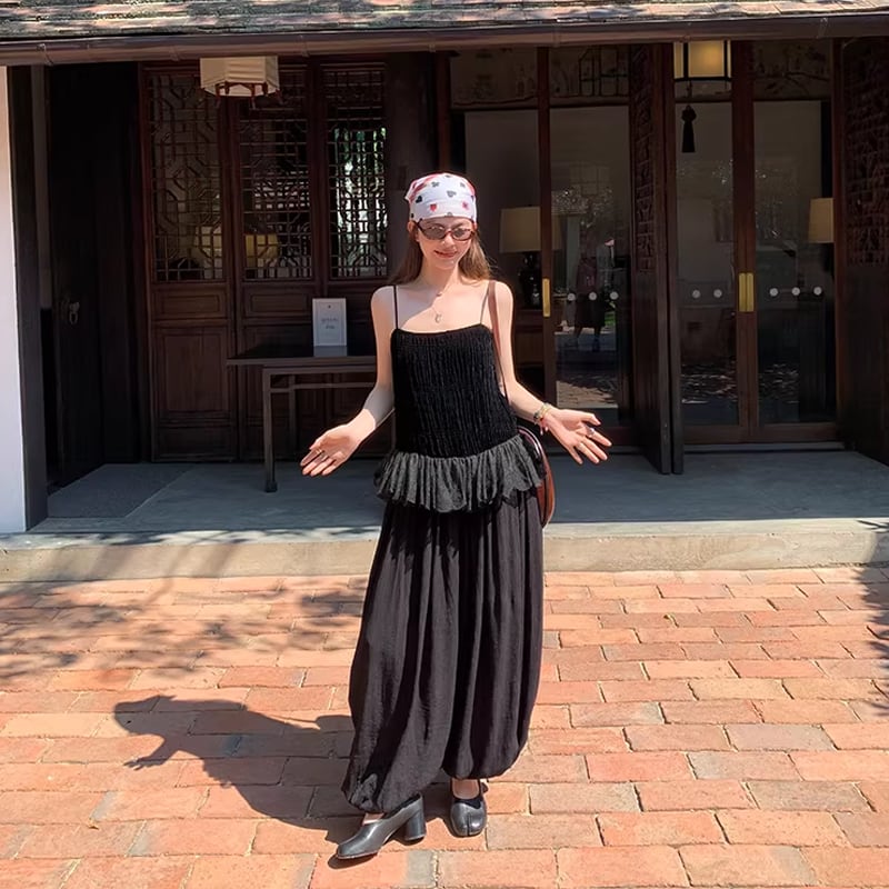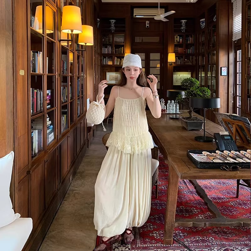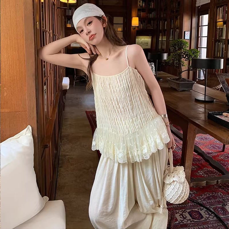 【set】レースドッキングギャザーキャミソール×ハーレムパンツセット Q8473