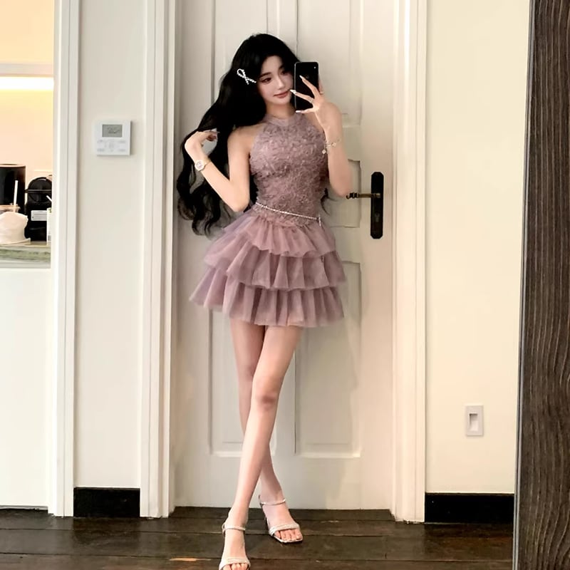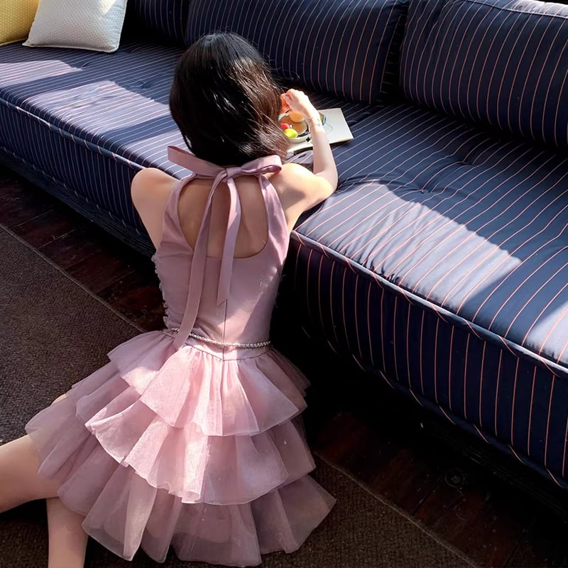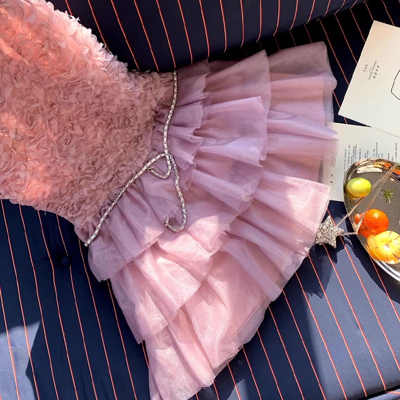 【dress】ノースリーブ立体感バラティアードワンピース Q8474