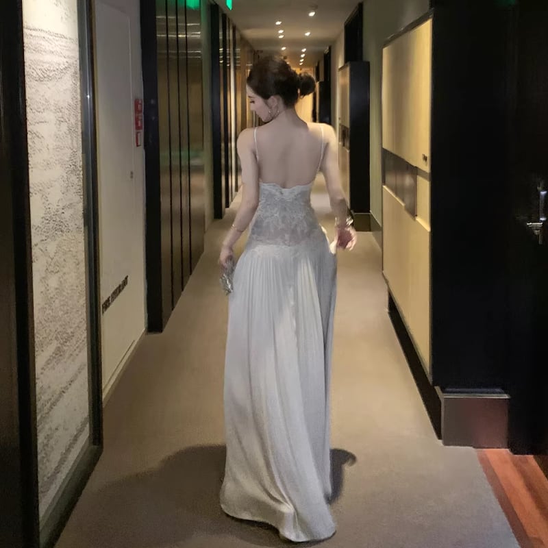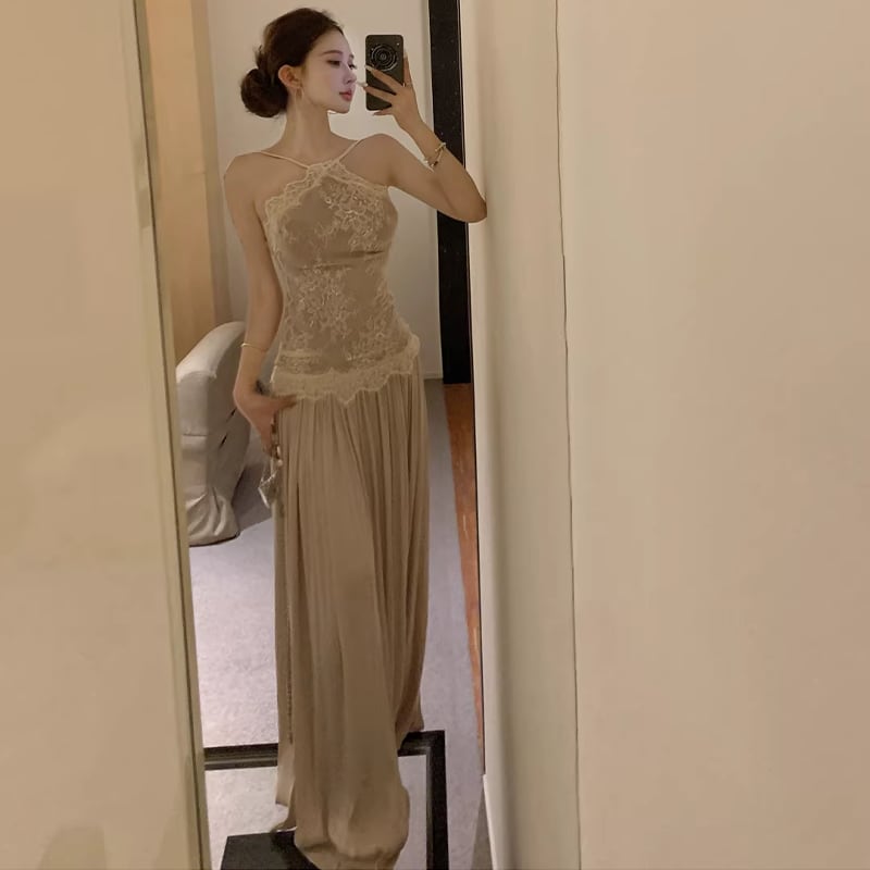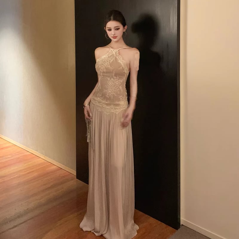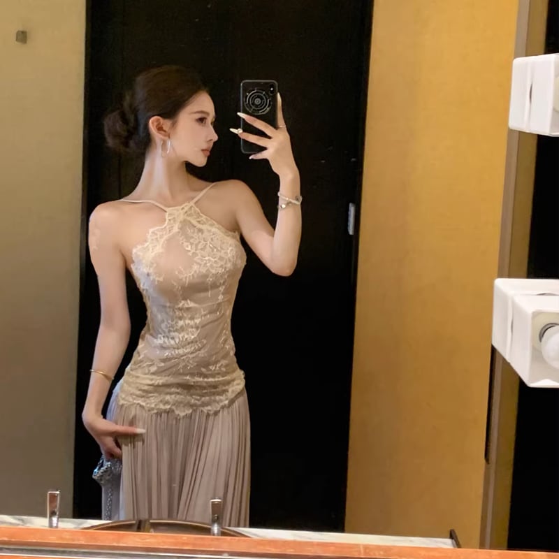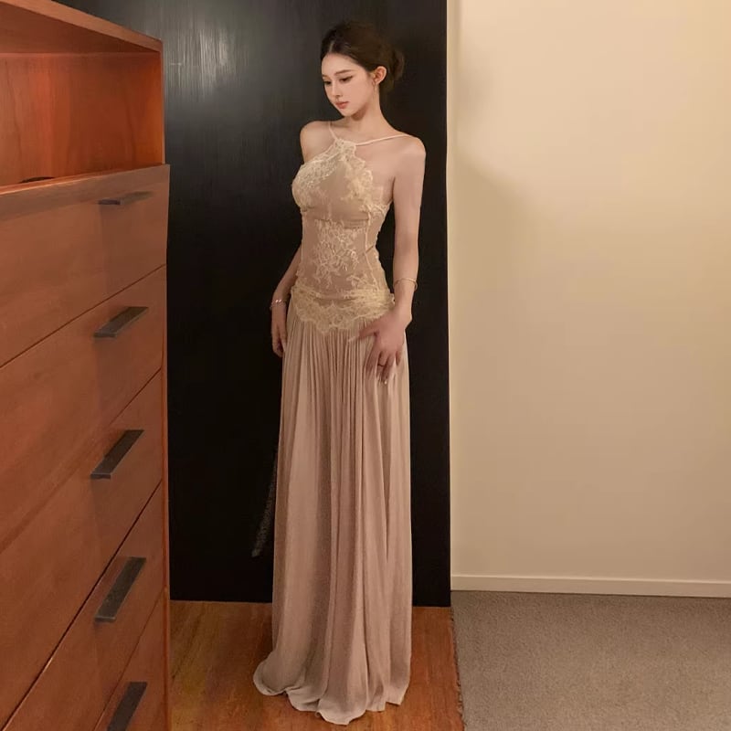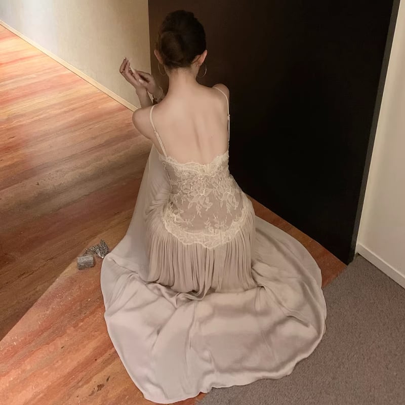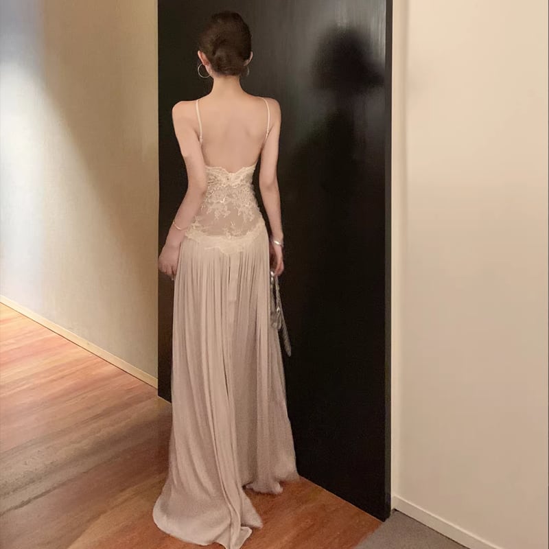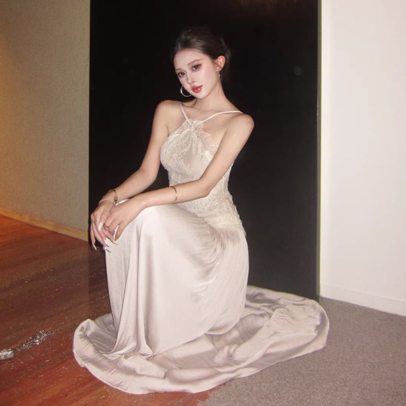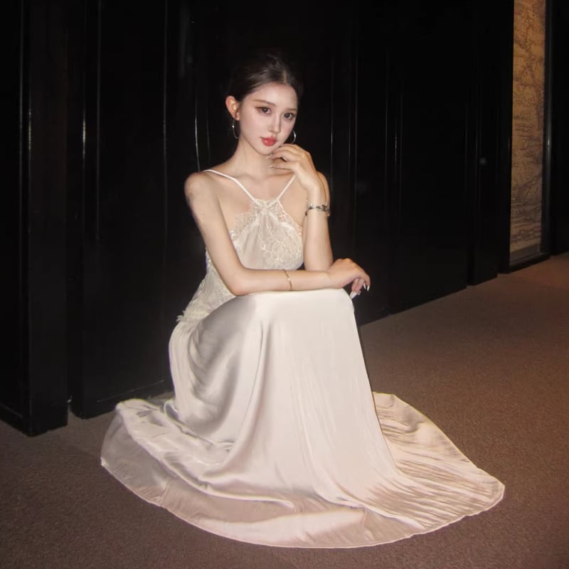 【dress】レースドッキングロングキャミワンピース Q8476