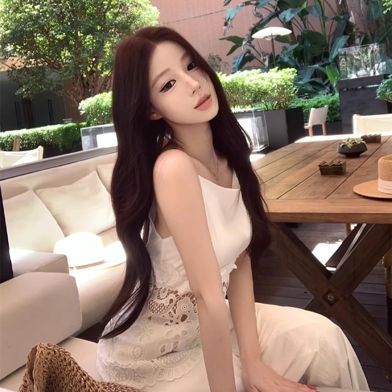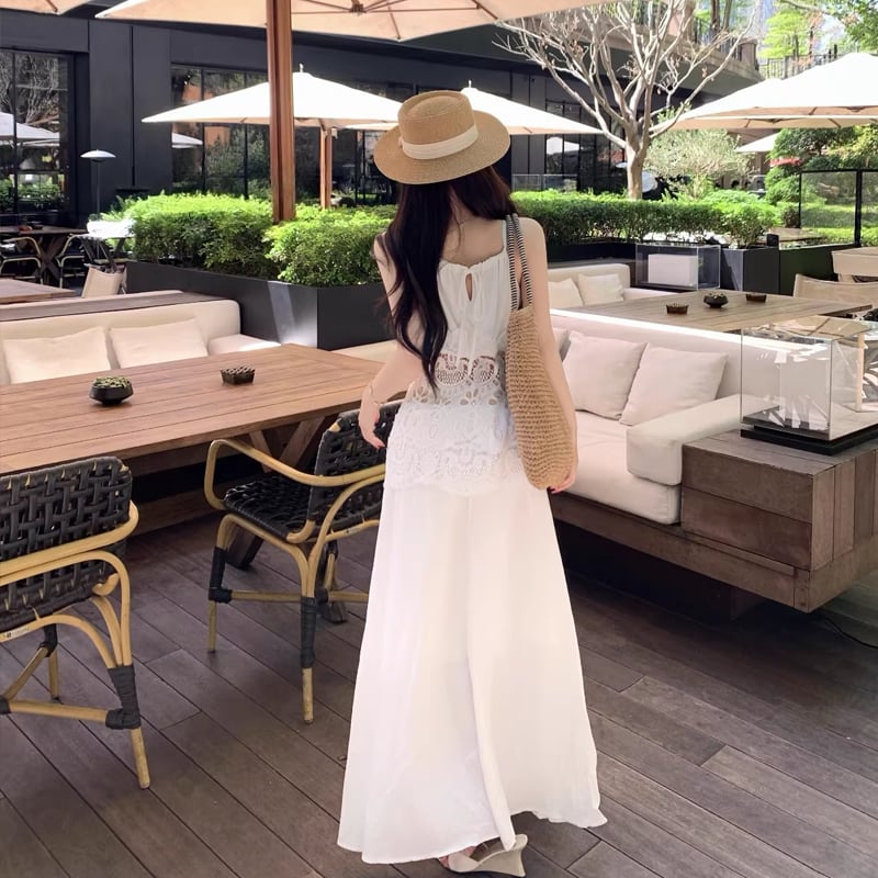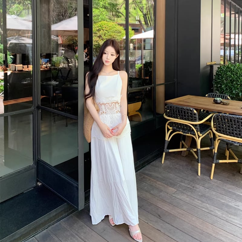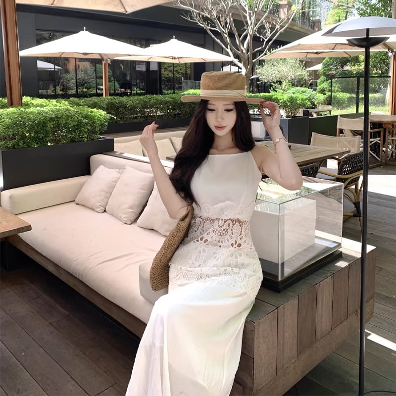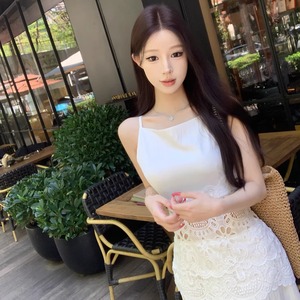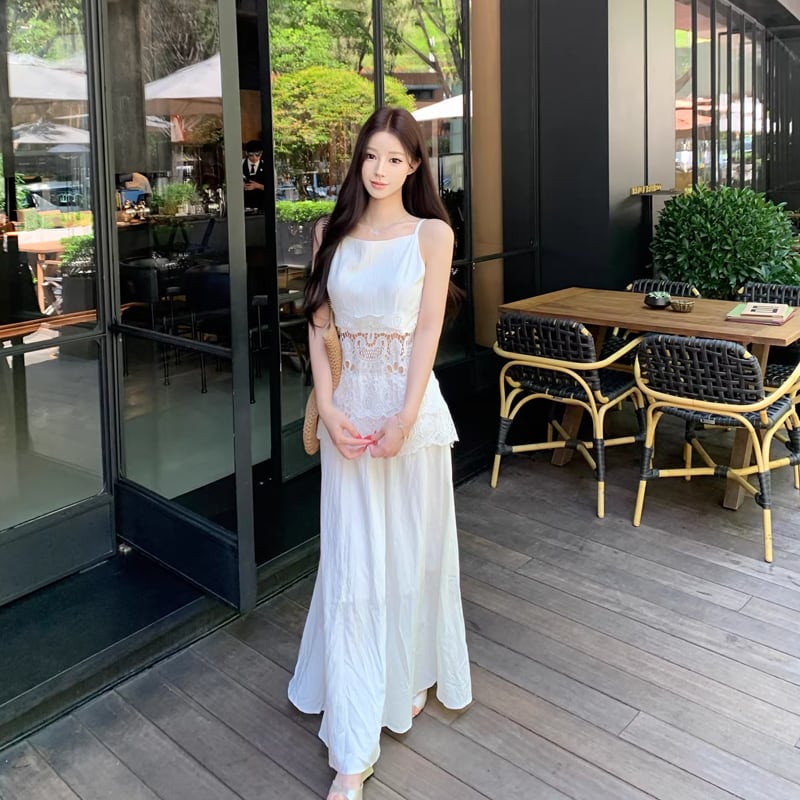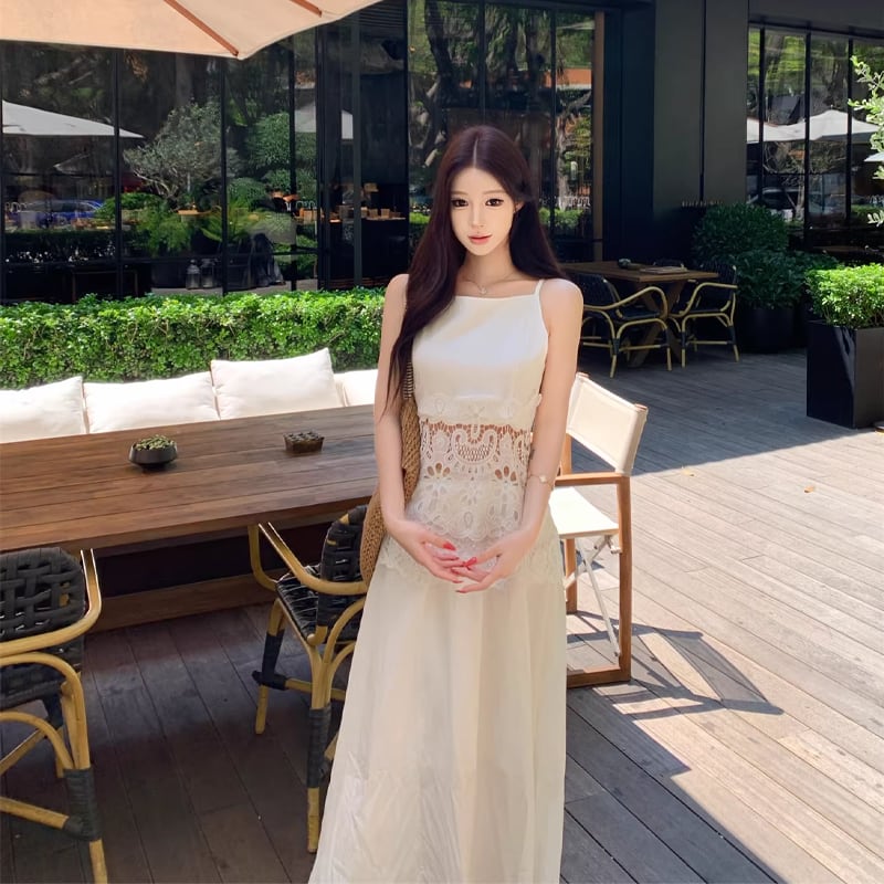 【dress】レースカットワークドッキングキャミワンピース Q8481