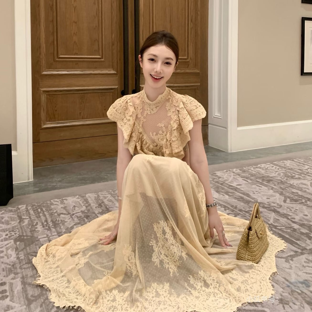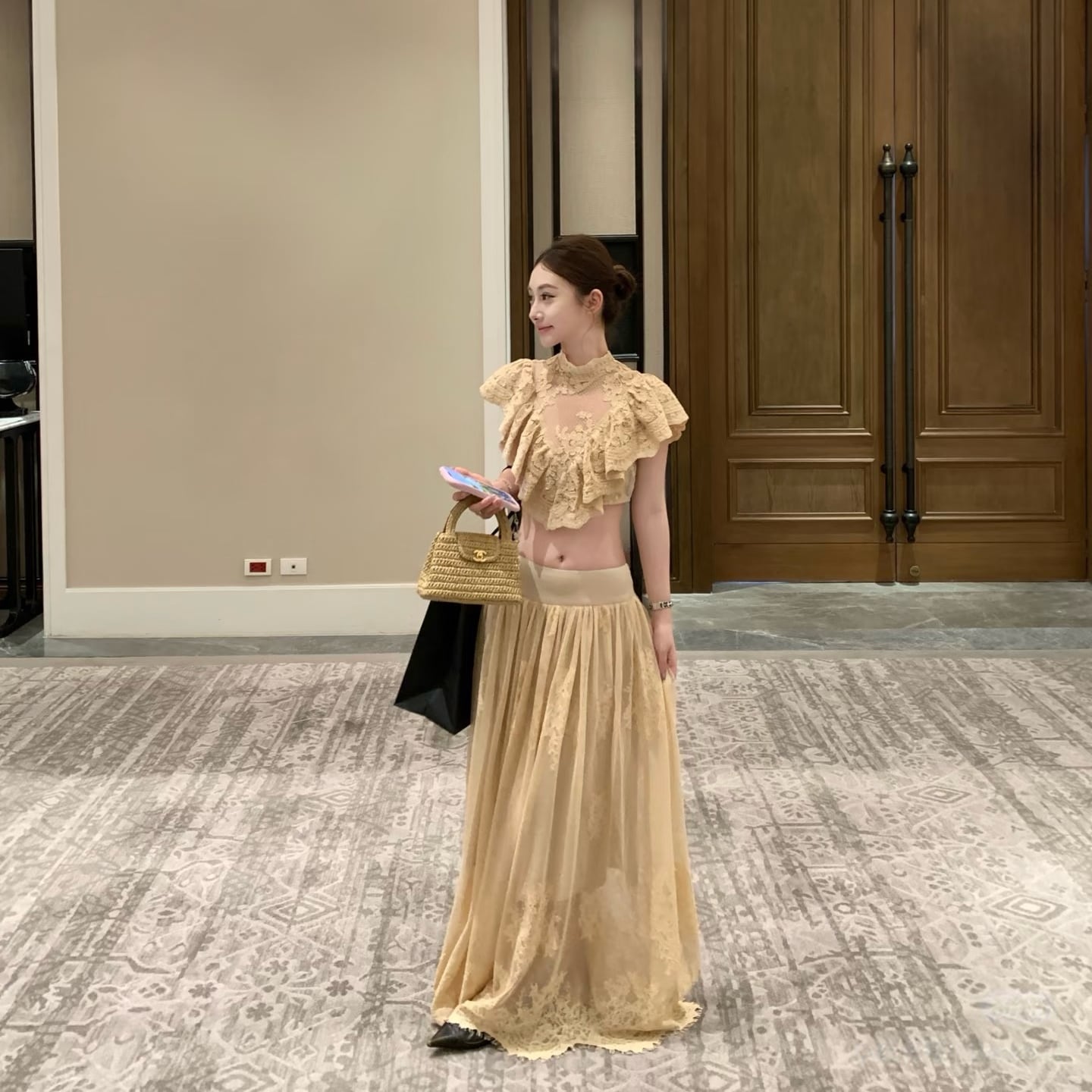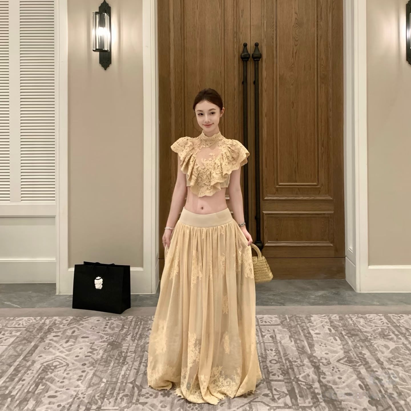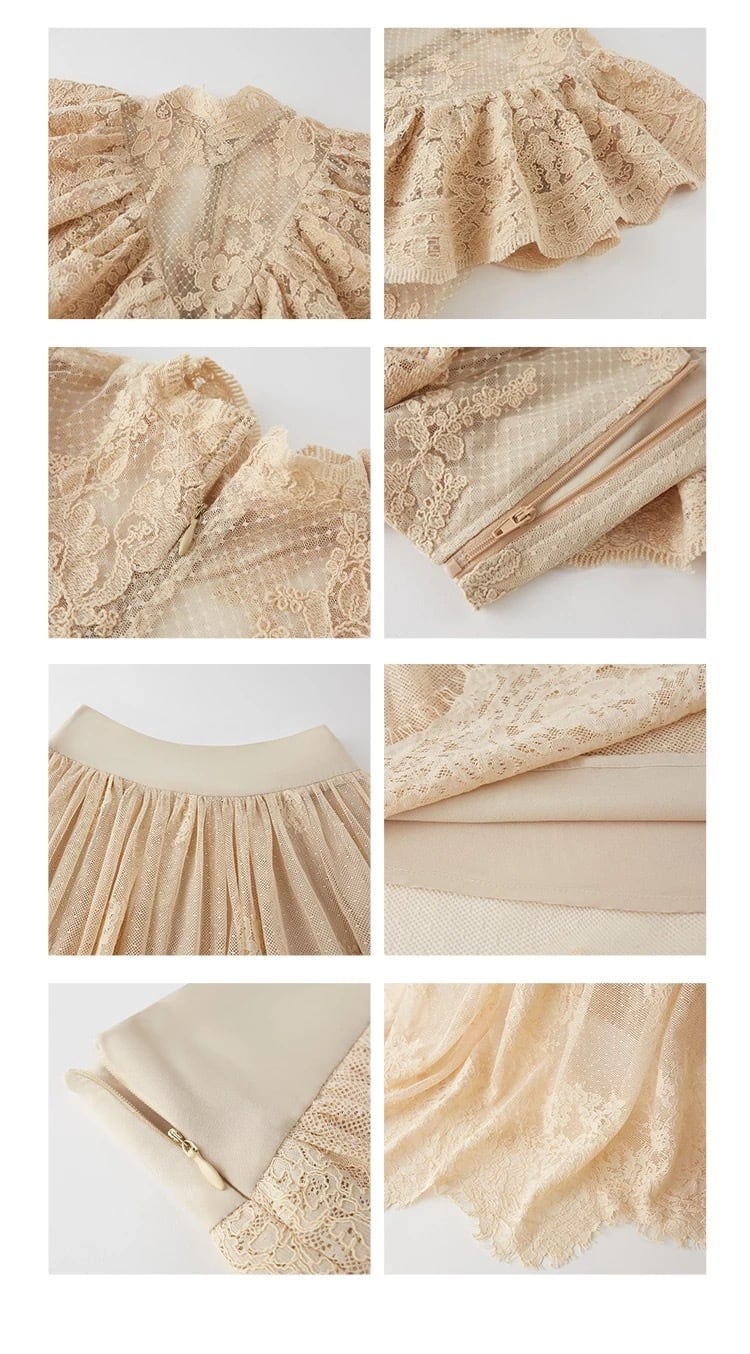 【set】フリルレースブラウス×ロングスカートセット N3576