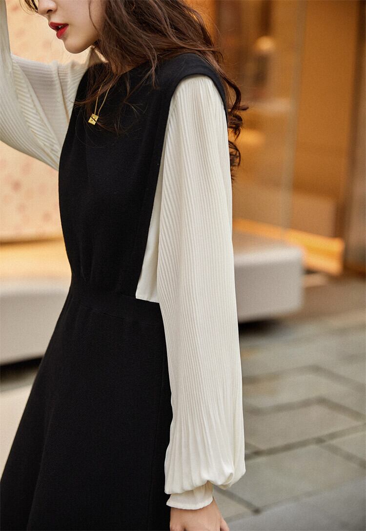 【dress】定番シンプルファッション切り替えデートワンピースランタンスリーブ M-2798