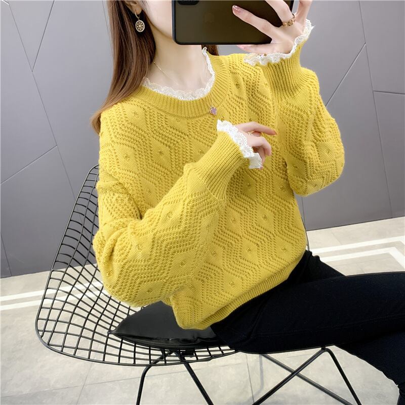 【tops】今季マストバイレース切り替えセーター6色スウィート透かし彫り着心地良い M-3600