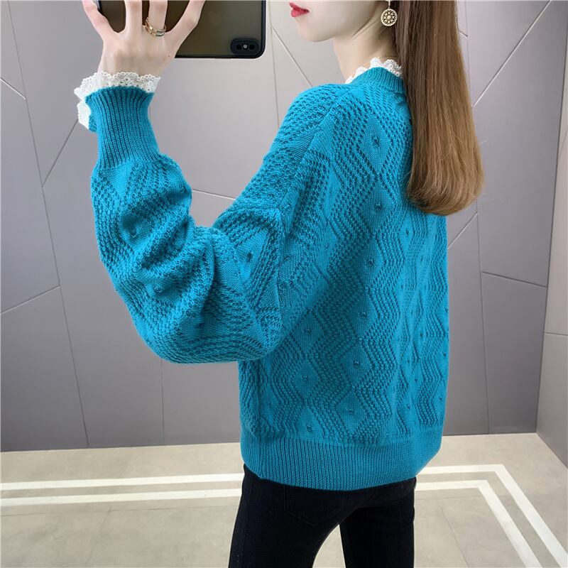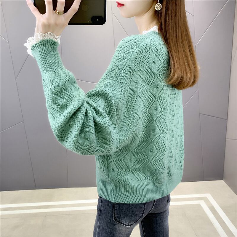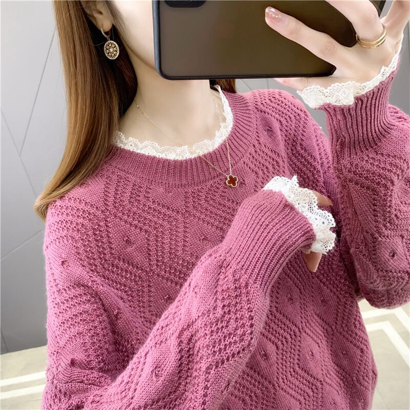 【tops】今季マストバイレース切り替えセーター6色スウィート透かし彫り着心地良い  M-3600