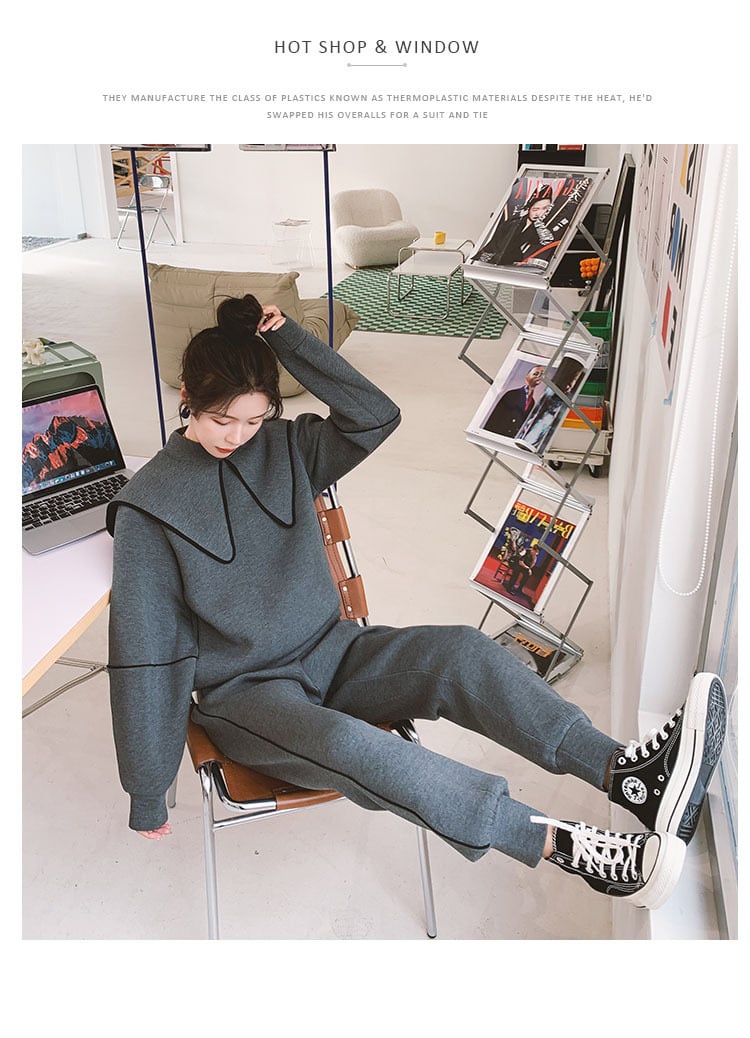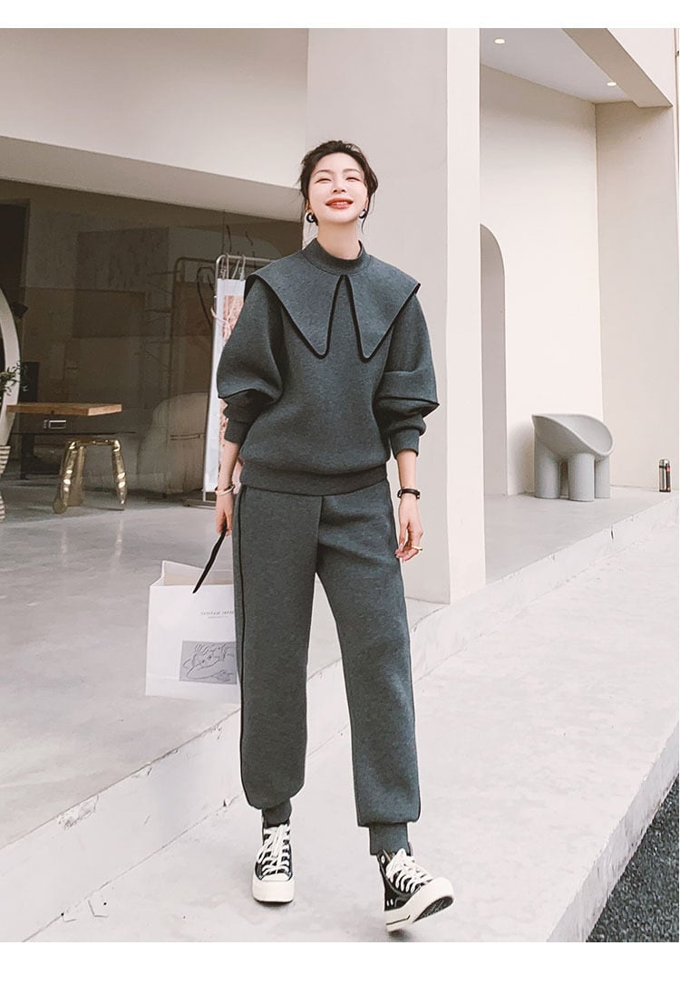 【set】ビッグカラートップス×カジュアルパンツセット N-0827