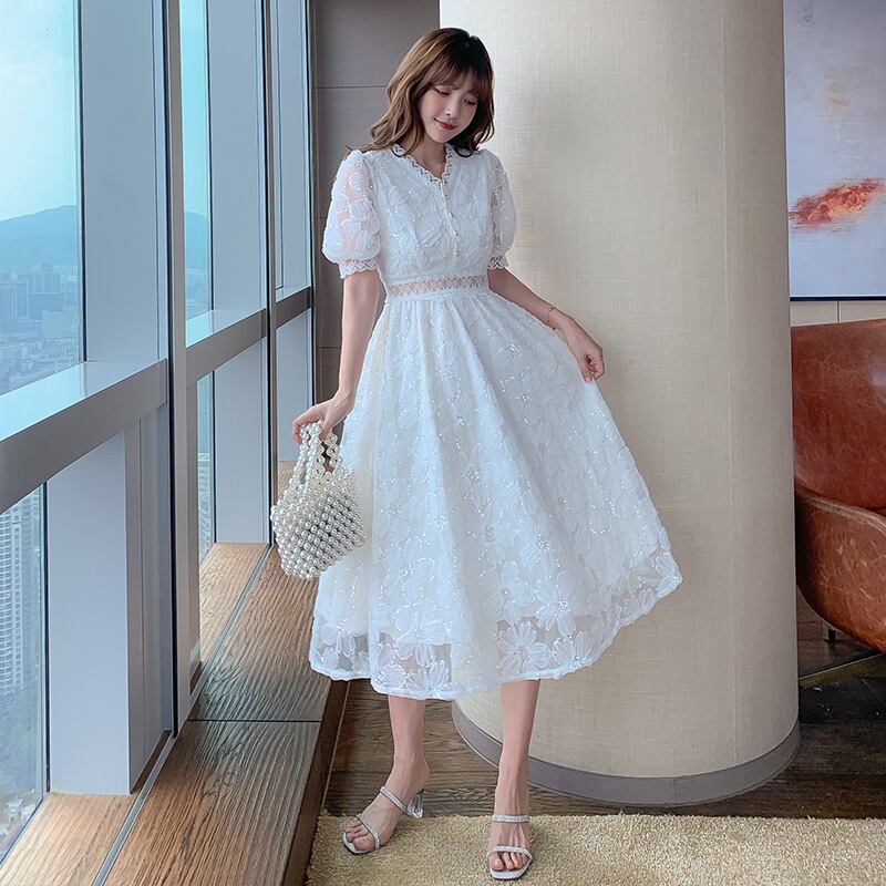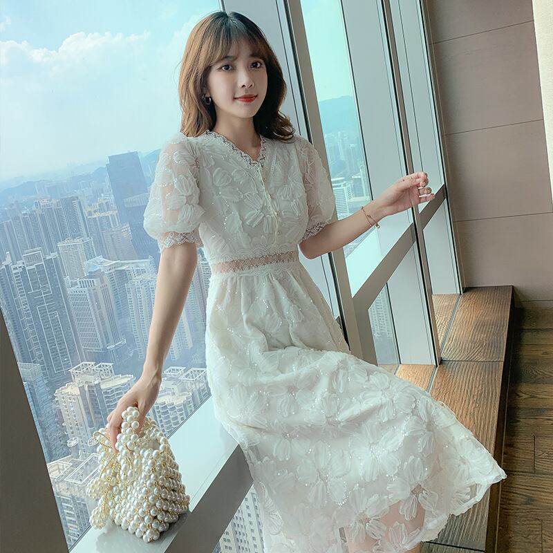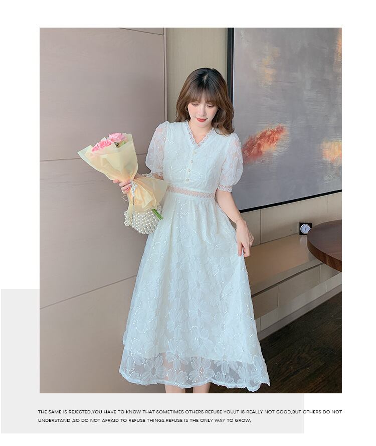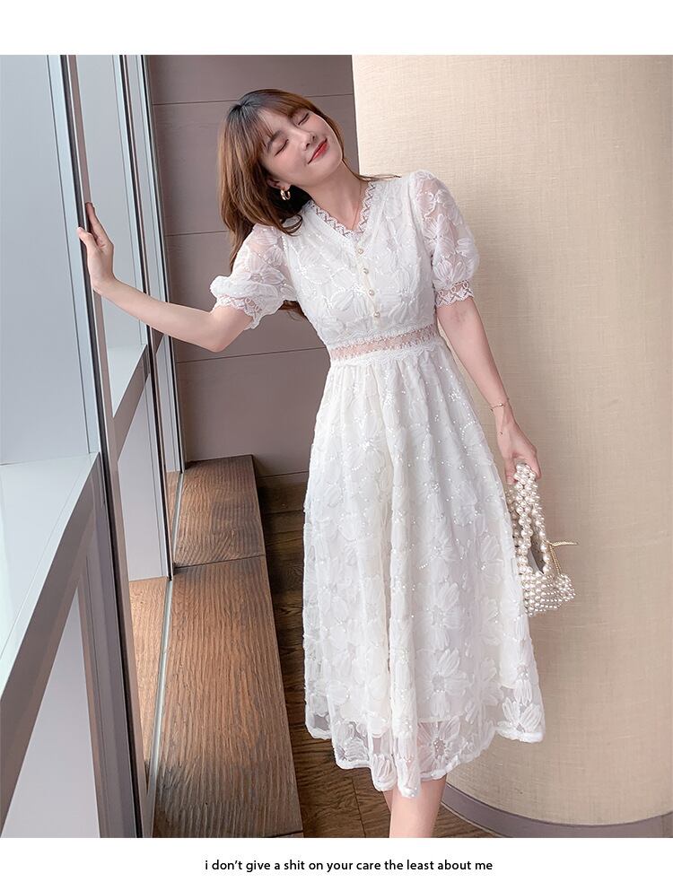 【dress】気質溢れる エレガントVネックレース切り替えデートワンピース着瘦せ M-6146