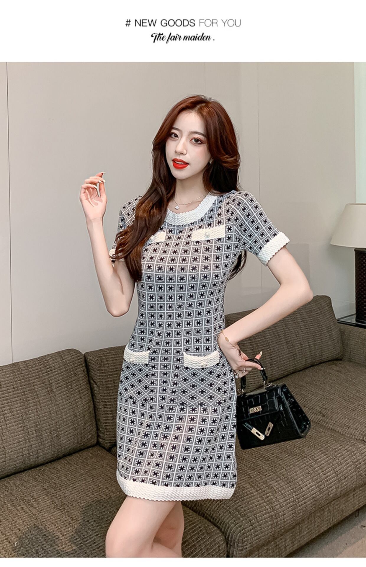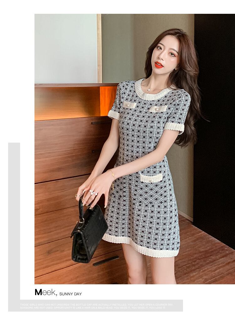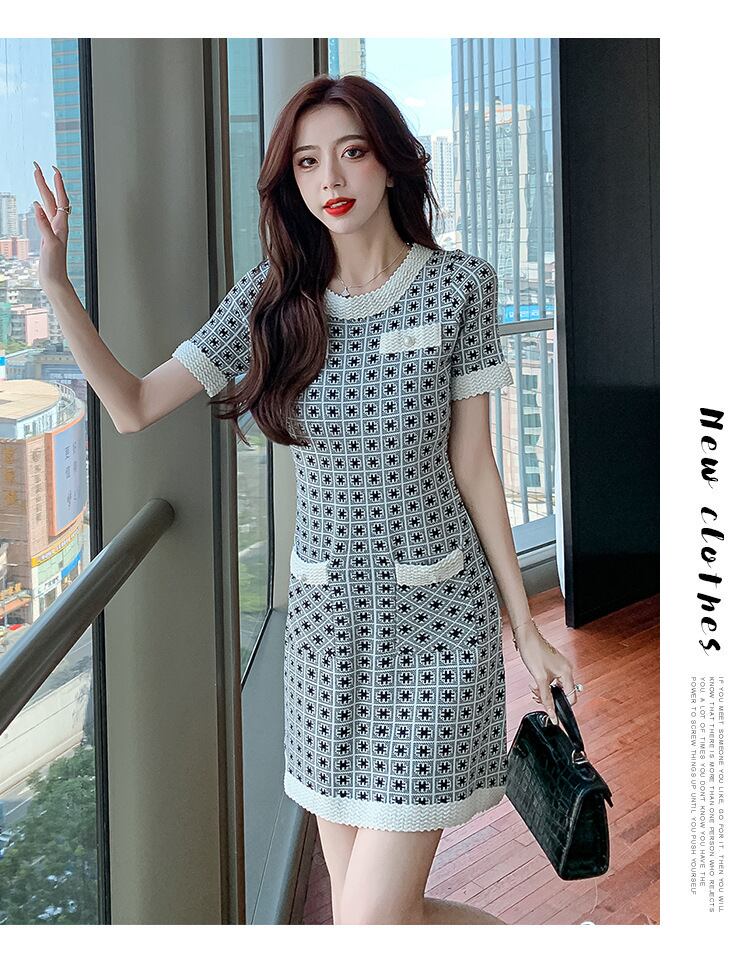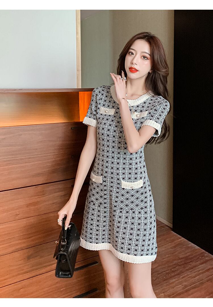 【dress】大人らしい気質満点エレガント半袖薄手ニットワンピース2色 M-6516