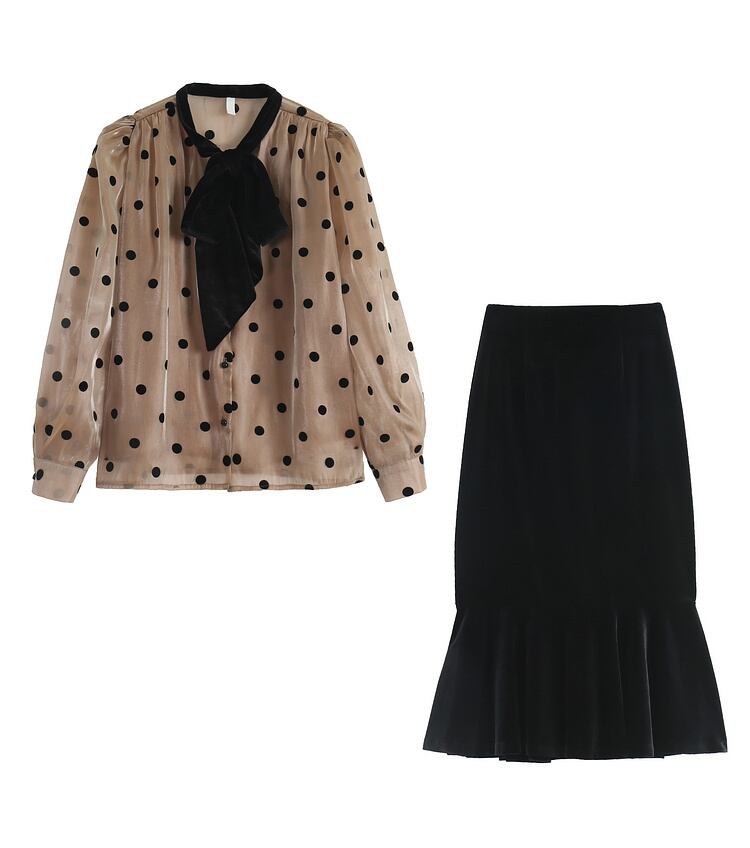 【set】高級感溢れる♥おしゃれ度高まる2点セットドット柄トップス+スカート M-11132