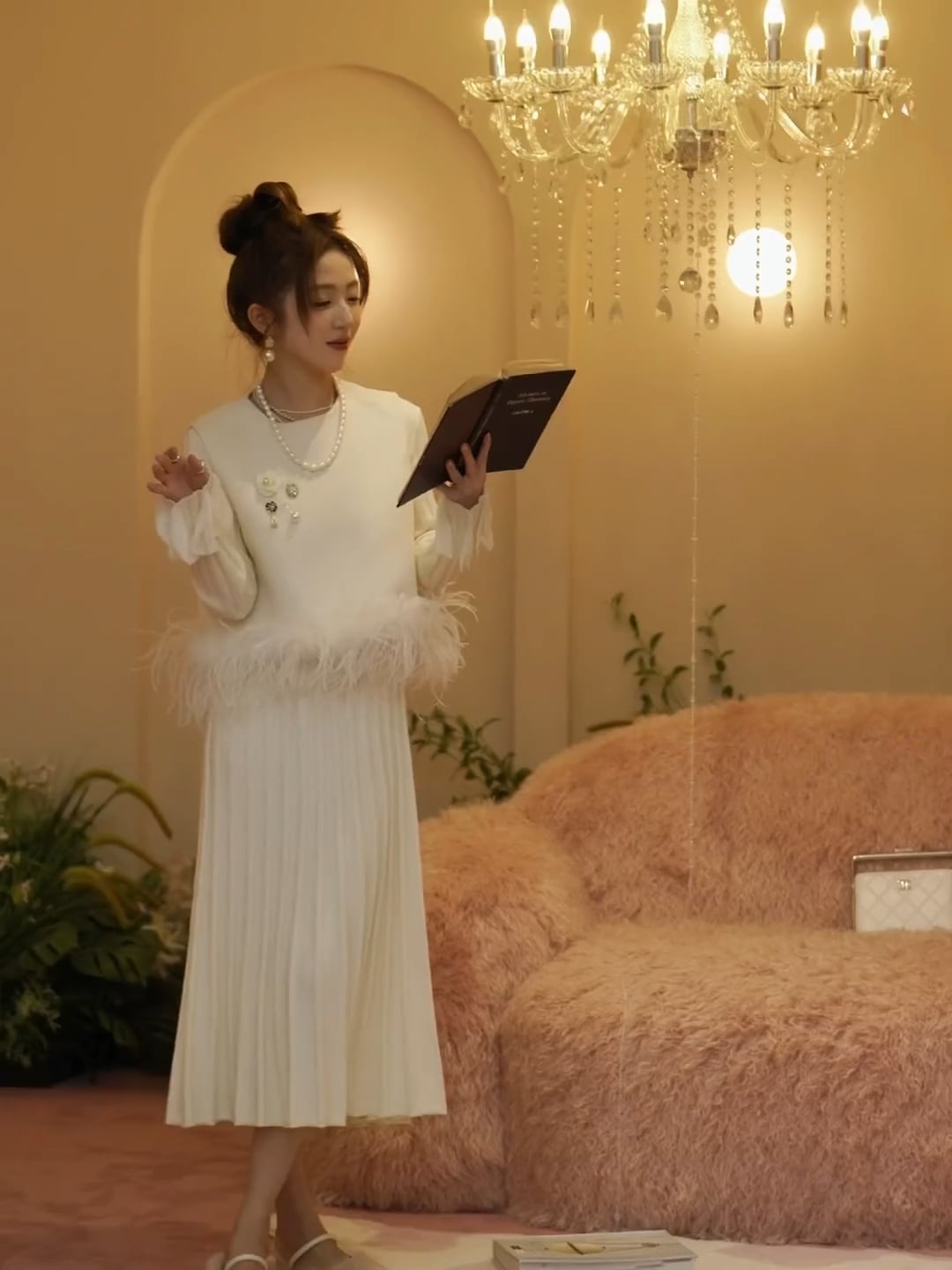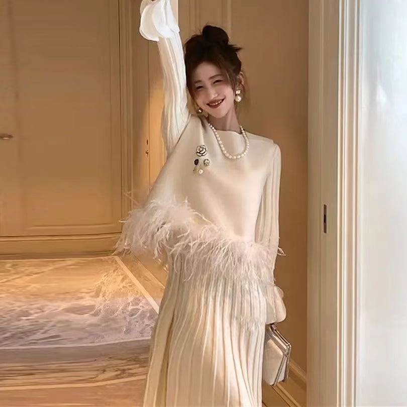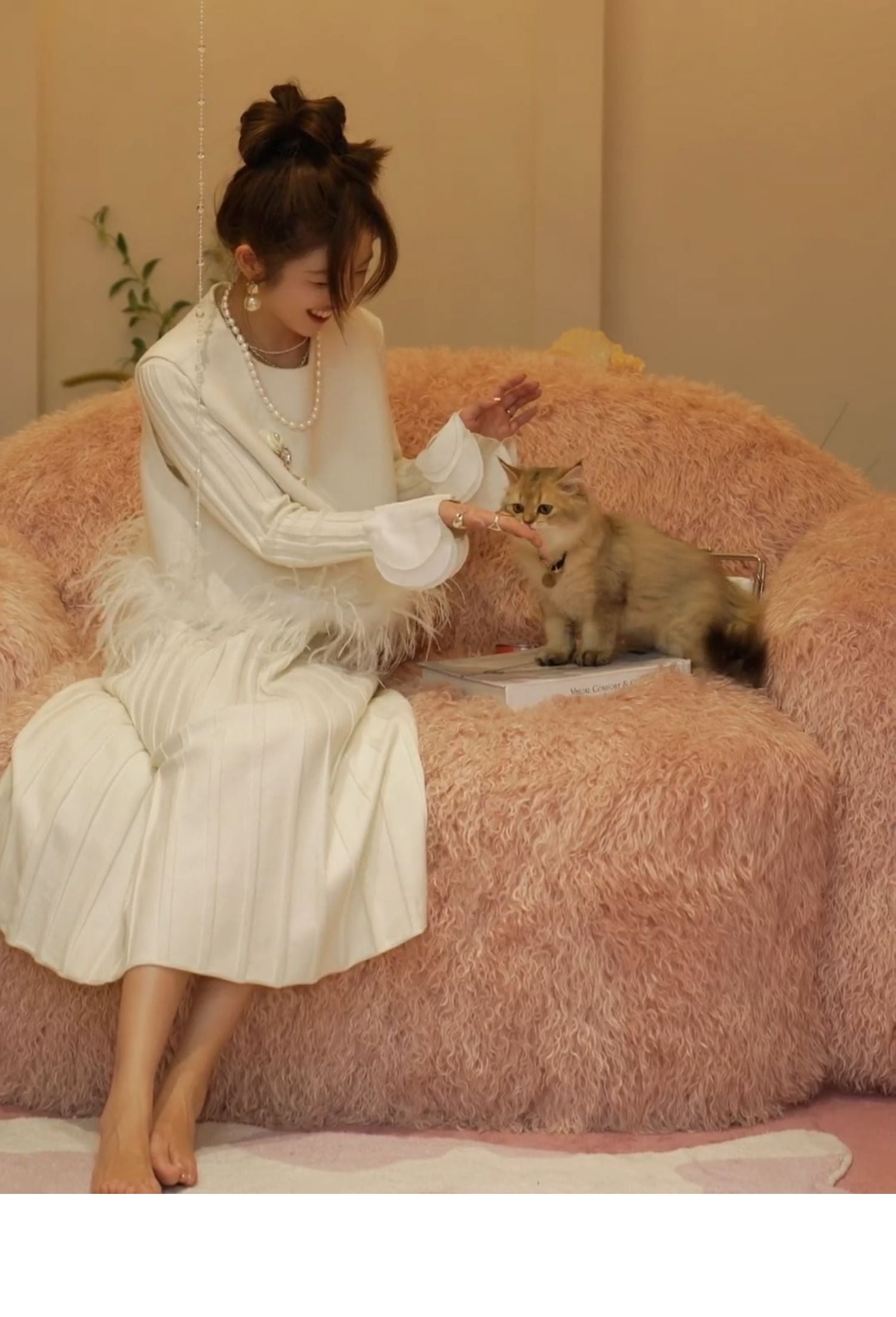 【set】ポイントフェザーベスト×ニットワンピースセット N2046