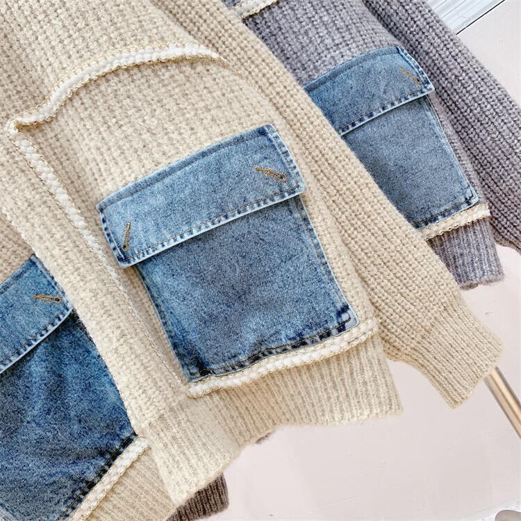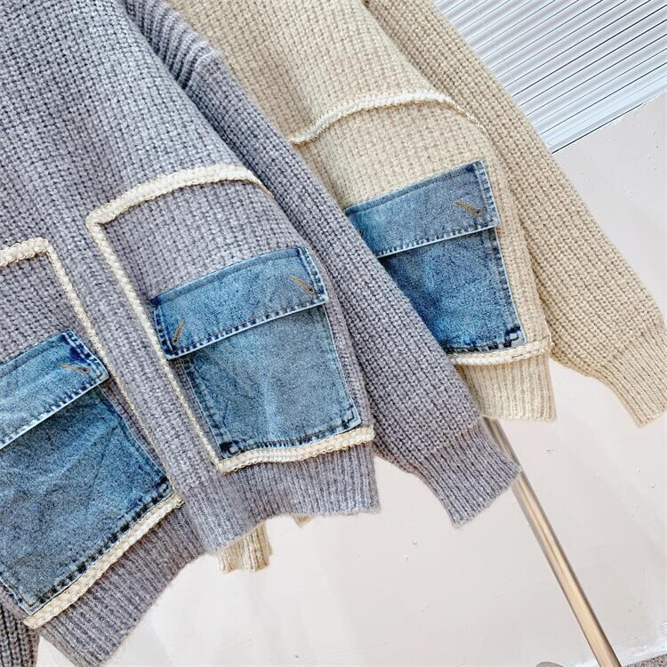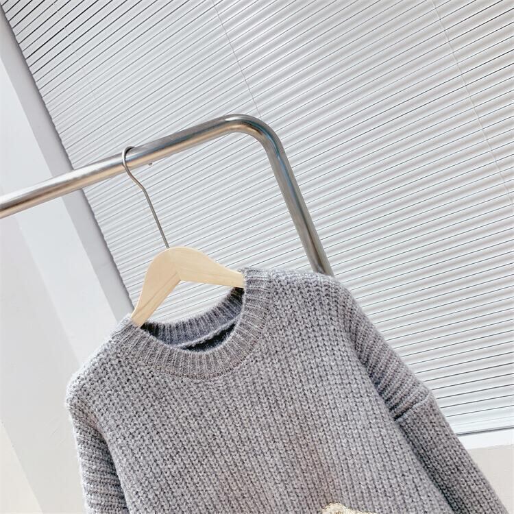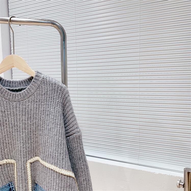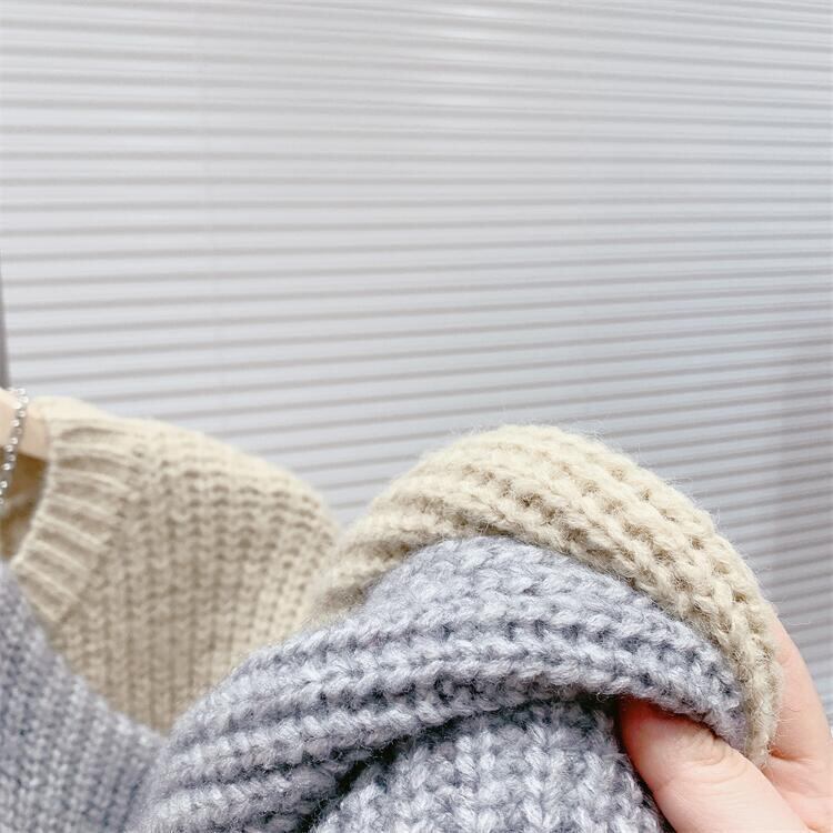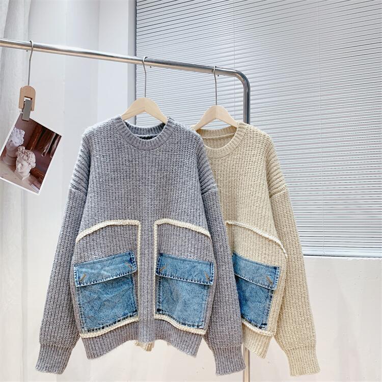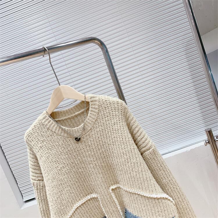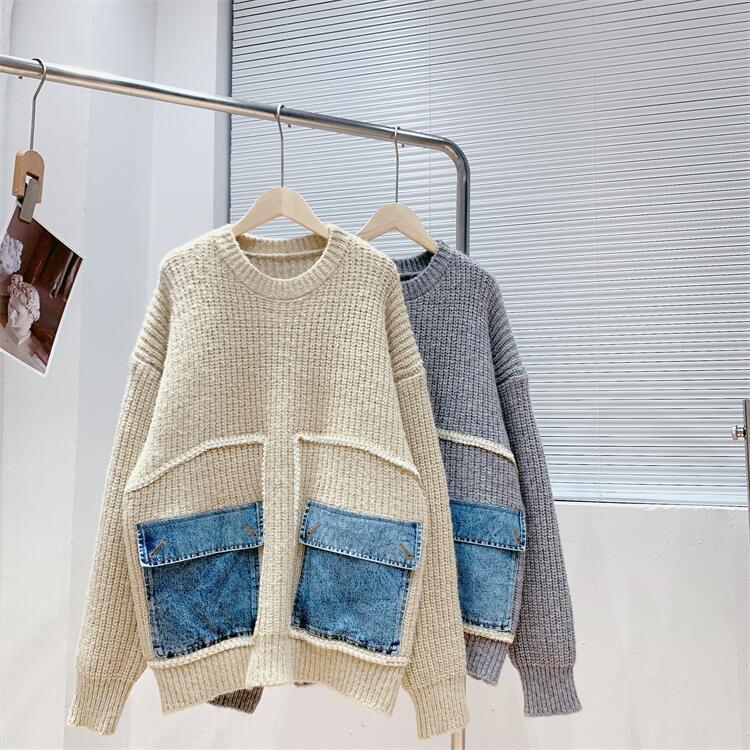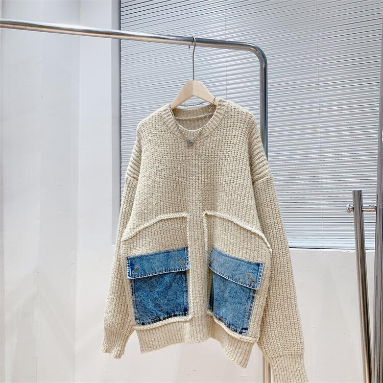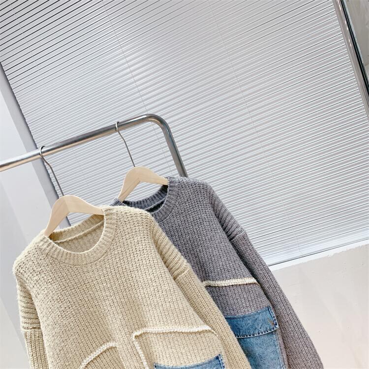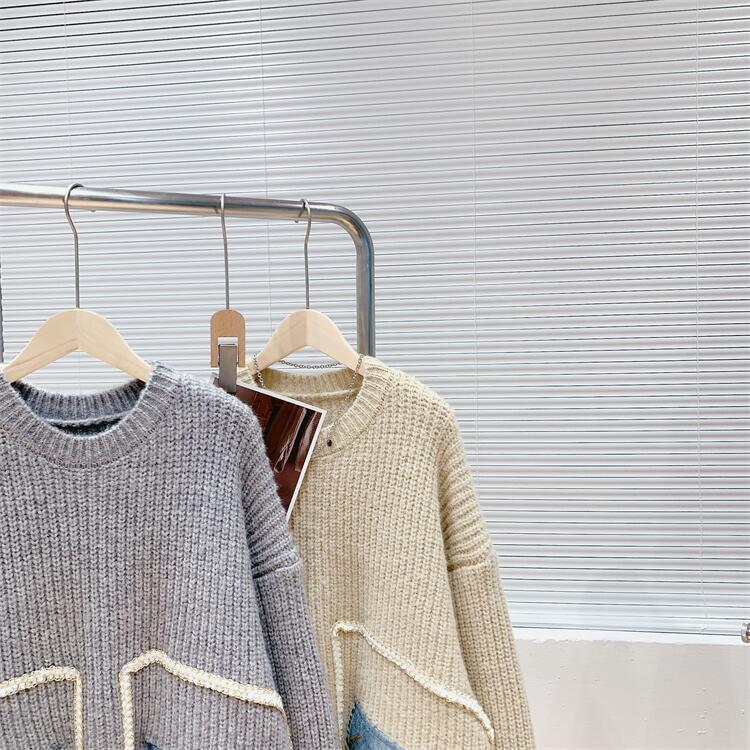 【tops】着回し力抜群ラウンドネック切り替えゆったりニットセーター M-12523
