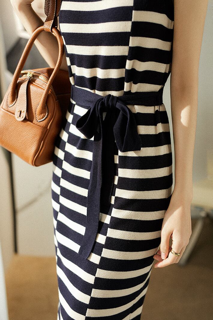 【dress】魅力全開ボーダーノースリーブニットワンピース N-1502