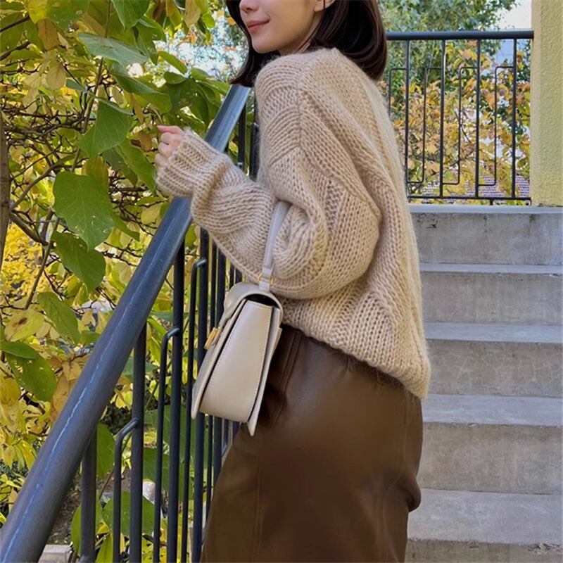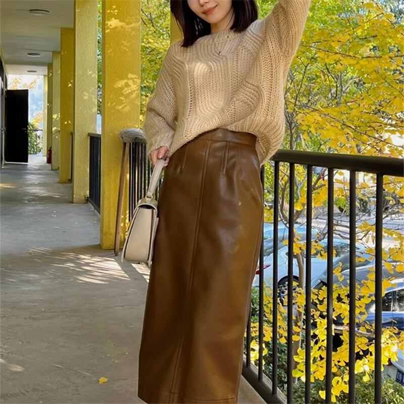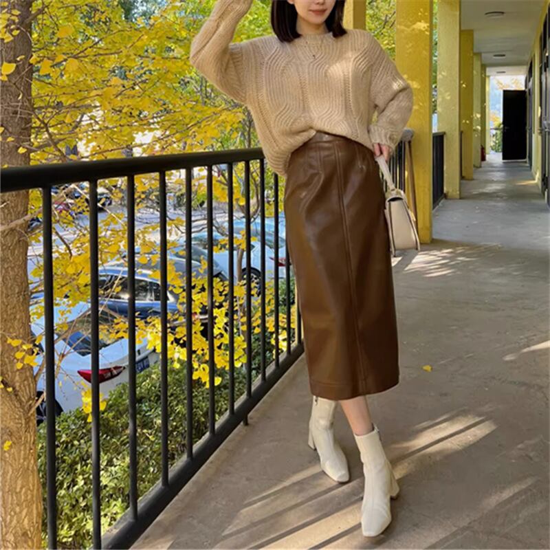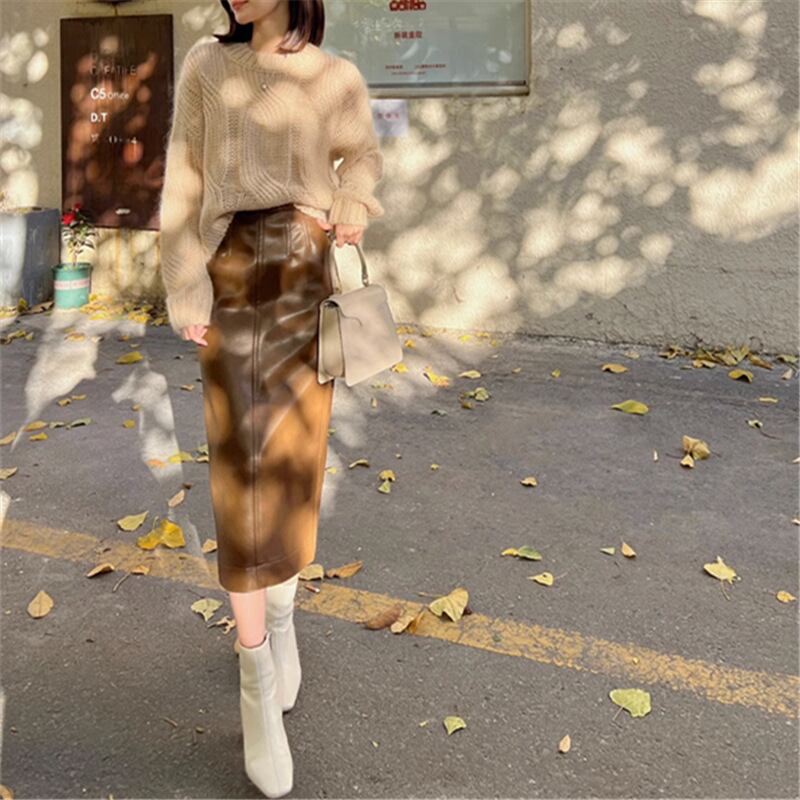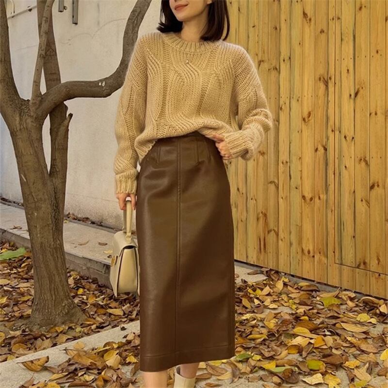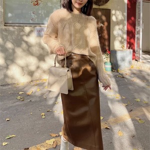 【set】ニットプルオーバー×レザースカートセット M17781