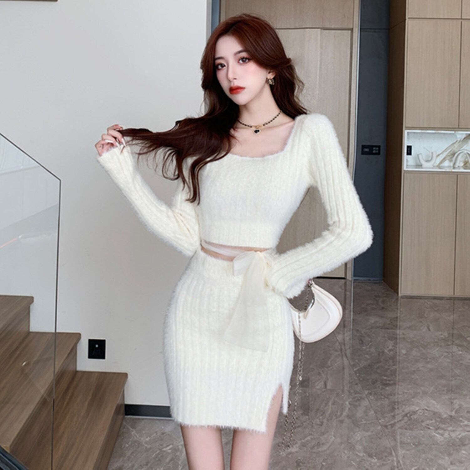 【set】シャギーニットセーター×ミニスカートセット M17957