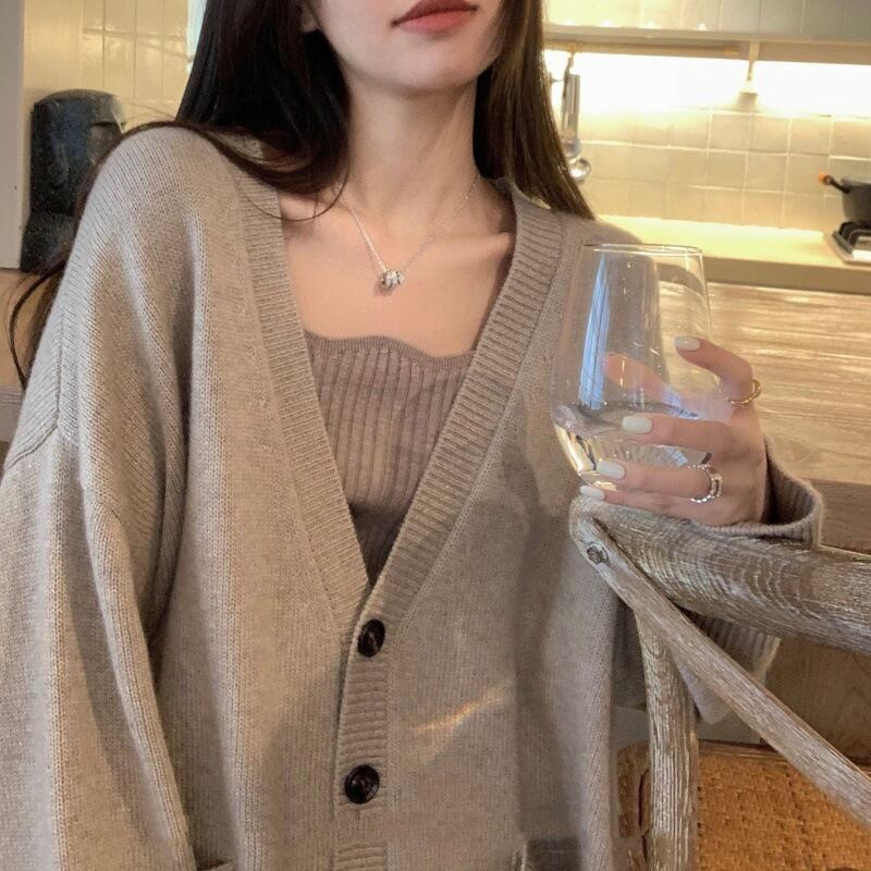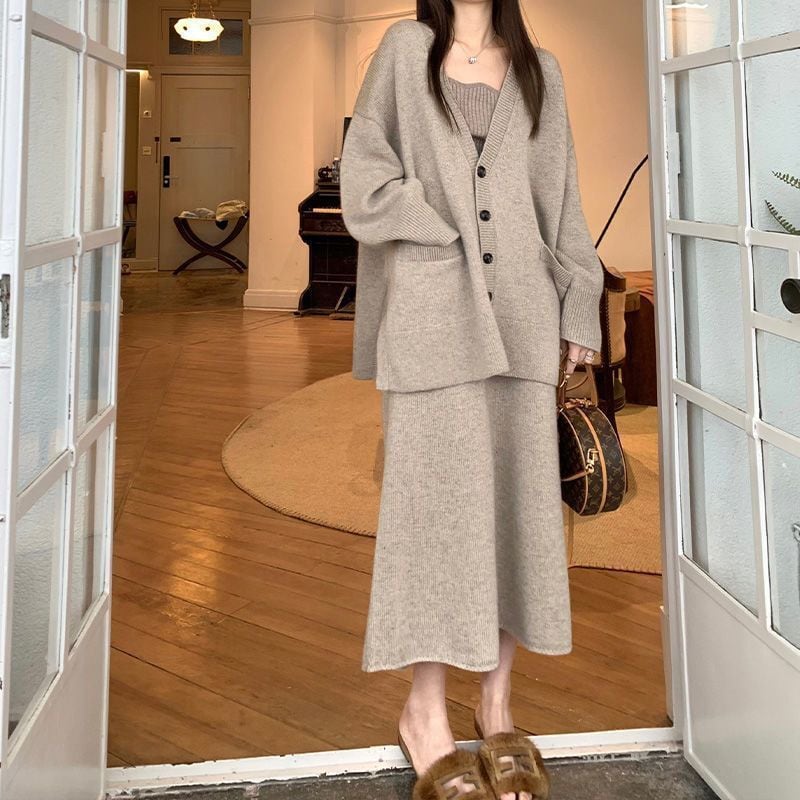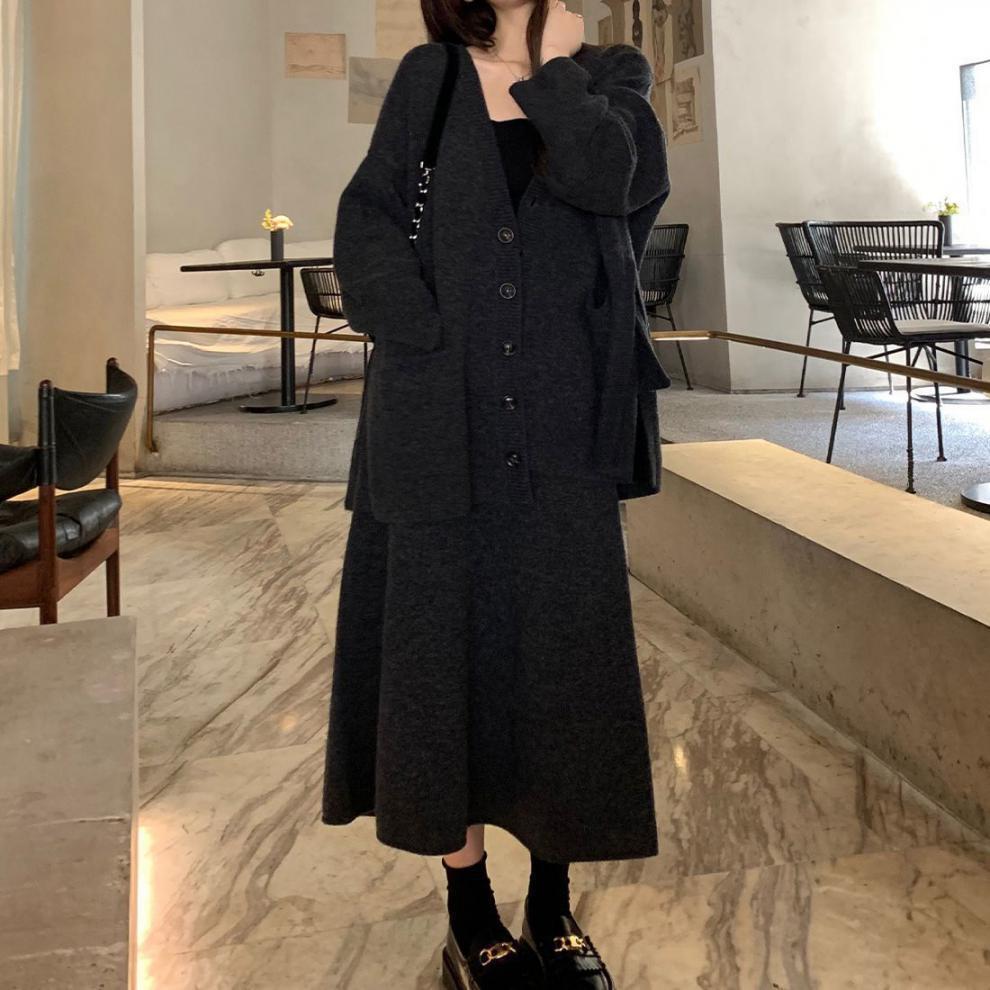【set】Vネックニットカーデ×スカートセット M18400