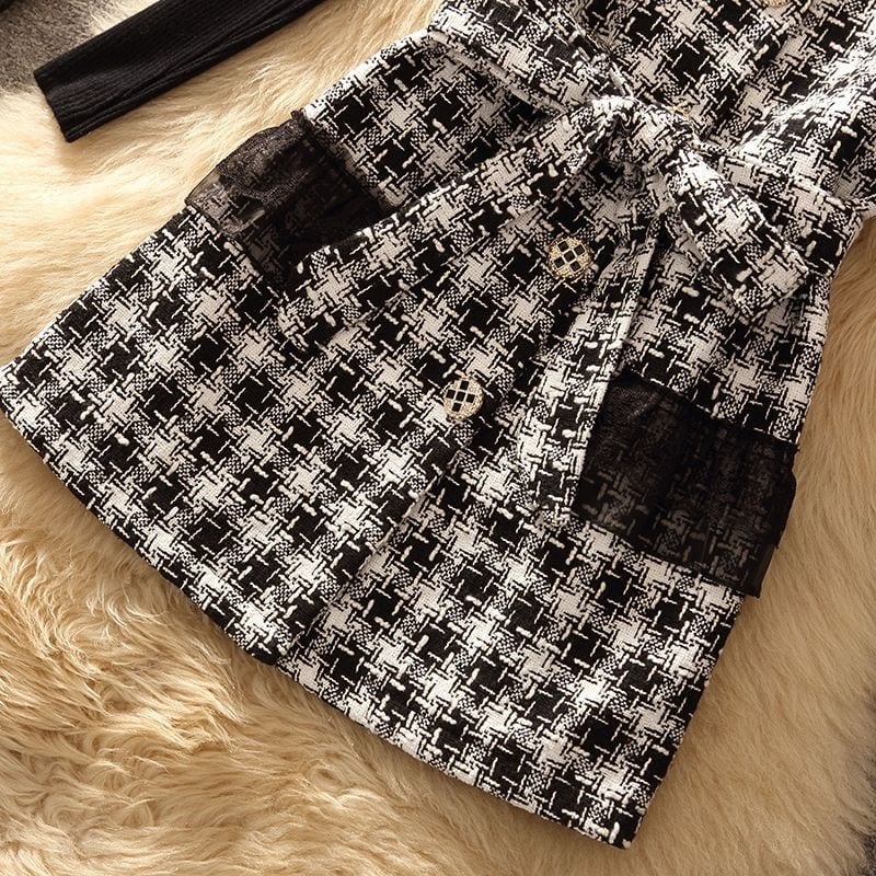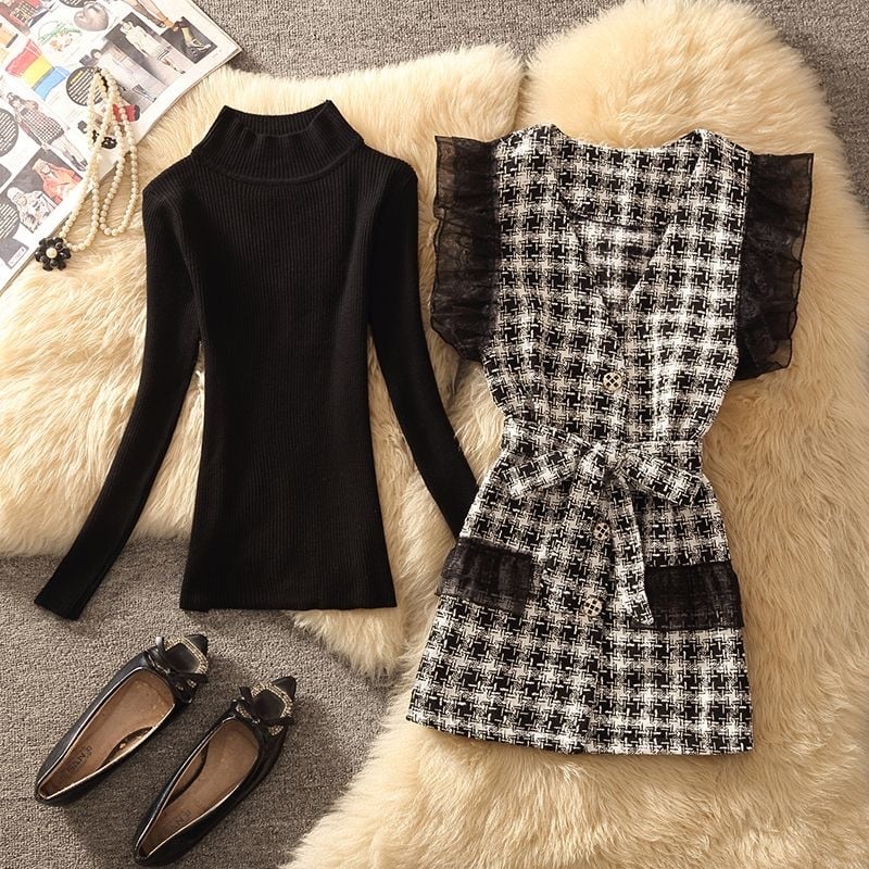 【set】ツイードギャザーフリルベスト×ニットセーターセット N2104