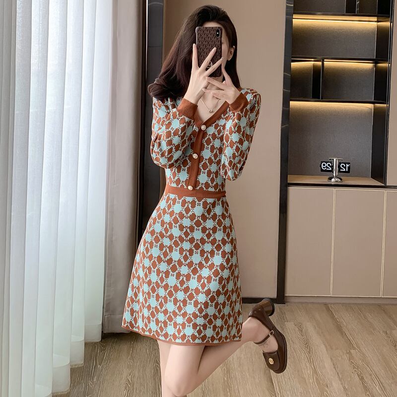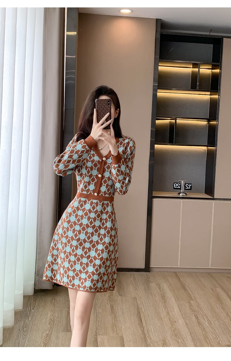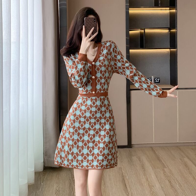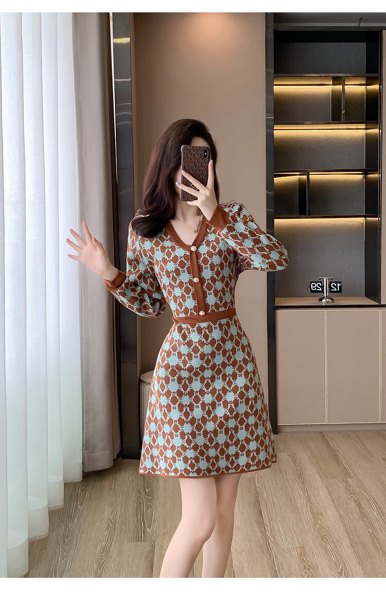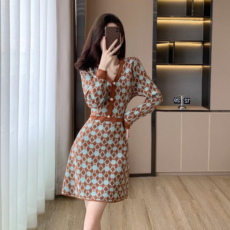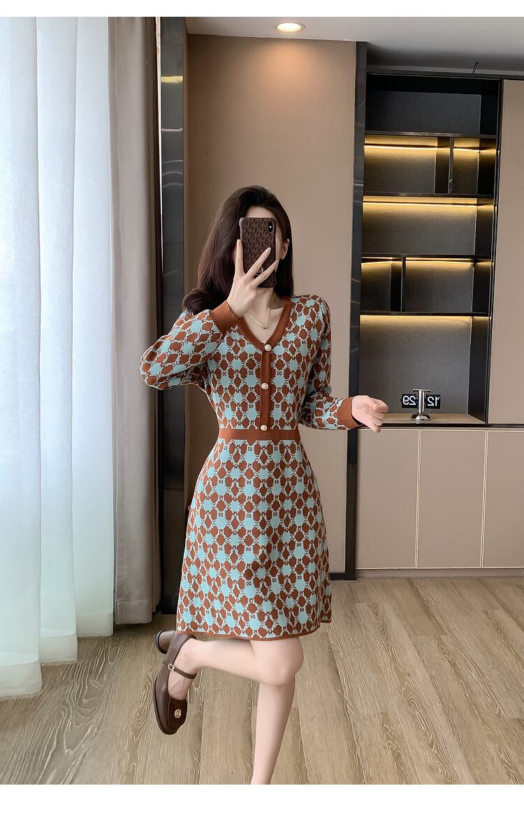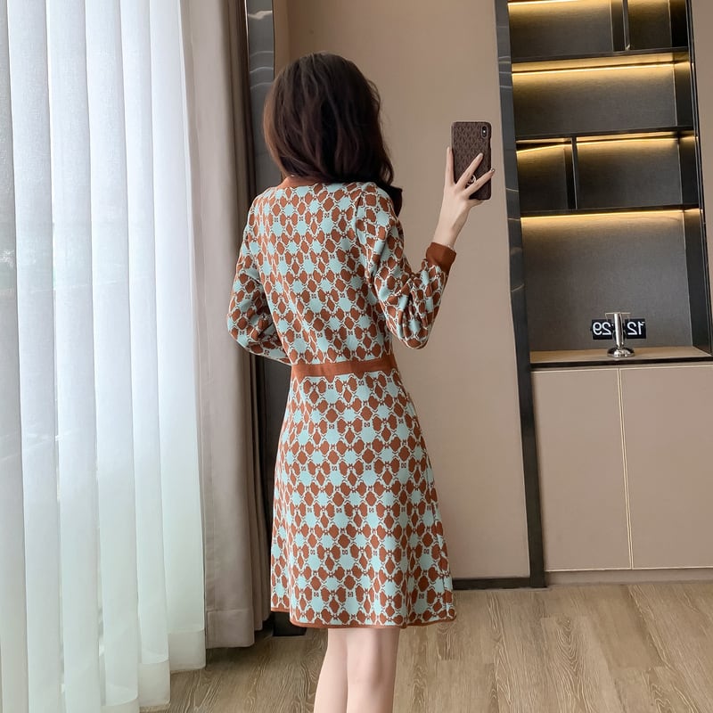 【dress】Vネックニットワンピース M18606