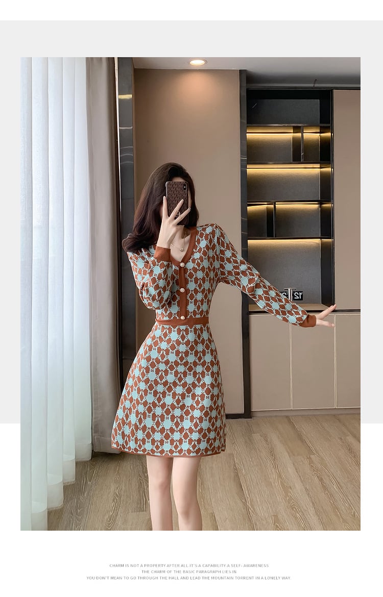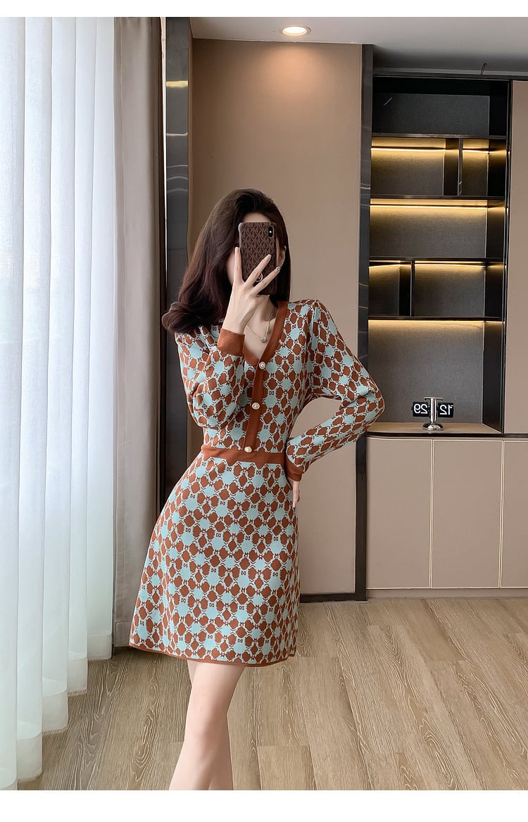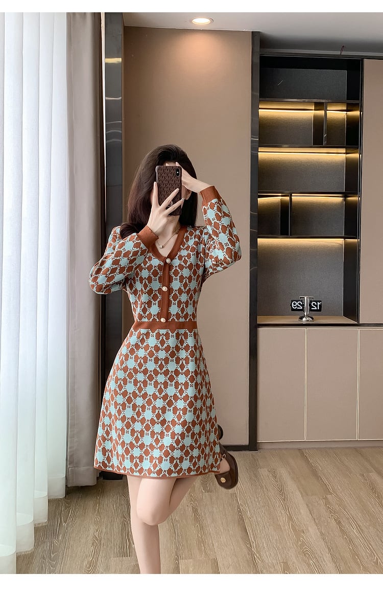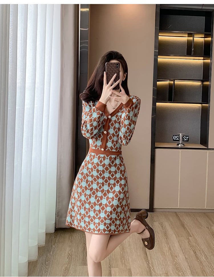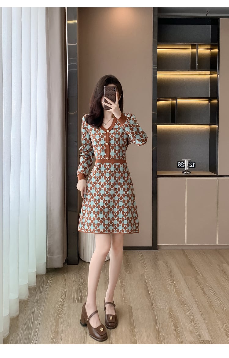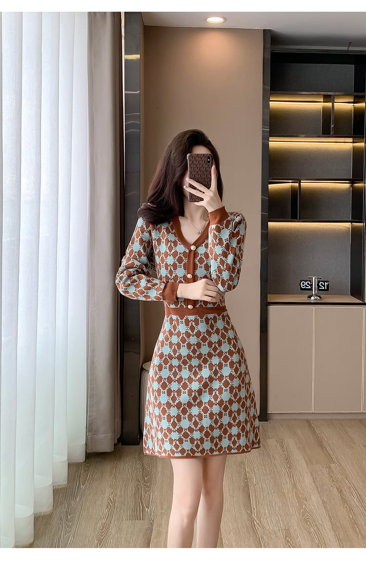 【dress】Vネックニットワンピース M18606