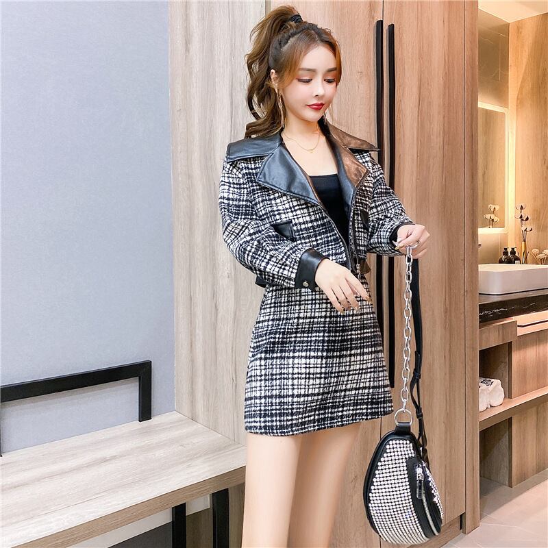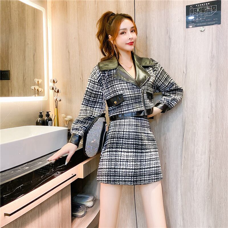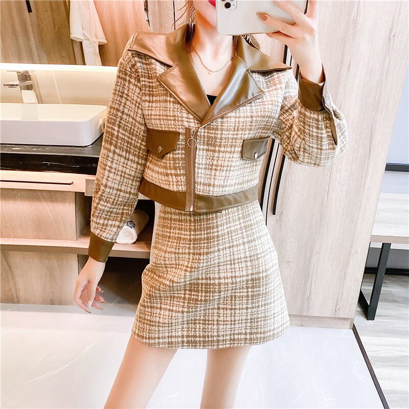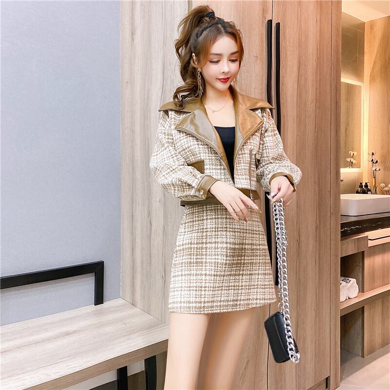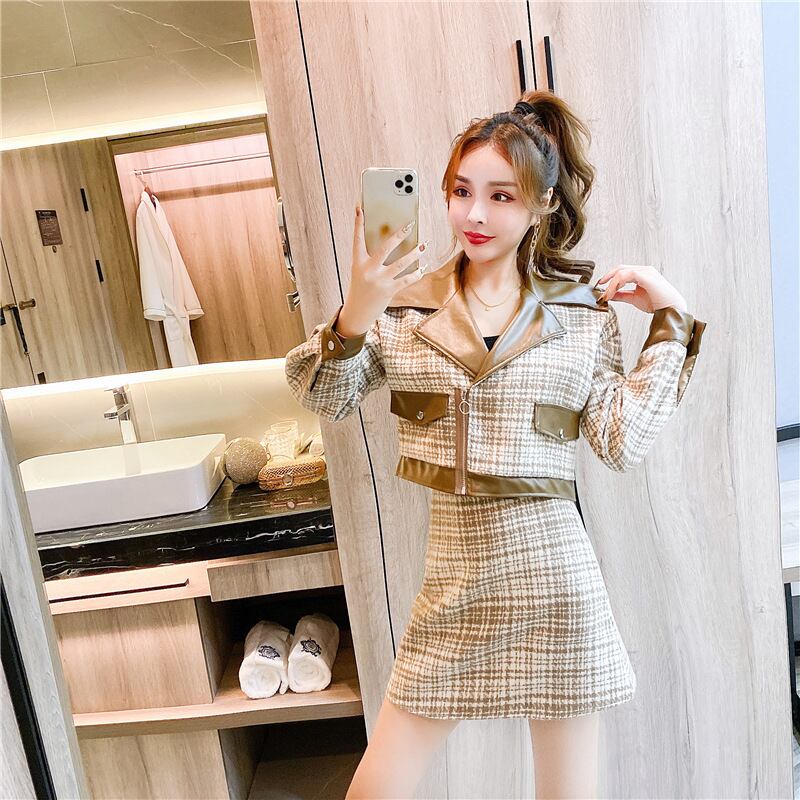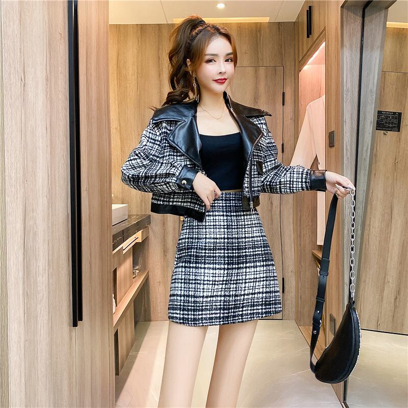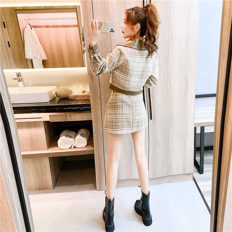 【set】チェック柄ドッキングアウター ×スカートセット M18610