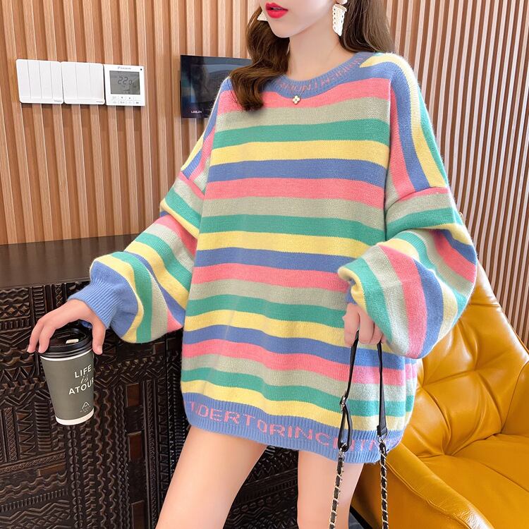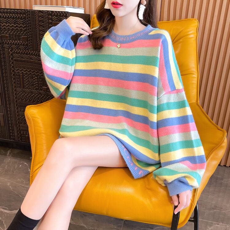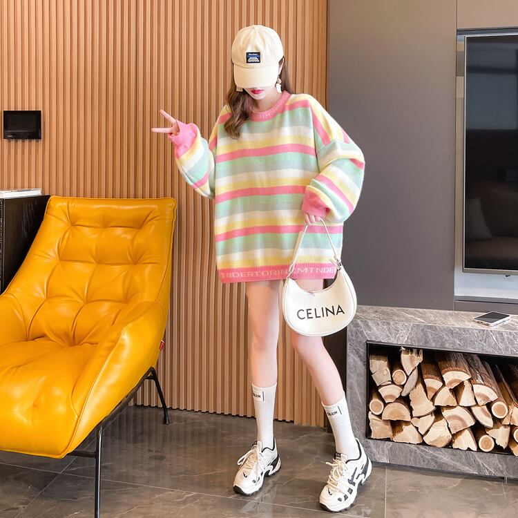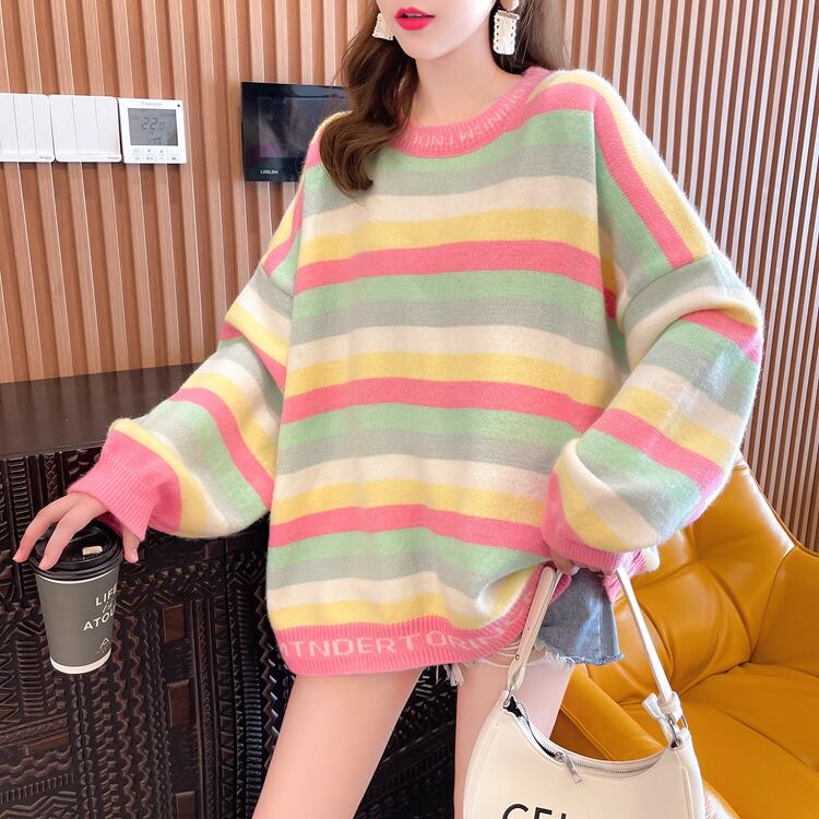 【tops】ボーダー柄ニットセーター M18631