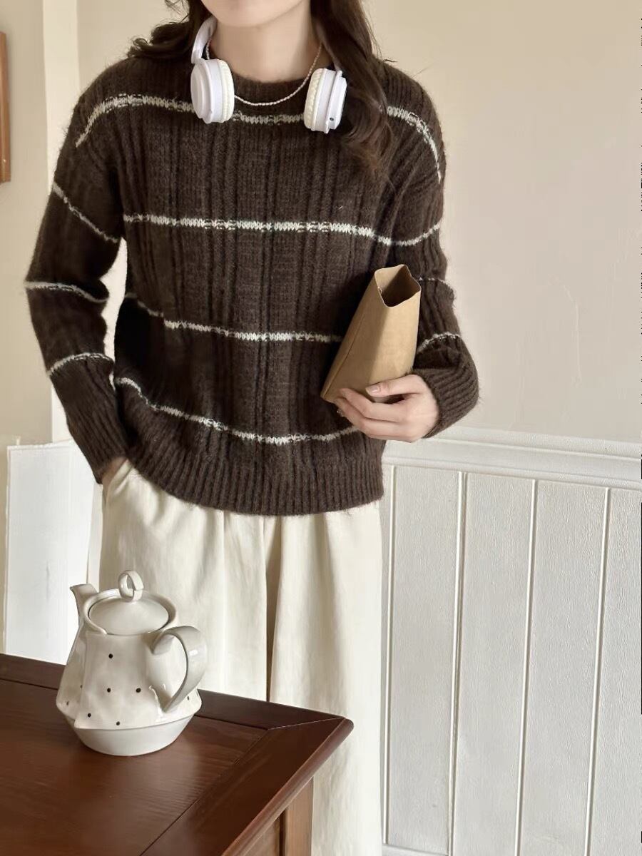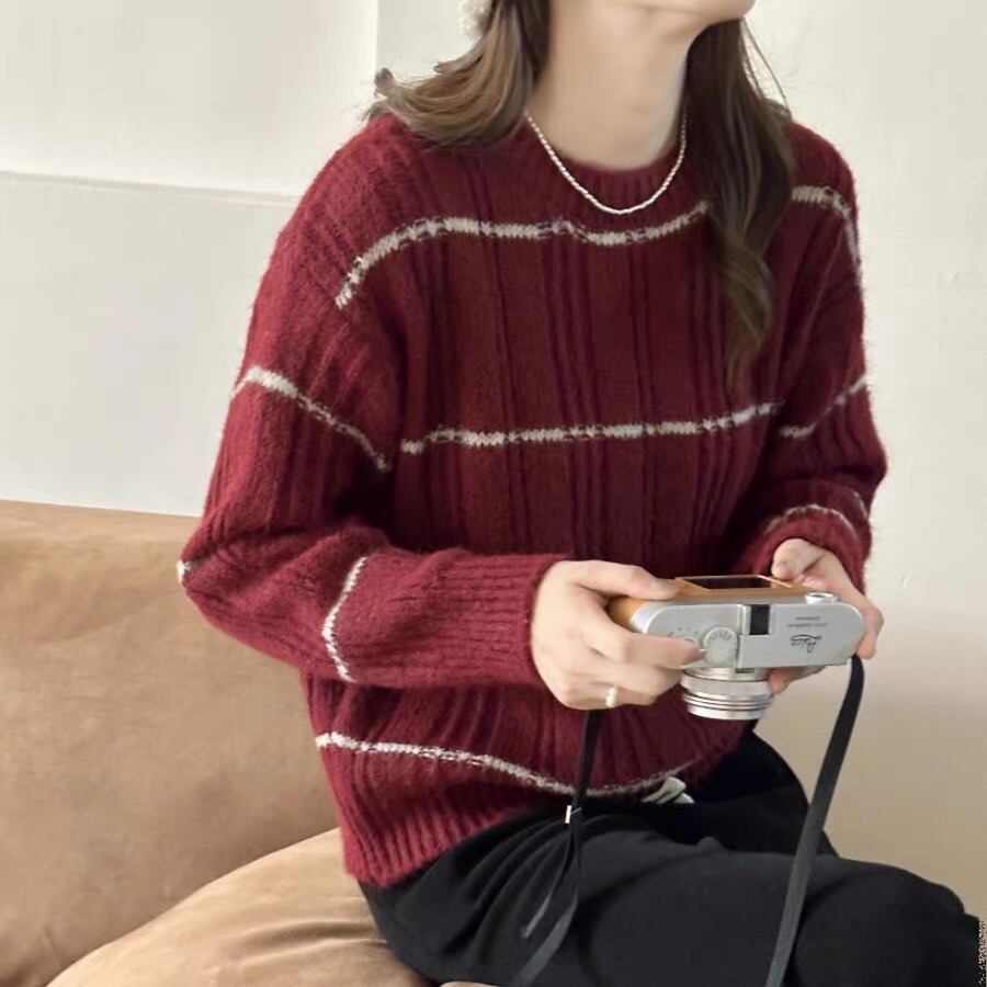 【tops】ボーダー柄ニットセーター M18714