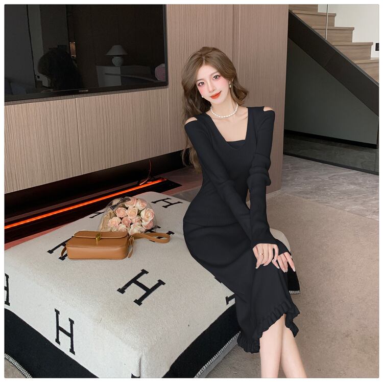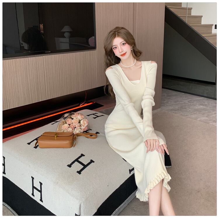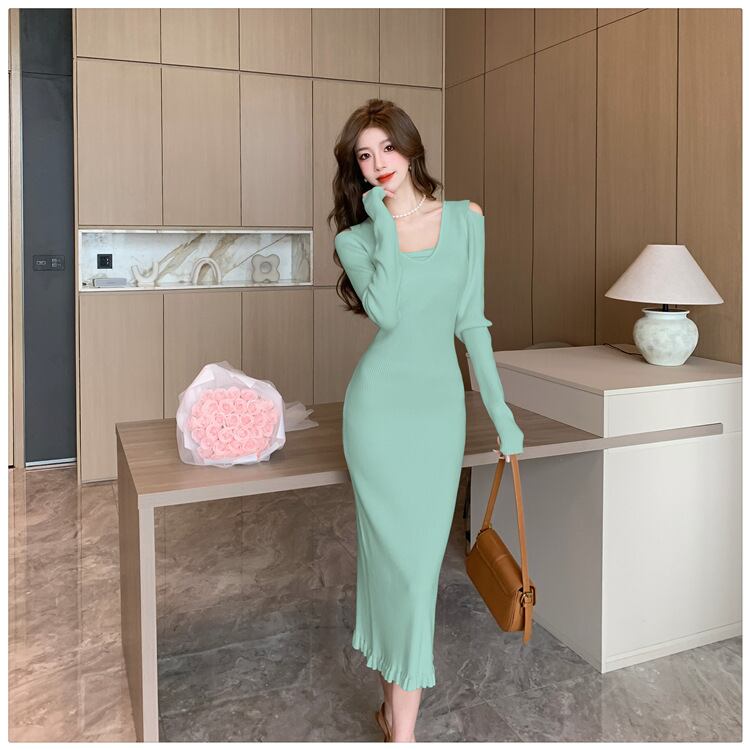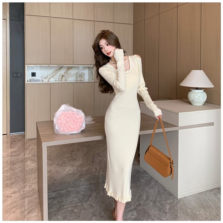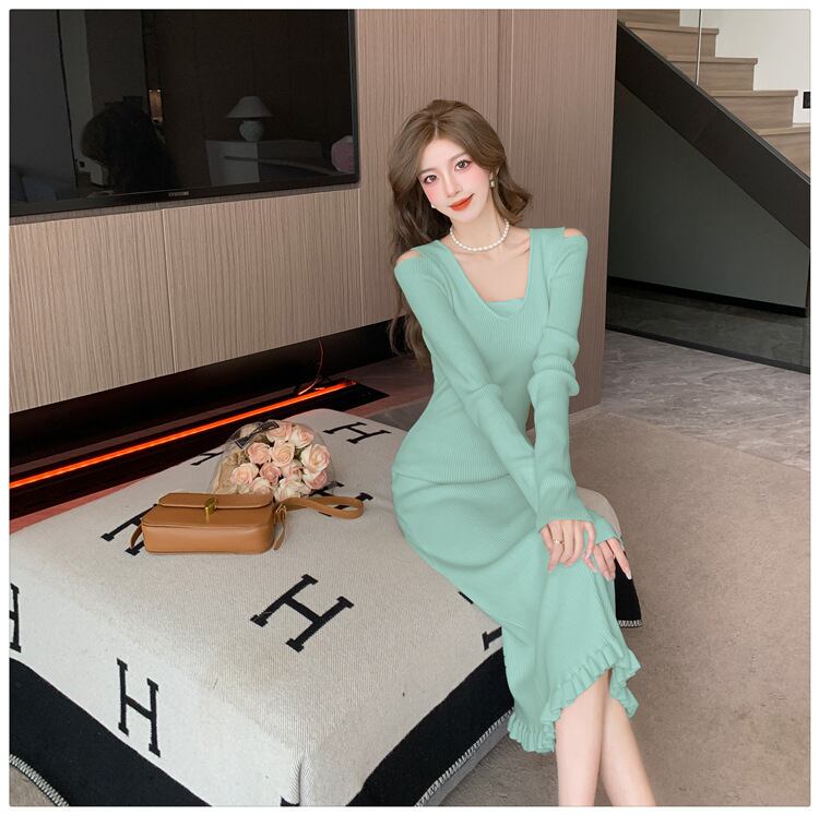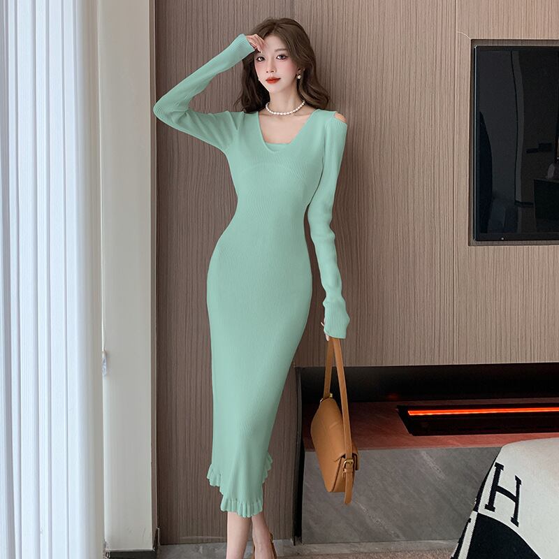 【dress】オフショルダーニットワンピース M18813