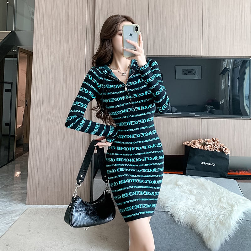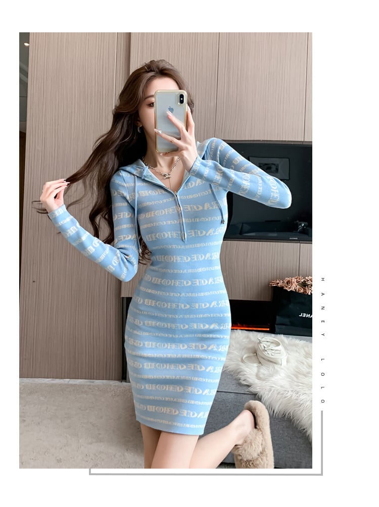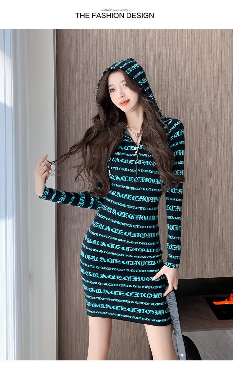 【dress】フード付きニットワンピース M18862