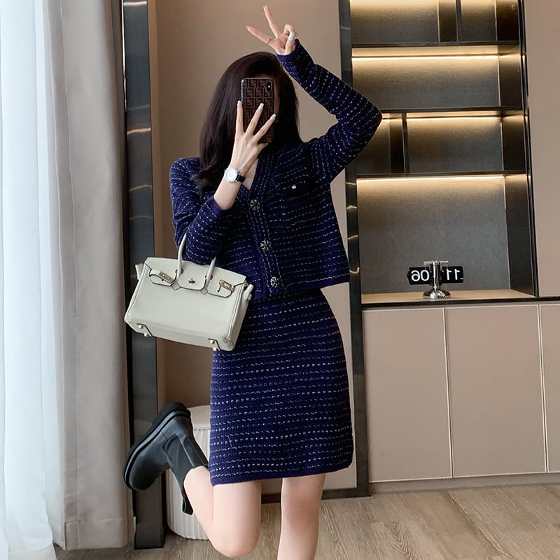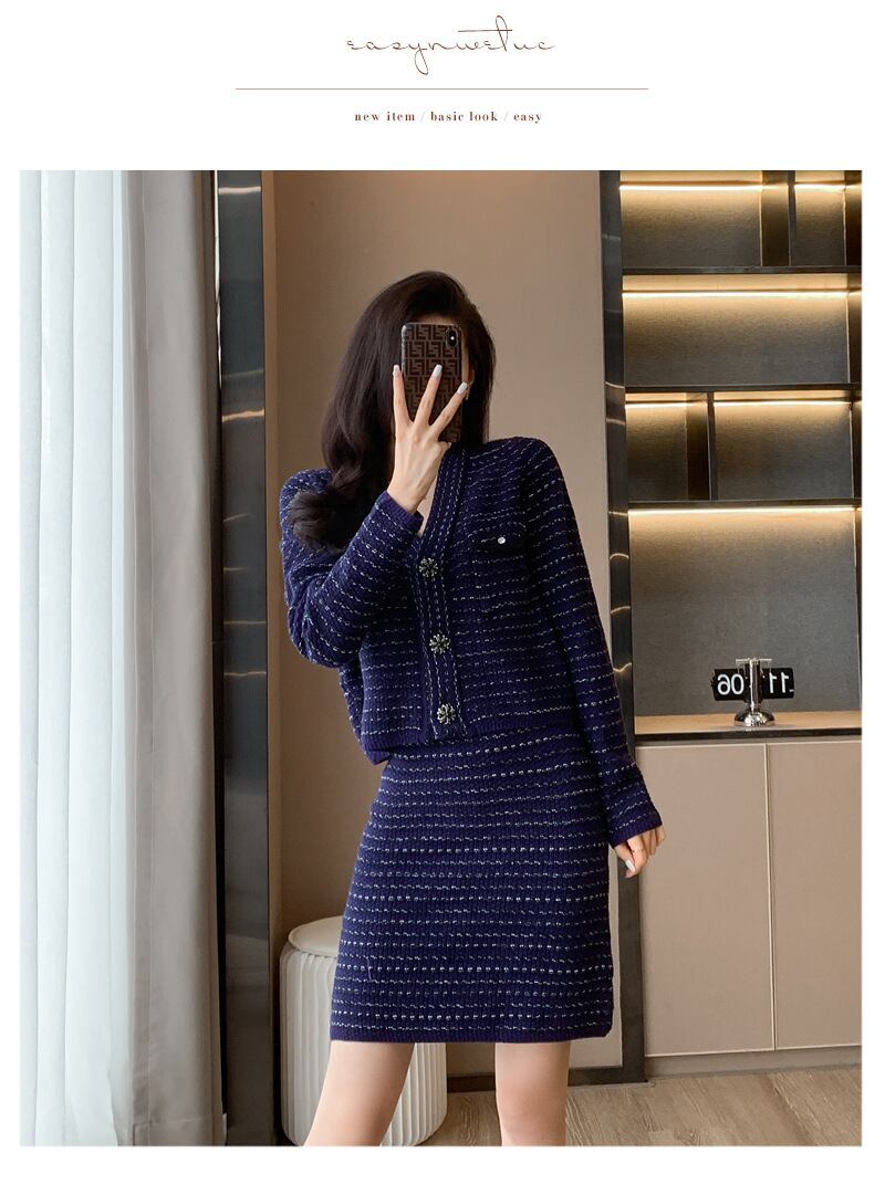 【set】ニットカーデ×スカートセット M18912