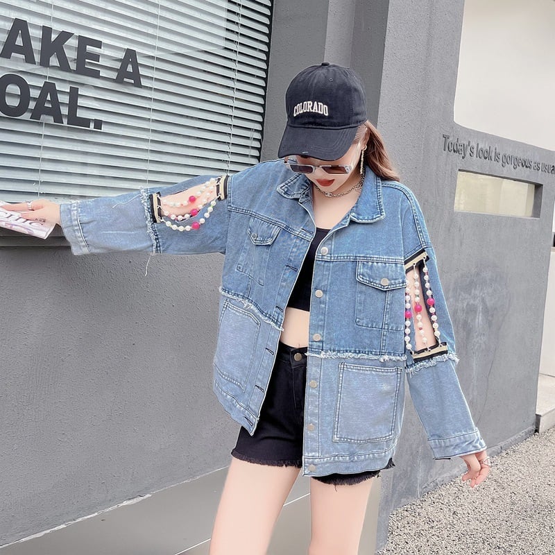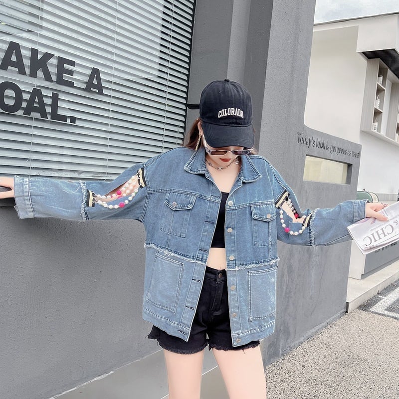 【outer】パールチェーンデニムジャケット N2190