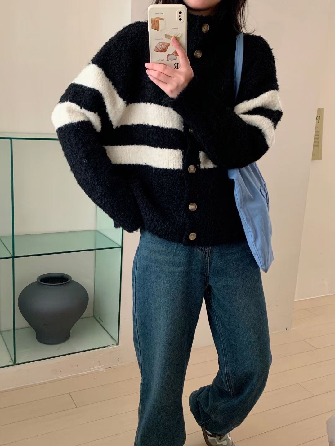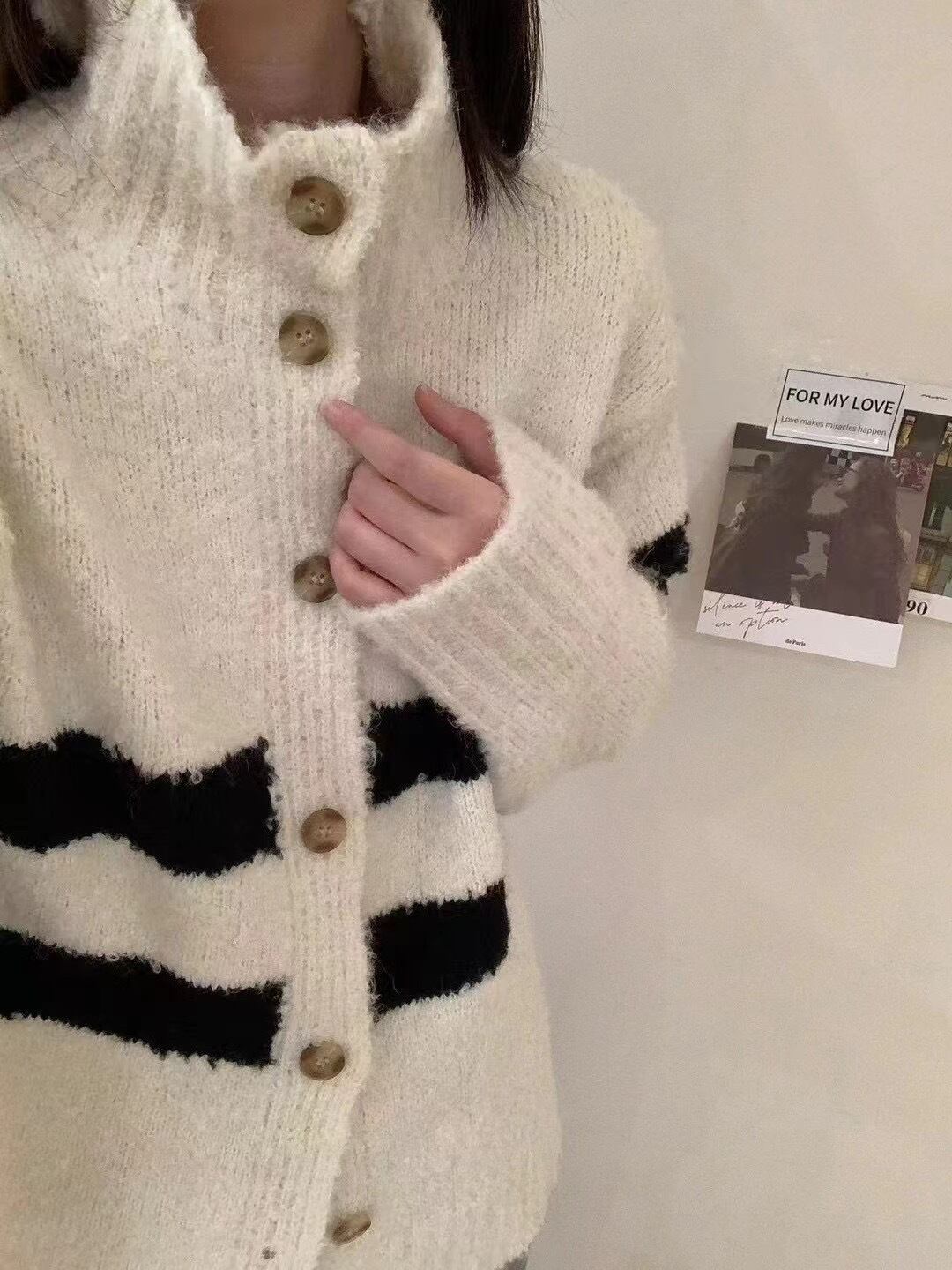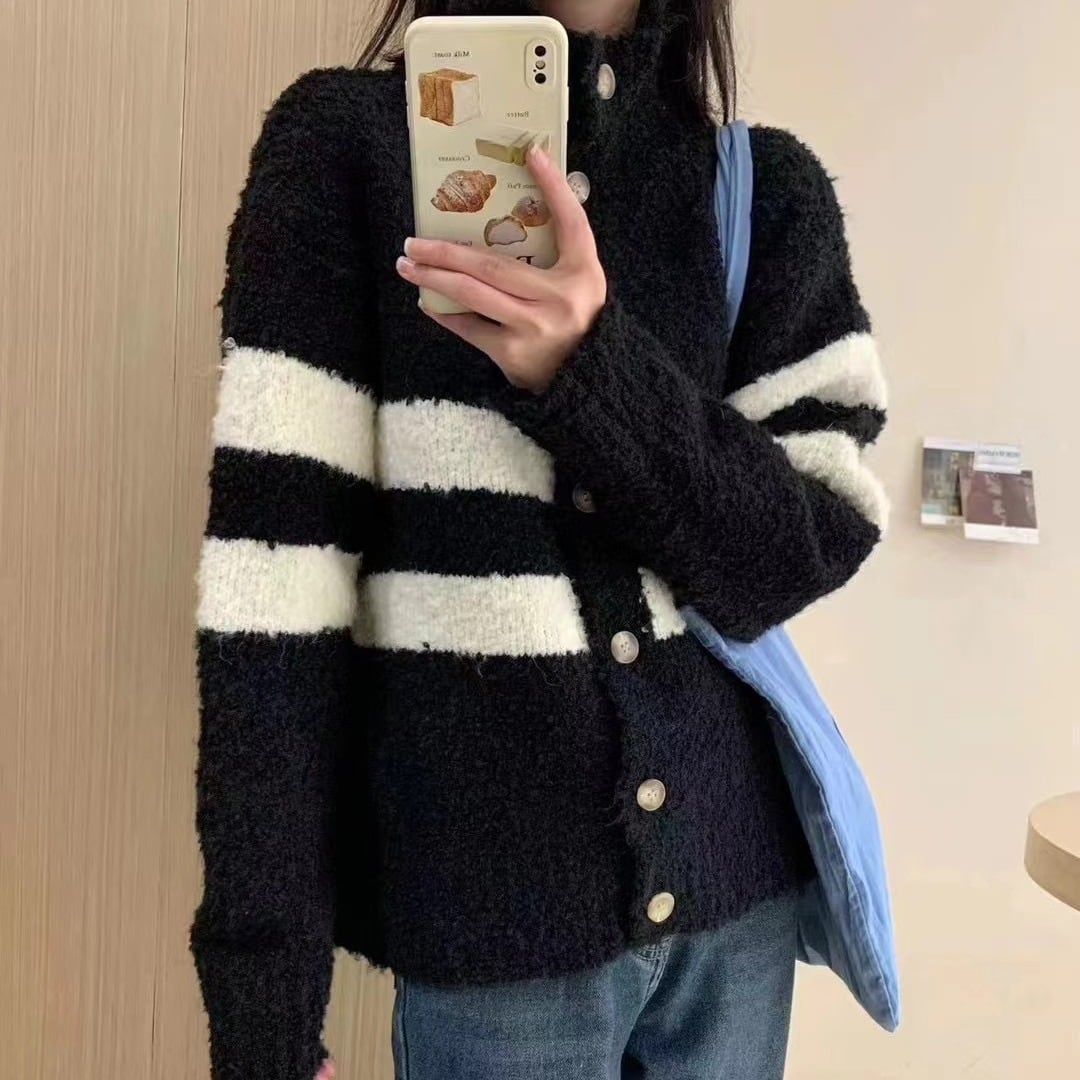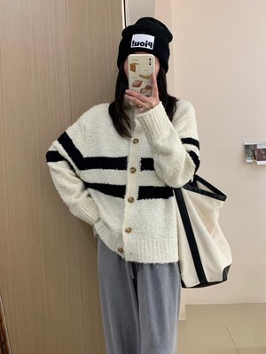【outer】ボーダー柄ニットカーデ M18956