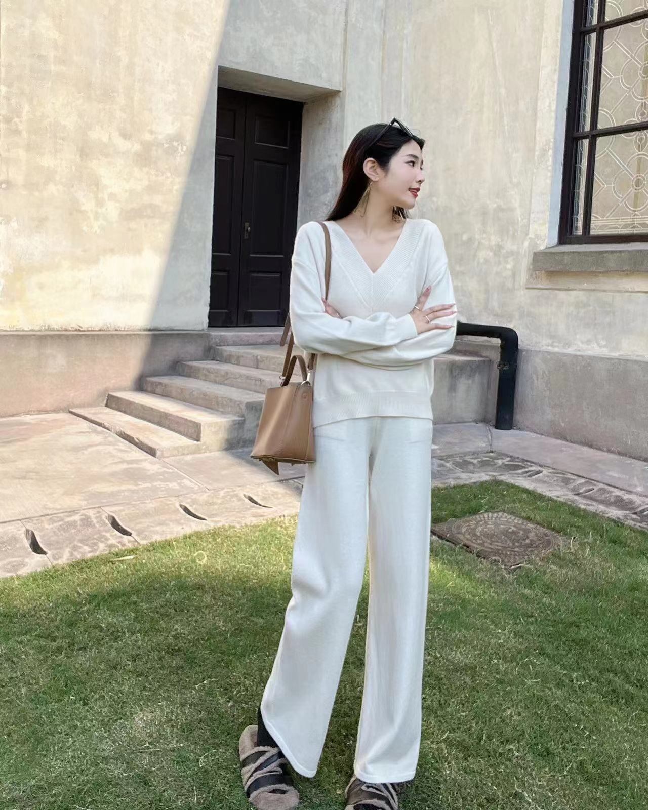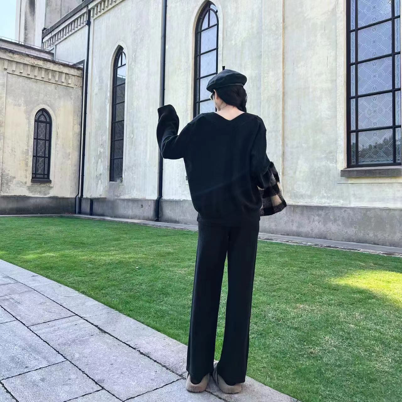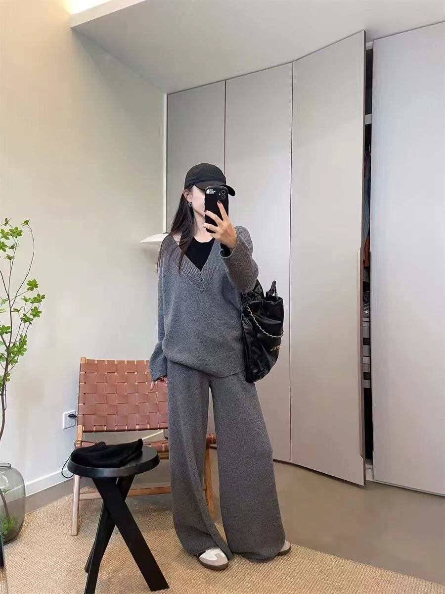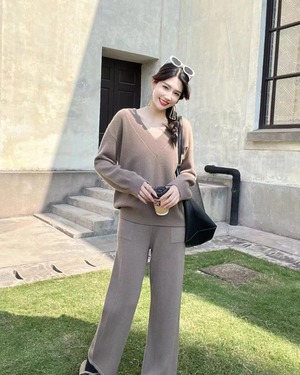 【set】ニットセーター×ワイドパンツセット M19140