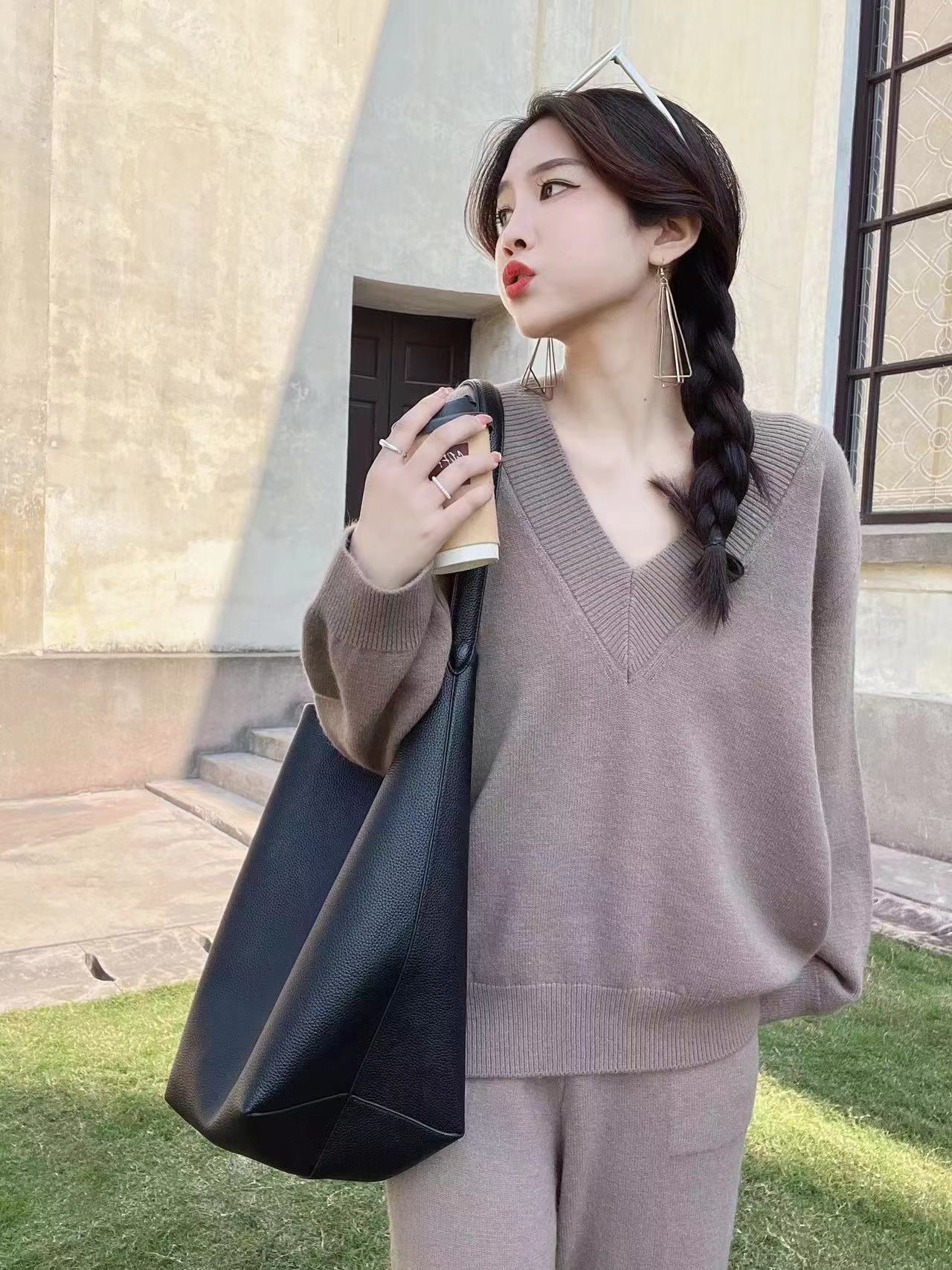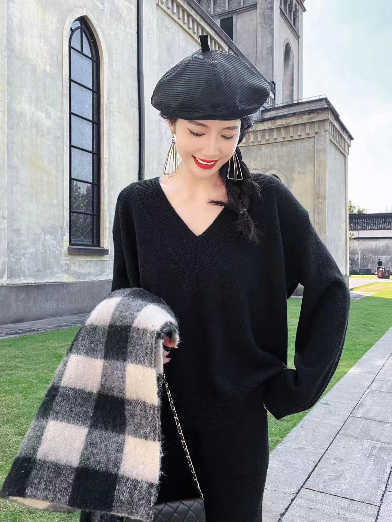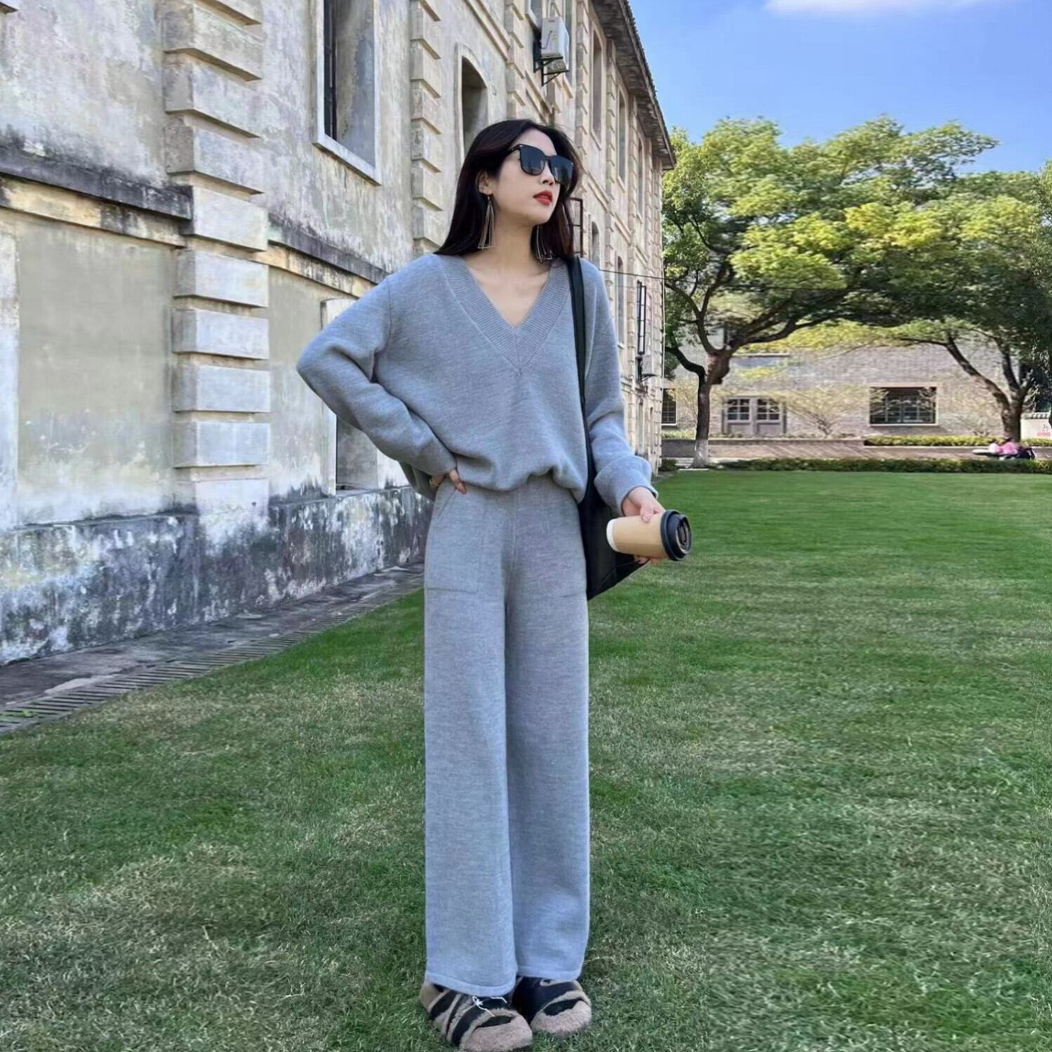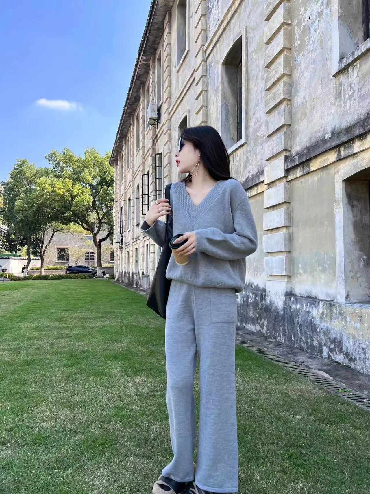 【set】ニットセーター×ワイドパンツセット M19140