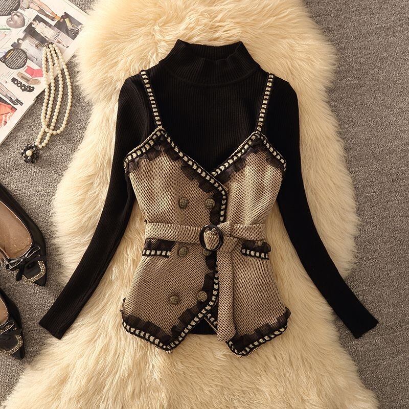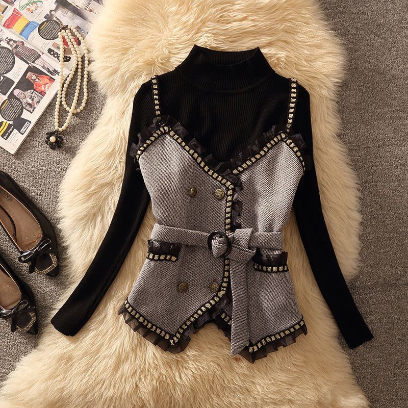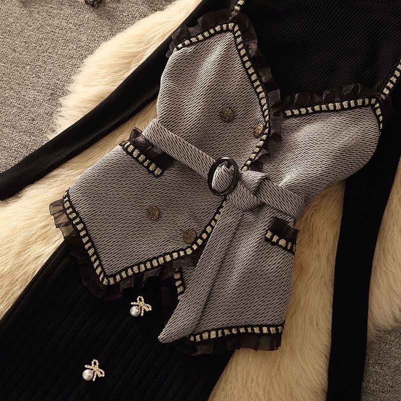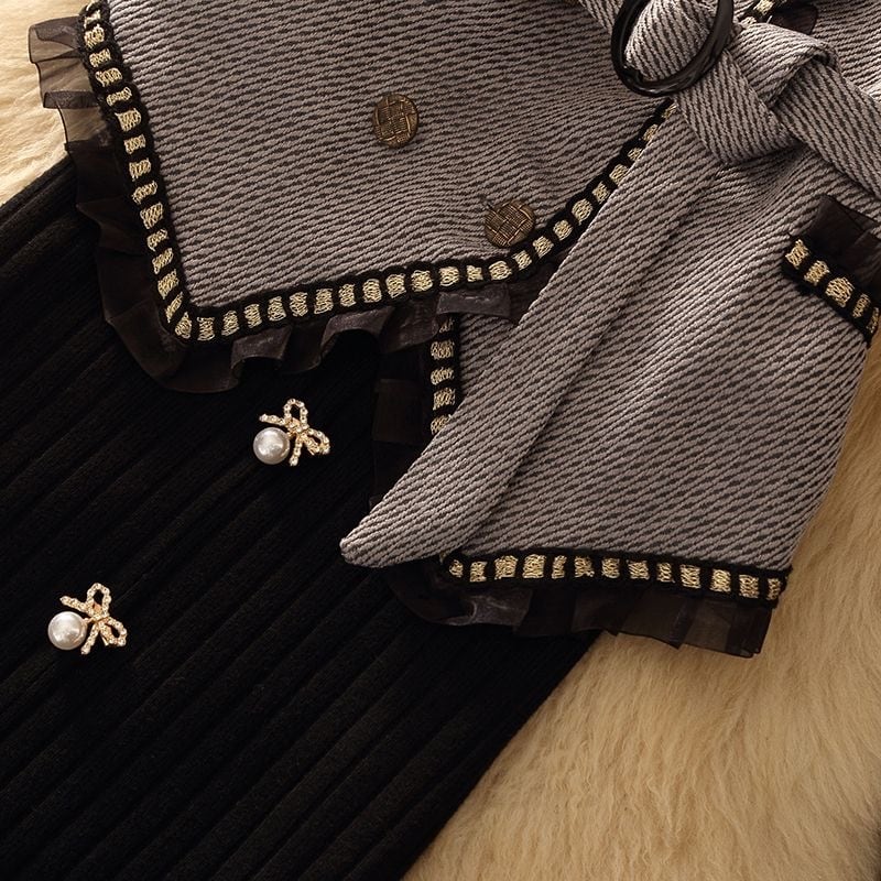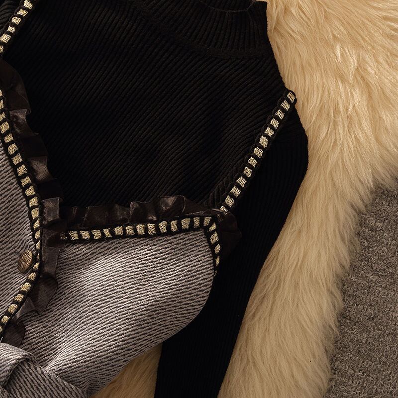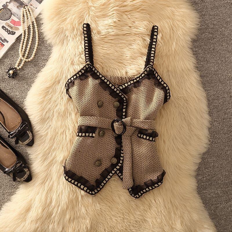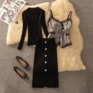 【set】ギャザーフリルキャミソール×セーター×スカート3点セット N2253
